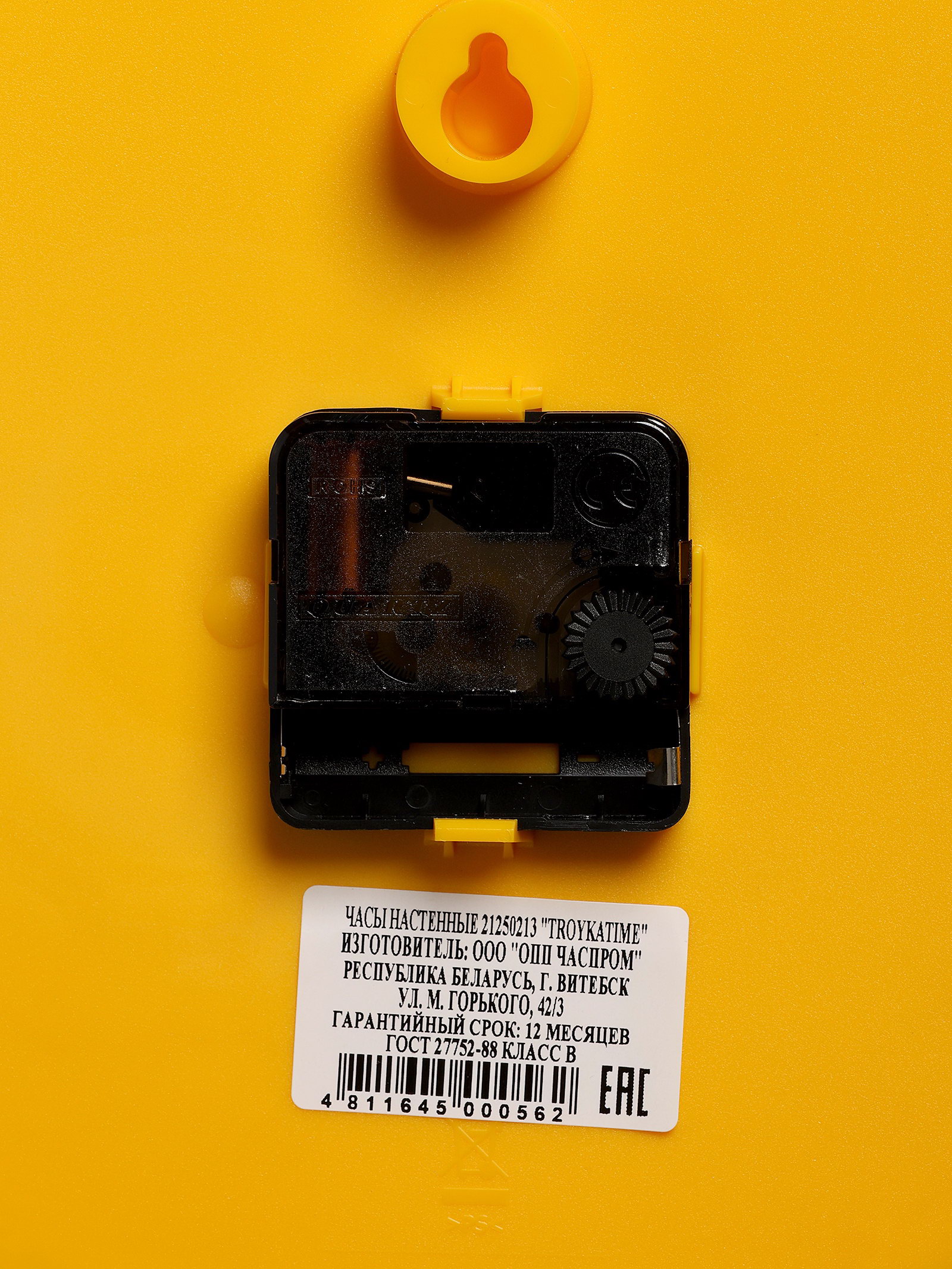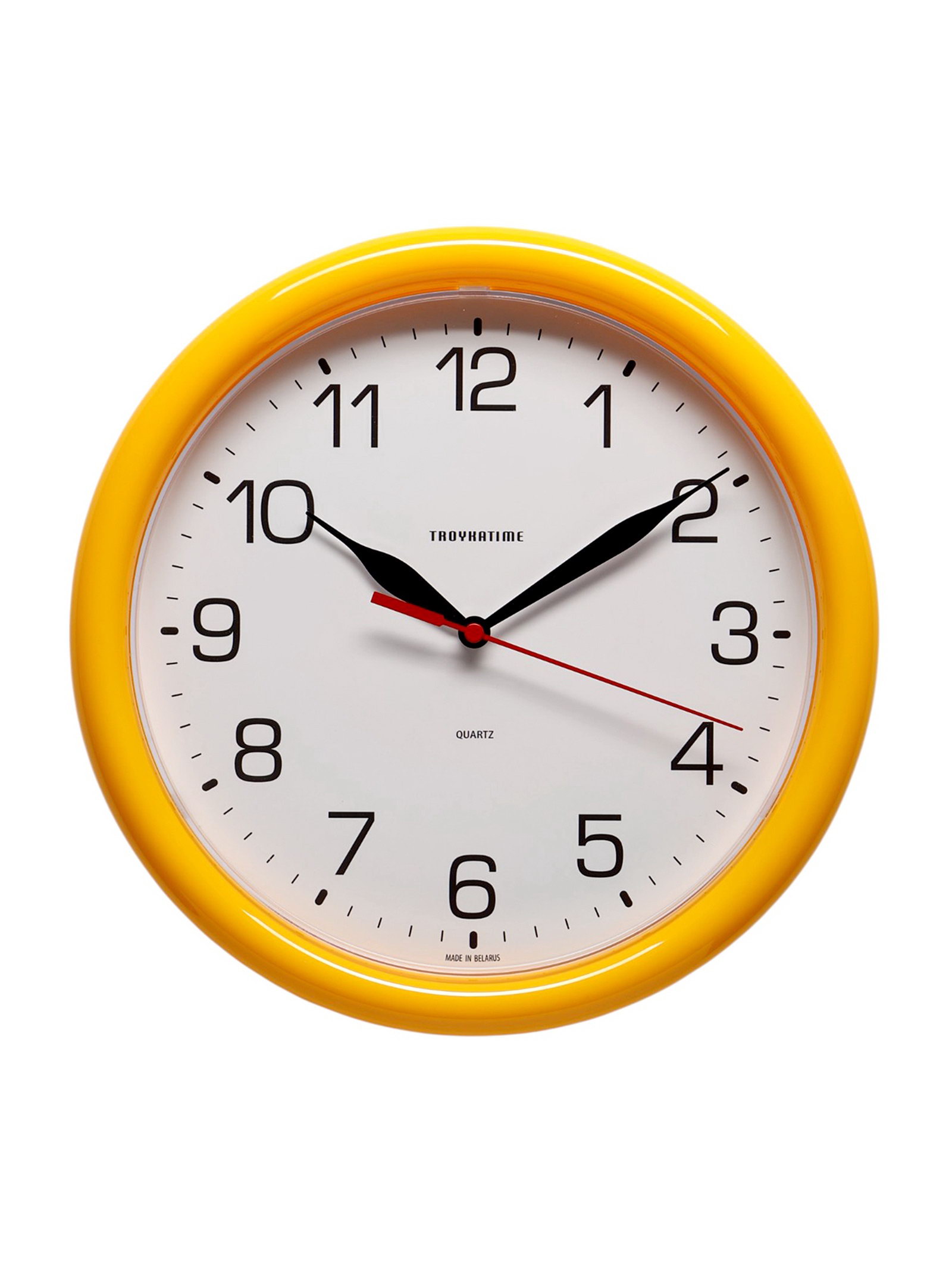 Часы настенные, серия: Классика, d=24 см, плавный ход, жёлтый обод, TROYKATIME, Беларусь