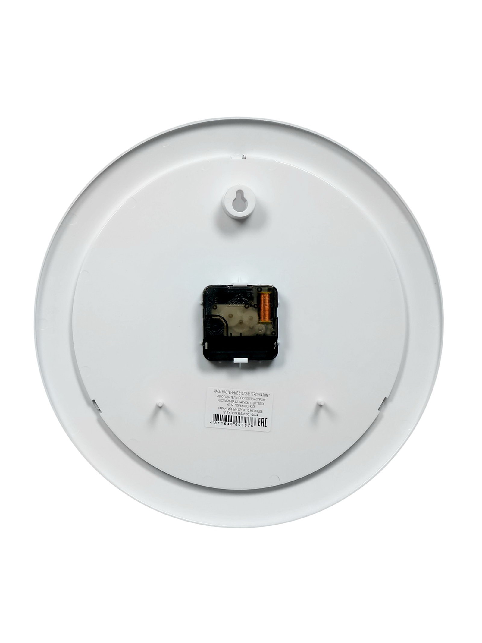 Размер упаковки: 31 x 5 x 31 см. Тип индикации: Арабские цифры Тематика: Классика Форма: Круглая Ход стрелок: Плавный Ход стрелок: Плавный tnved: 9105210000 Цвет: Белый Высота, см: 30 Ширина, см: 30 Типоразмер батареек: AA (LR6) Тип механизма: Кварцевый Цвет корпуса: Серебристый Цвет циферблата: Белый | ||