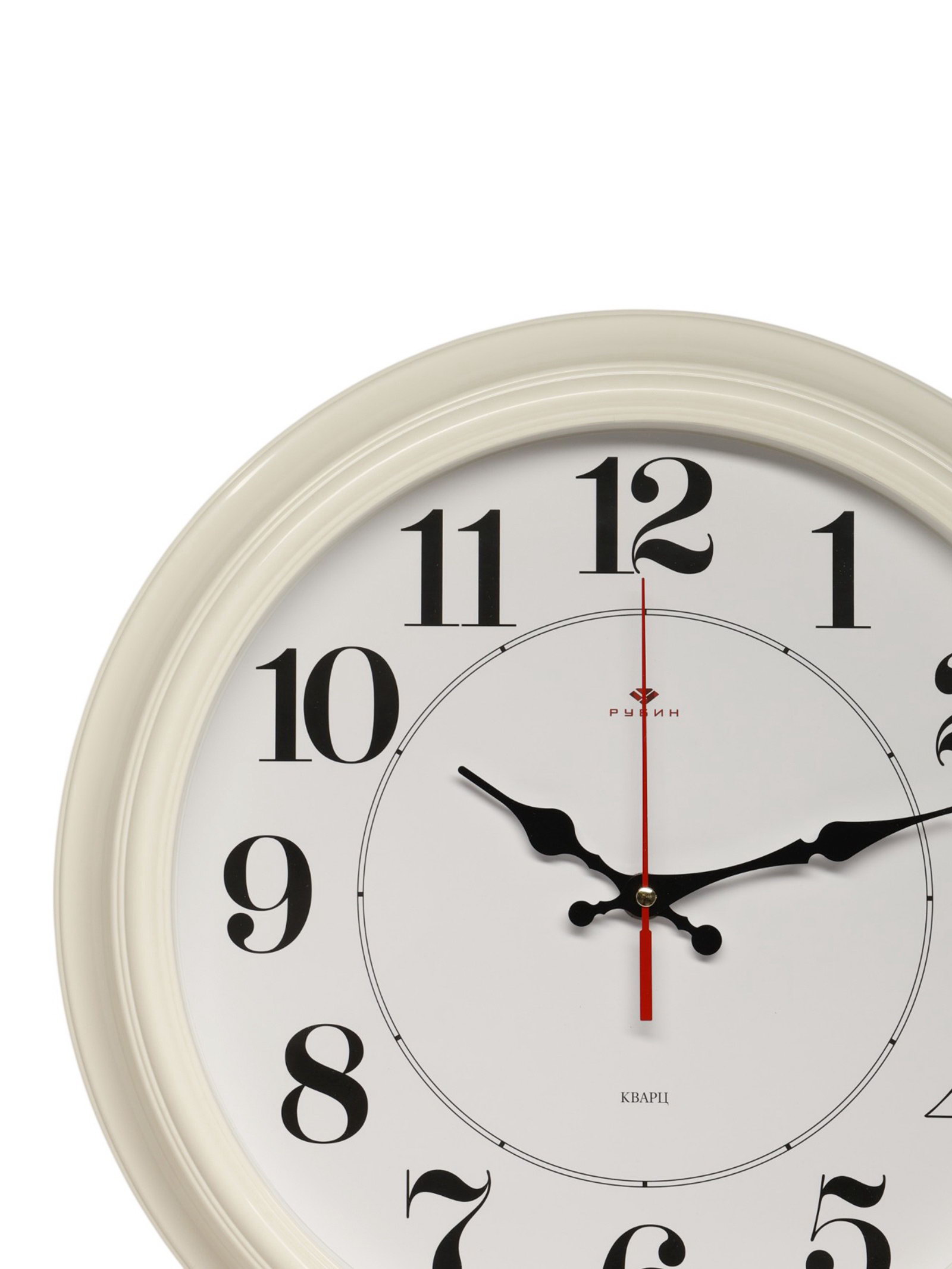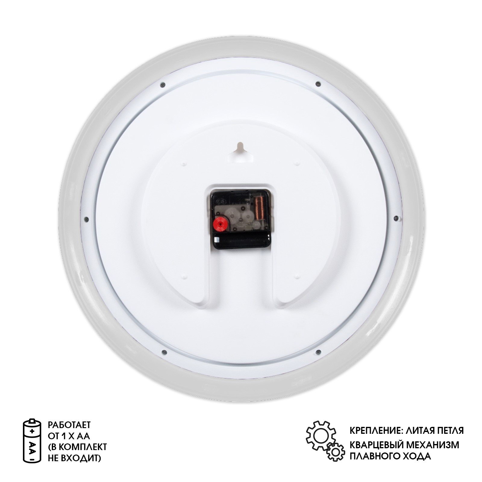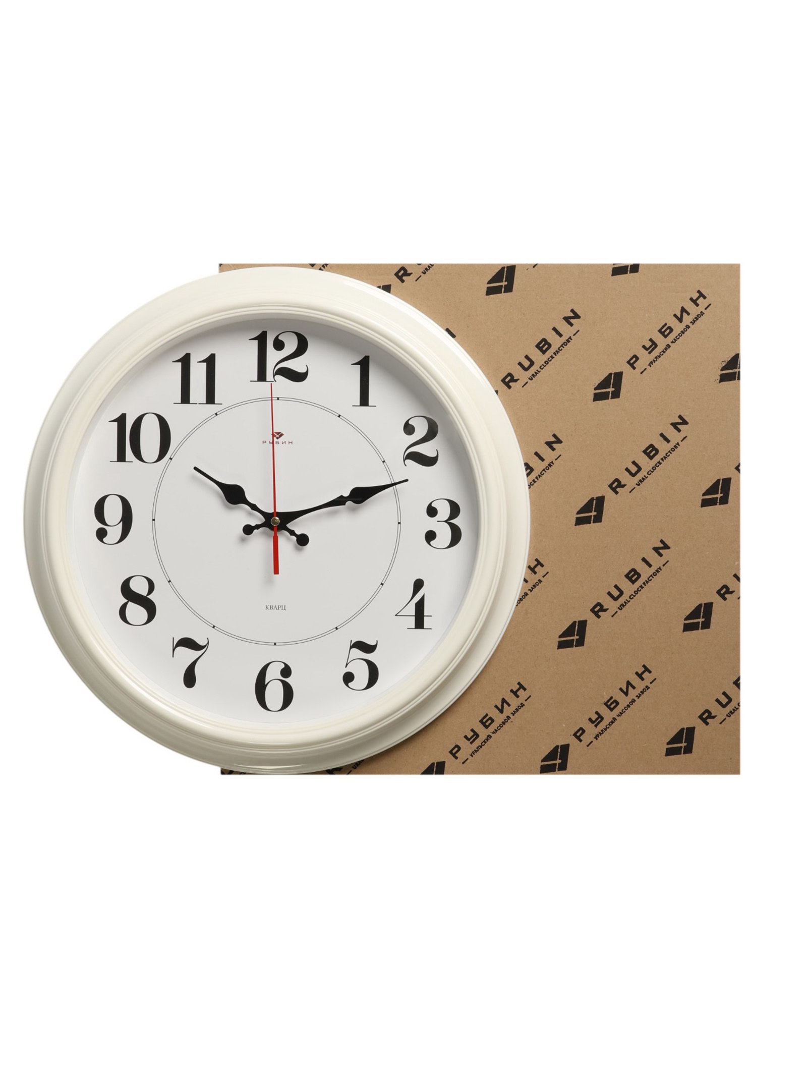 Часы настенные, интерьерные бесшумные, d=35 см, корпус белый, 35x4.5x35 см., Рубин, Россия