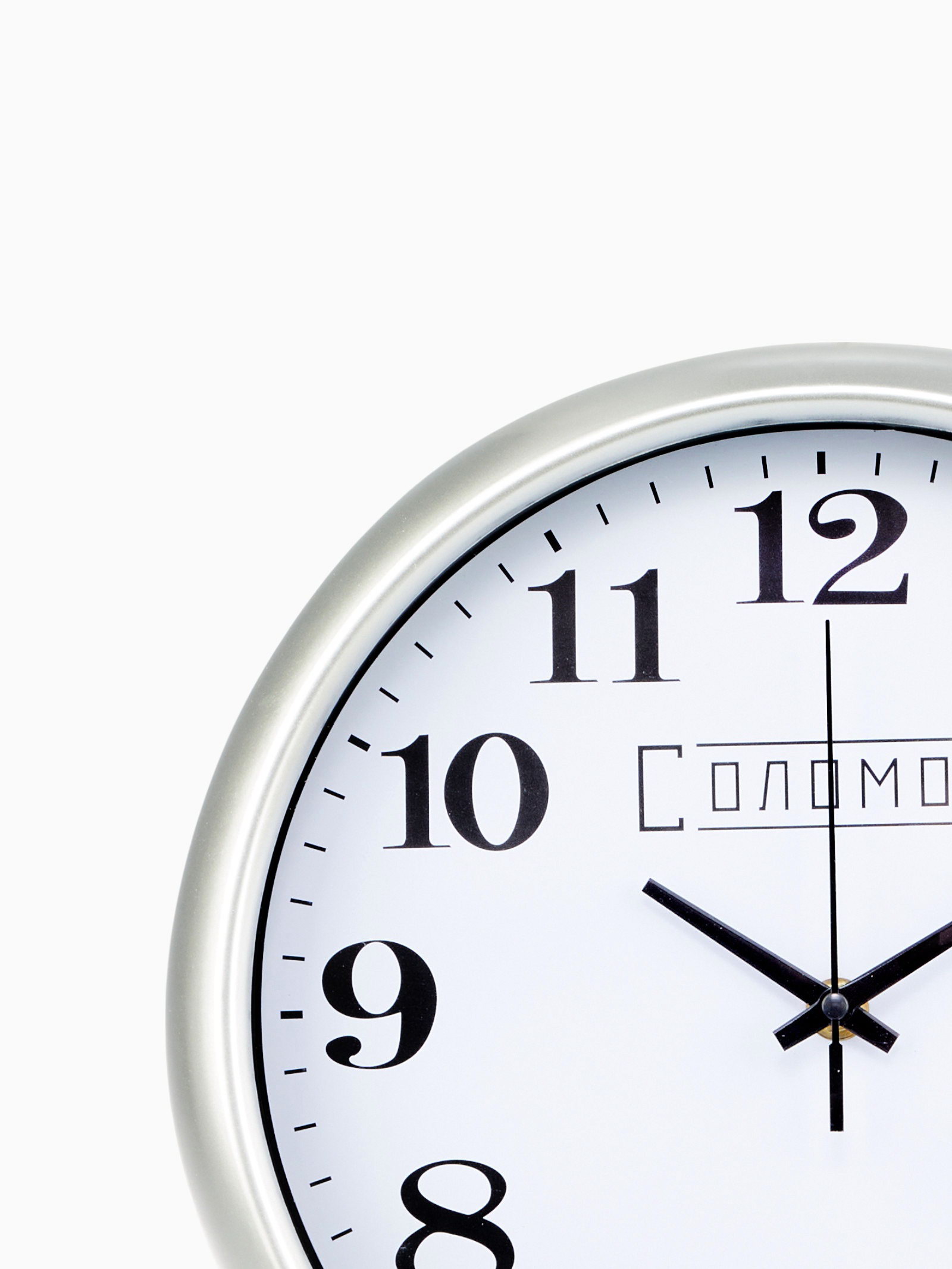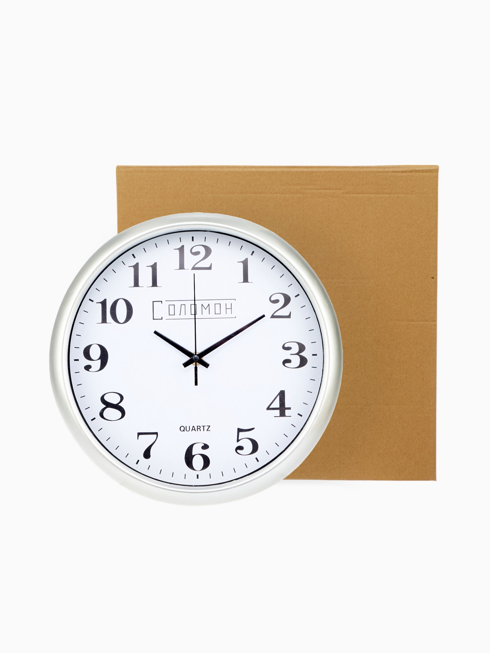 Размер упаковки: 4.5 x 30 x 30 см. Цвет: Серебристый Форма: Круглая Размер, см: 30 x 30 Тематика: Классика Тип индикации: Арабские цифры Высота, см: 30 Ширина, см: 30 Работает от сети: Нет Бесшумные: Нет Типоразмер батареек: AA (LR6) Форма корпуса: Круглая Форма корпуса: Круглая tnved: 9105210000 Ход стрелок: Дискретный Цвет корпуса: Серый Тип механизма: Кварцевый Цвет циферблата: Белый Особенности