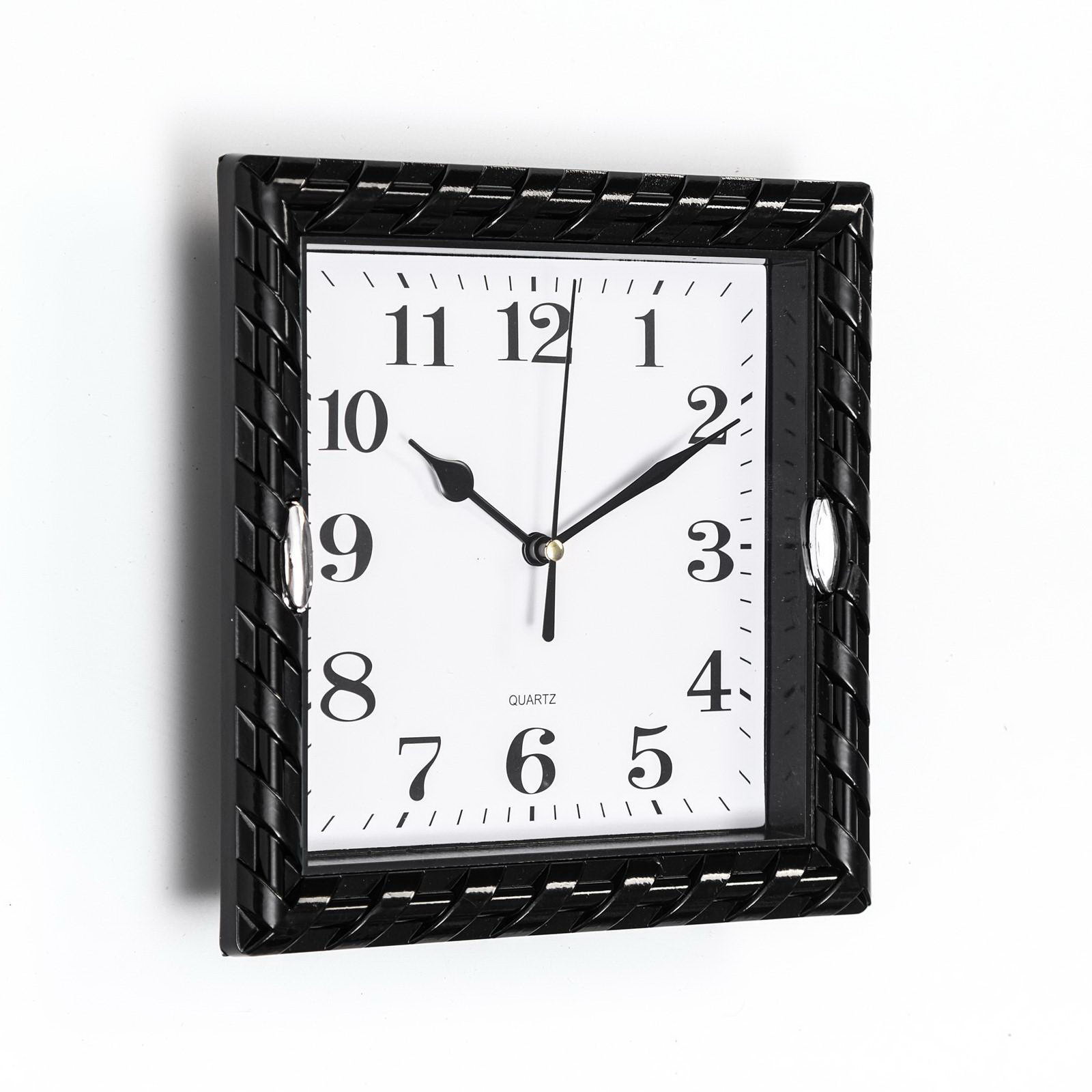 Размер упаковки: 3 x 21 x 21 см. Цвет: Чёрный Форма: Квадратная Тематика: Классика Тип индикации: Арабские цифры Бесшумные: Нет tnved: 9105210000 tnved: 9105210000 Ход стрелок: Дискретный Ширина, см: 20.5 Высота, см: 20.5 Типоразмер батареек: AA (LR6) Размер циферблата, см: 16 x 16 Тип механизма: Кварцевый Цвет циферблата: Белый Цвет корпуса: Чёрный Особенности