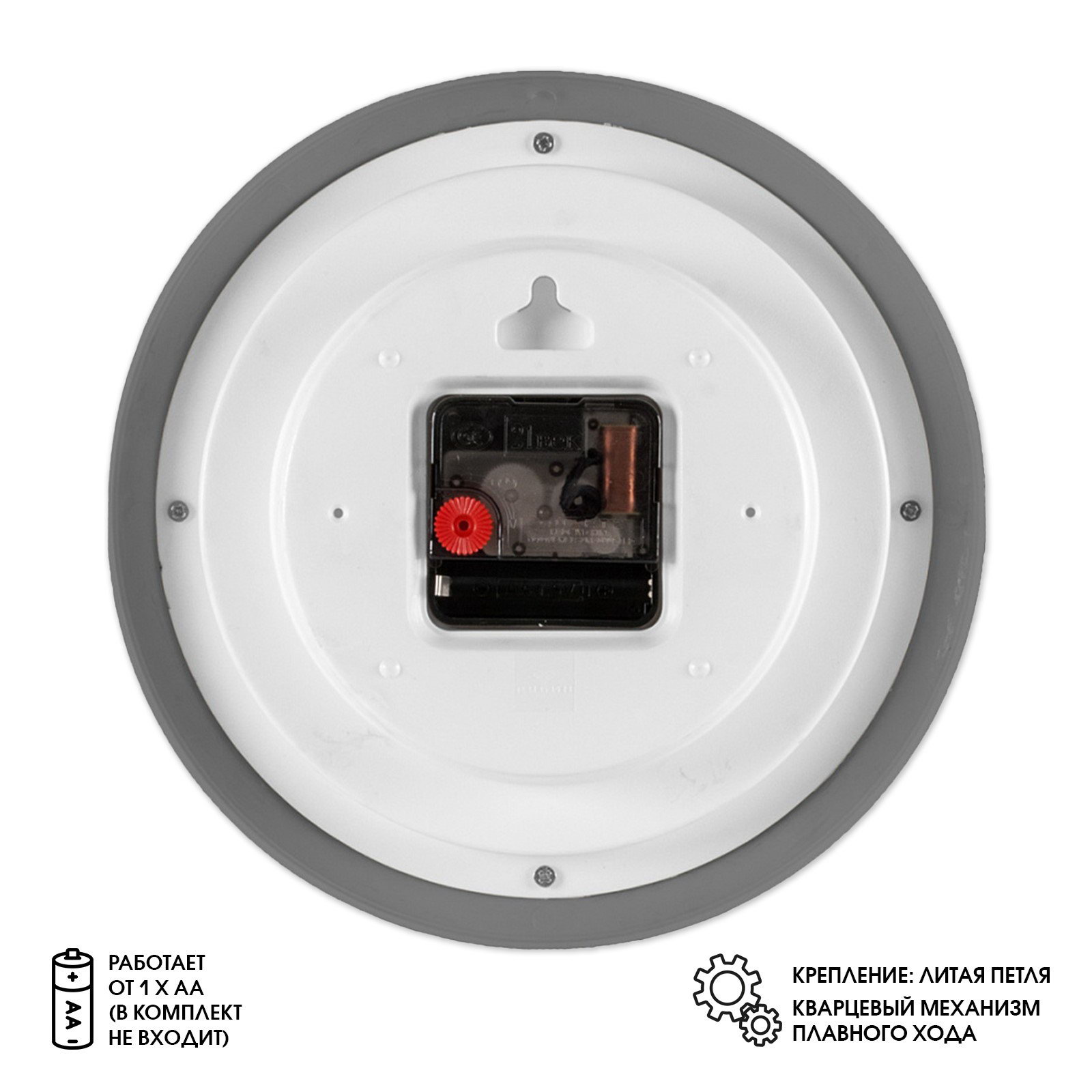 Часы настенные, интерьерные d-21 см, серый корпус, 21x4x21 см., Рубин, Россия