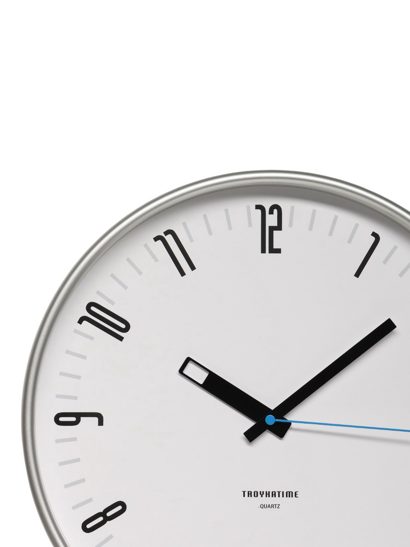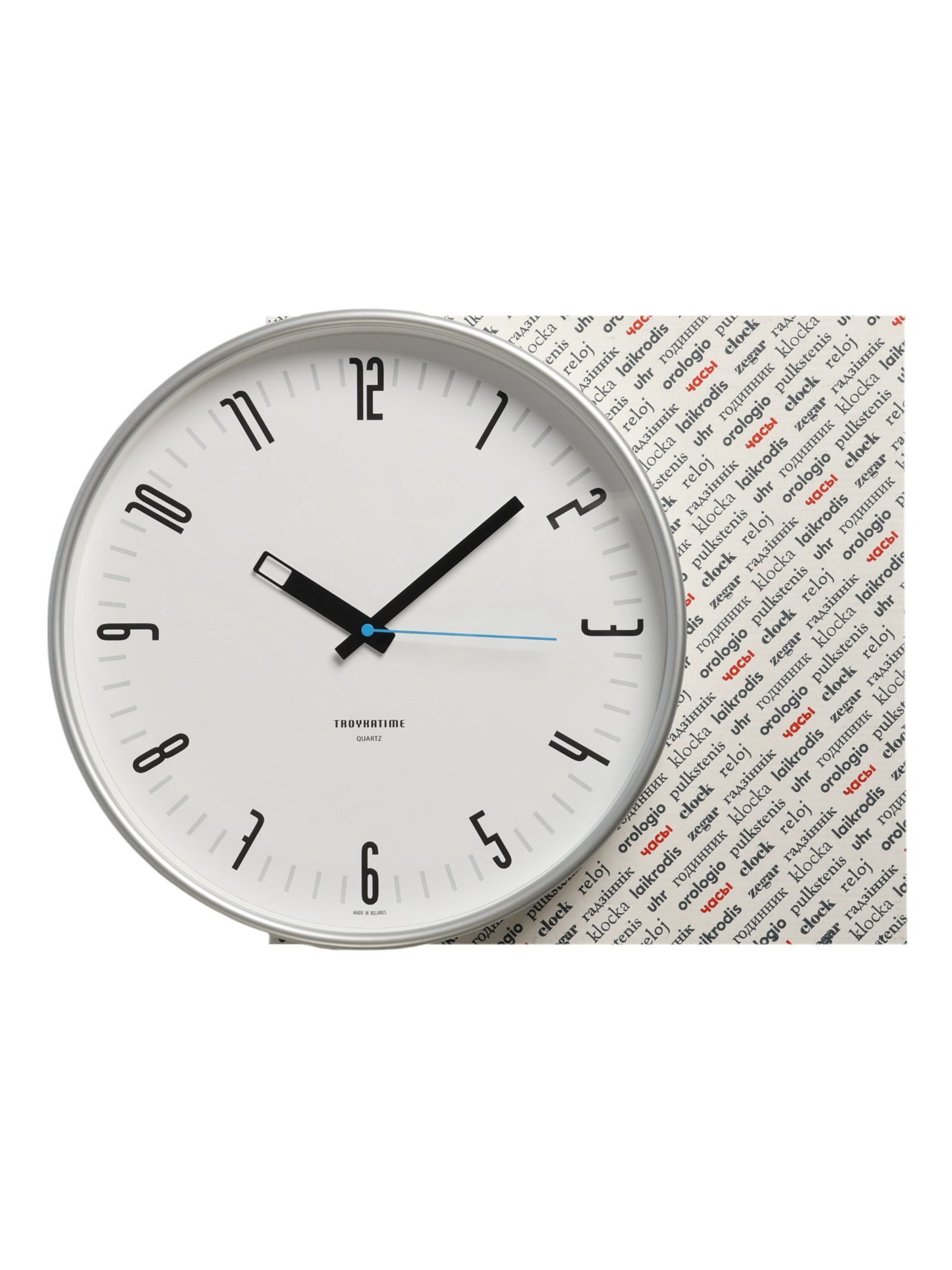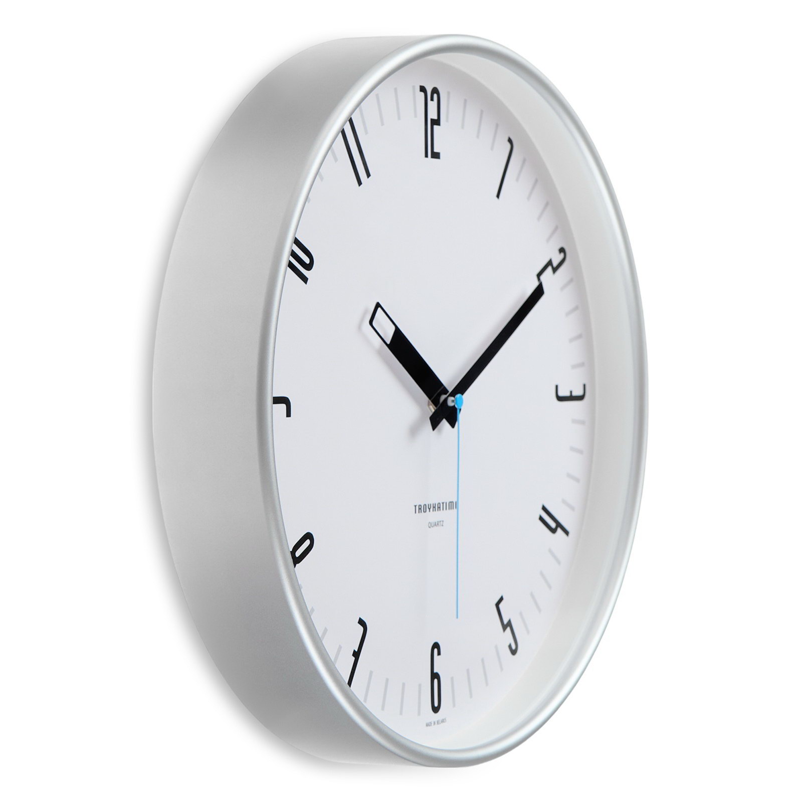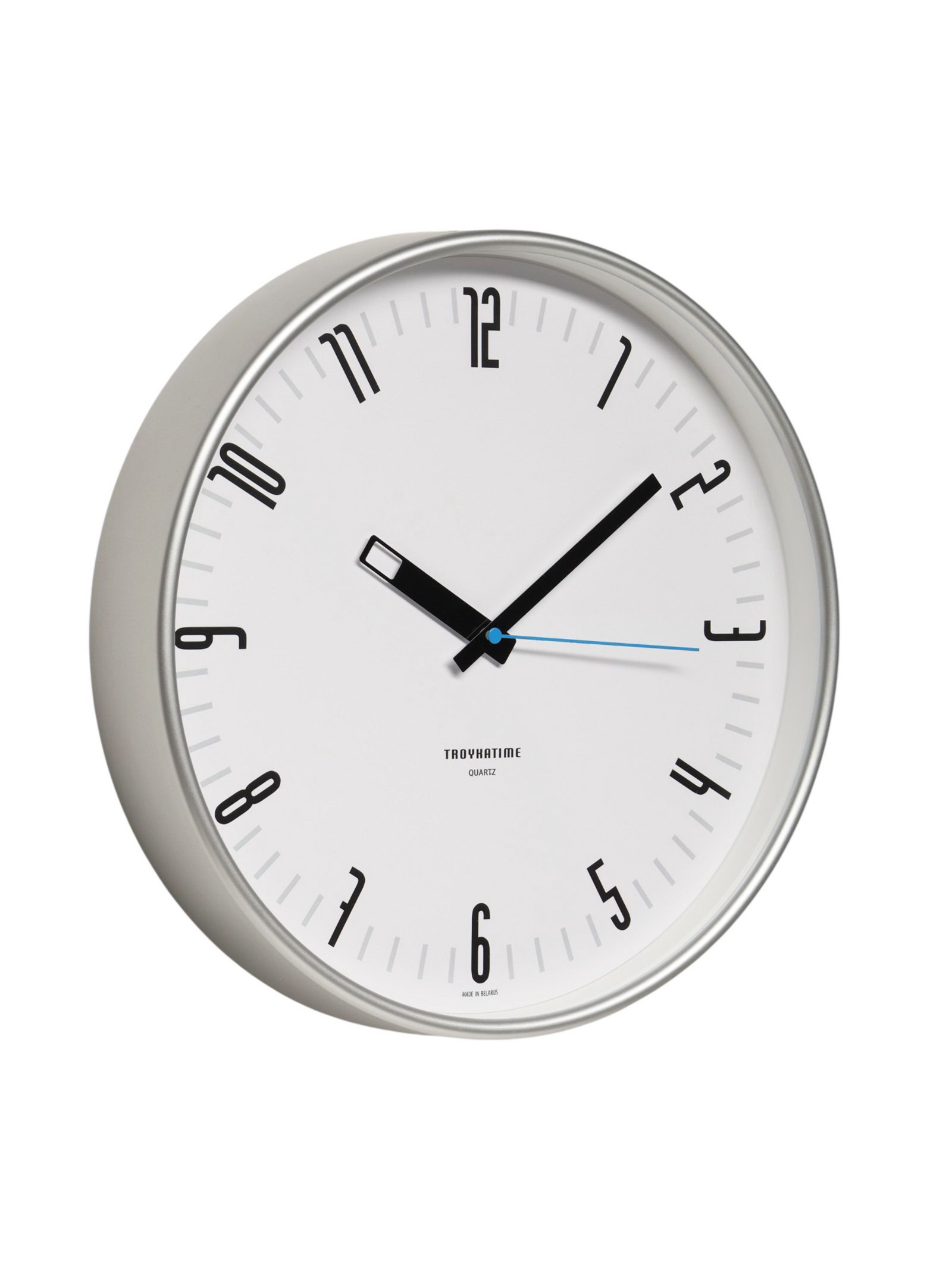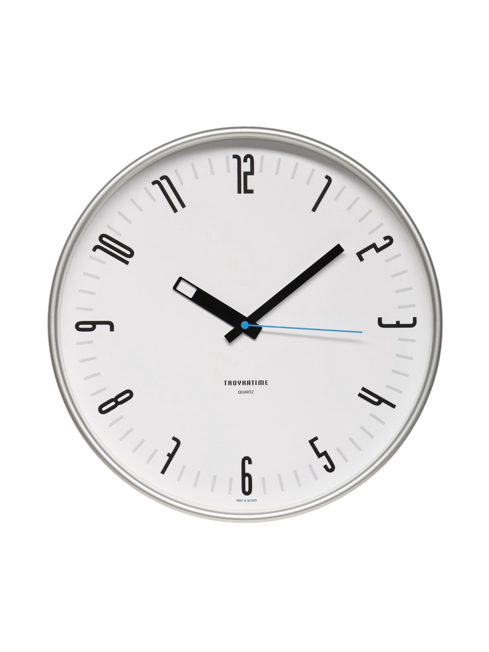 Часы настенные, интерьерные d=30 см, бесшумные, серебристый обод, 30x4.3x30 см., TROYKATIME, Беларусь