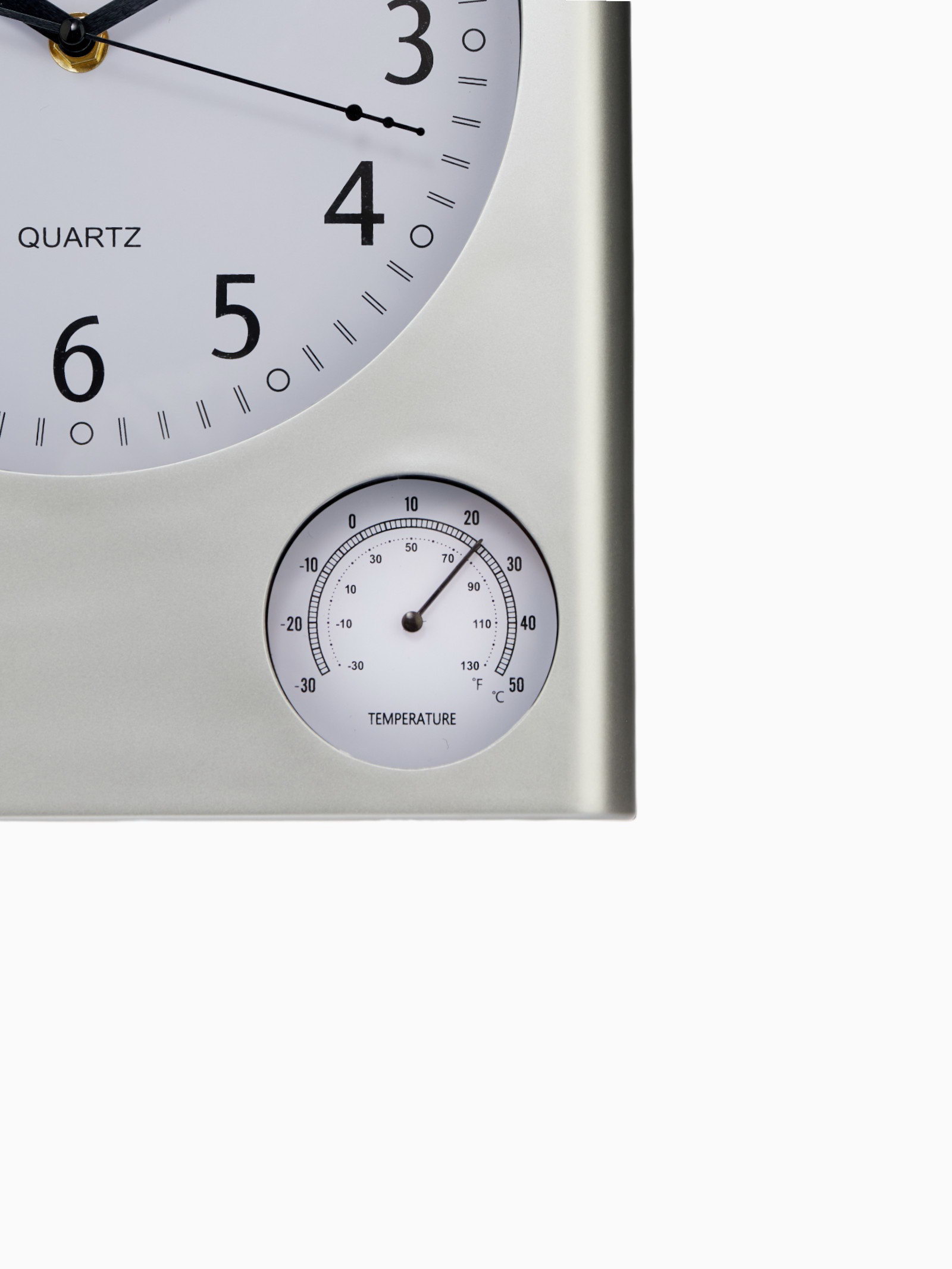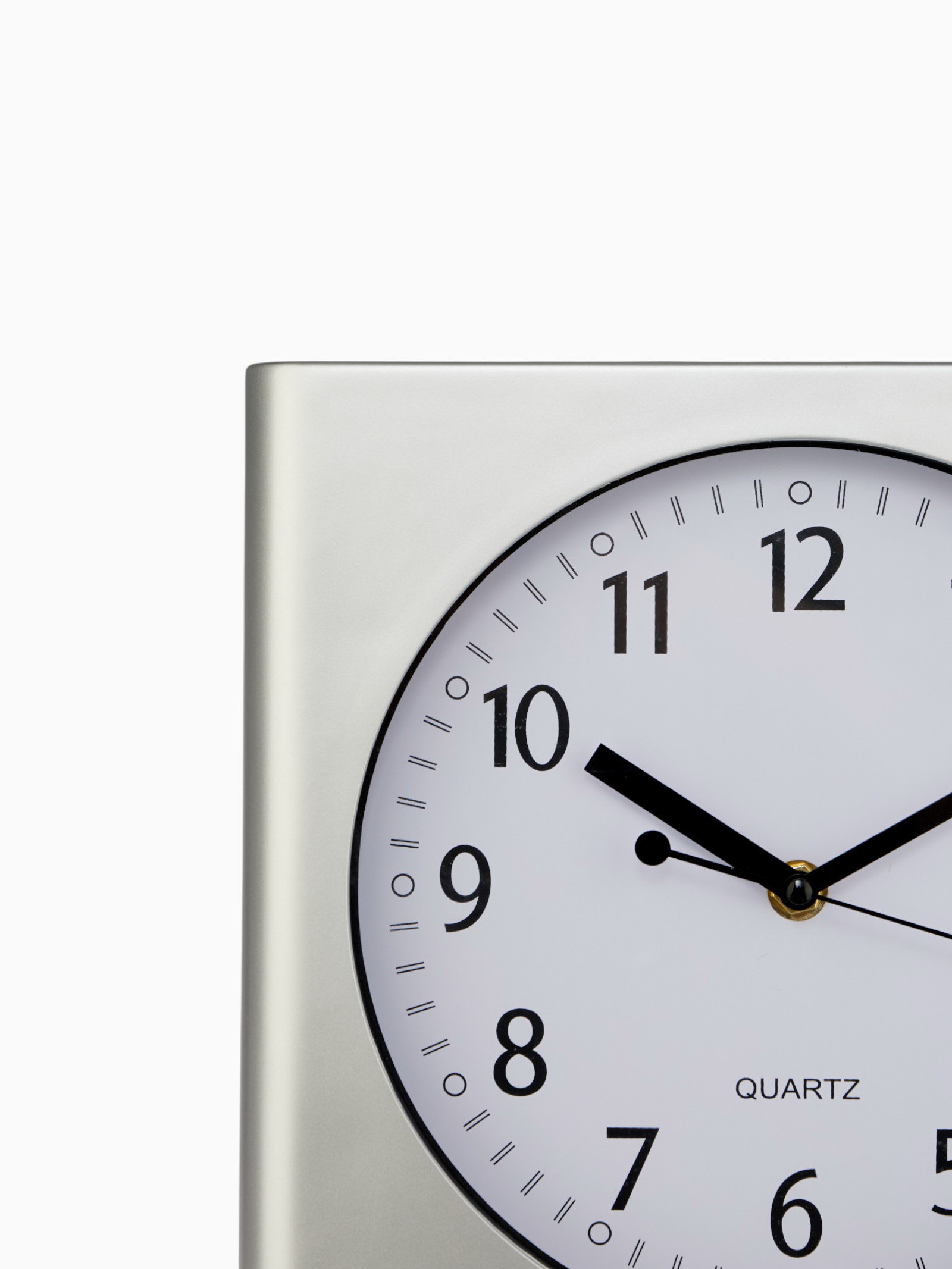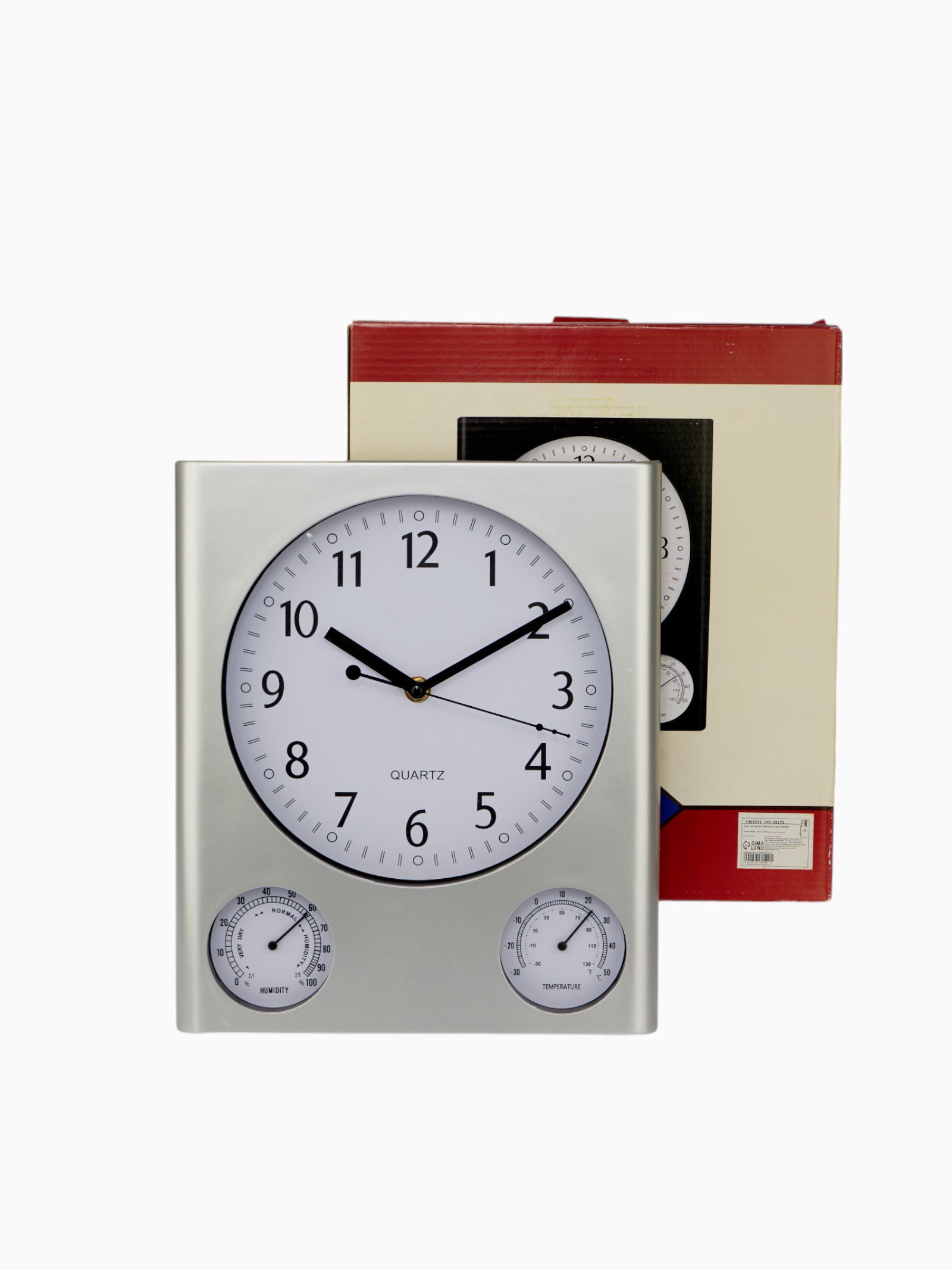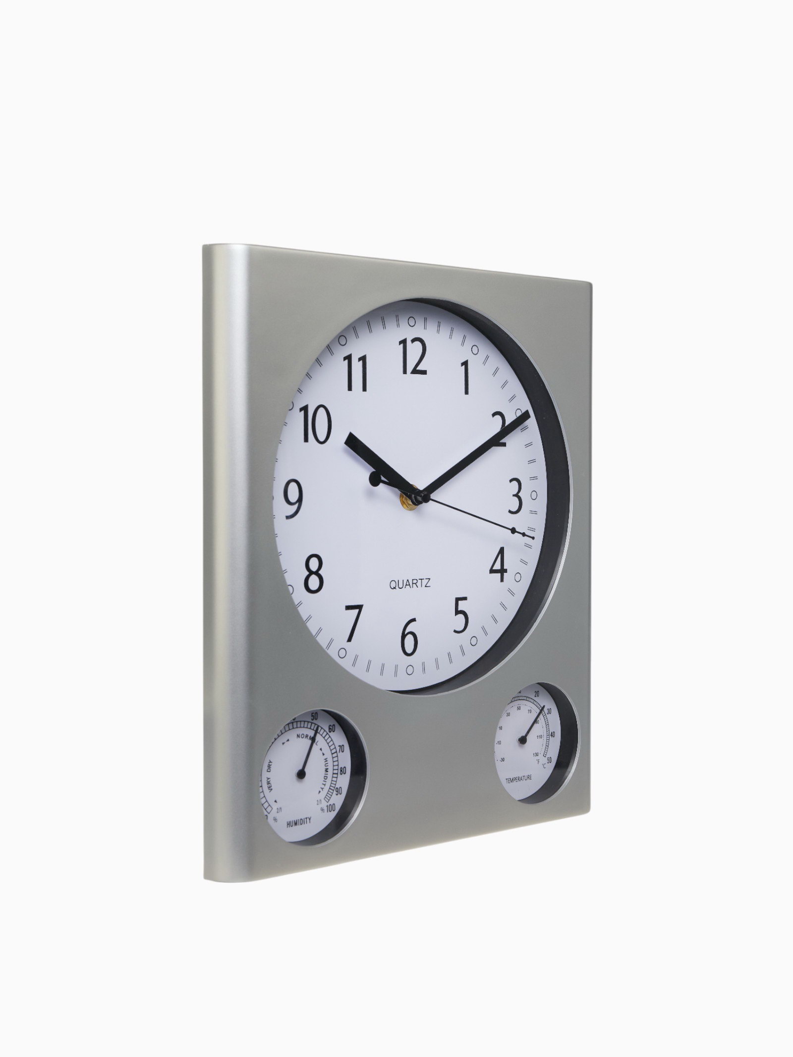 Размер упаковки: 25.5 x 4 x 30 см. Бесшумные: Да Тематика: Классика Тип индикации: Арабские цифры Работает от сети: Нет Форма корпуса: Прямоугольная Типоразмер батареек: AA (LR6) Типоразмер батареек: AA (LR6) tnved: 9105210000 Форма: Прямоугольная Цвет: Серебристый Высота, см: 29.5 Ширина, см: 25 Тип механизма: Кварцевый Цвет корпуса: Серый Цвет циферблата: Белый | ||