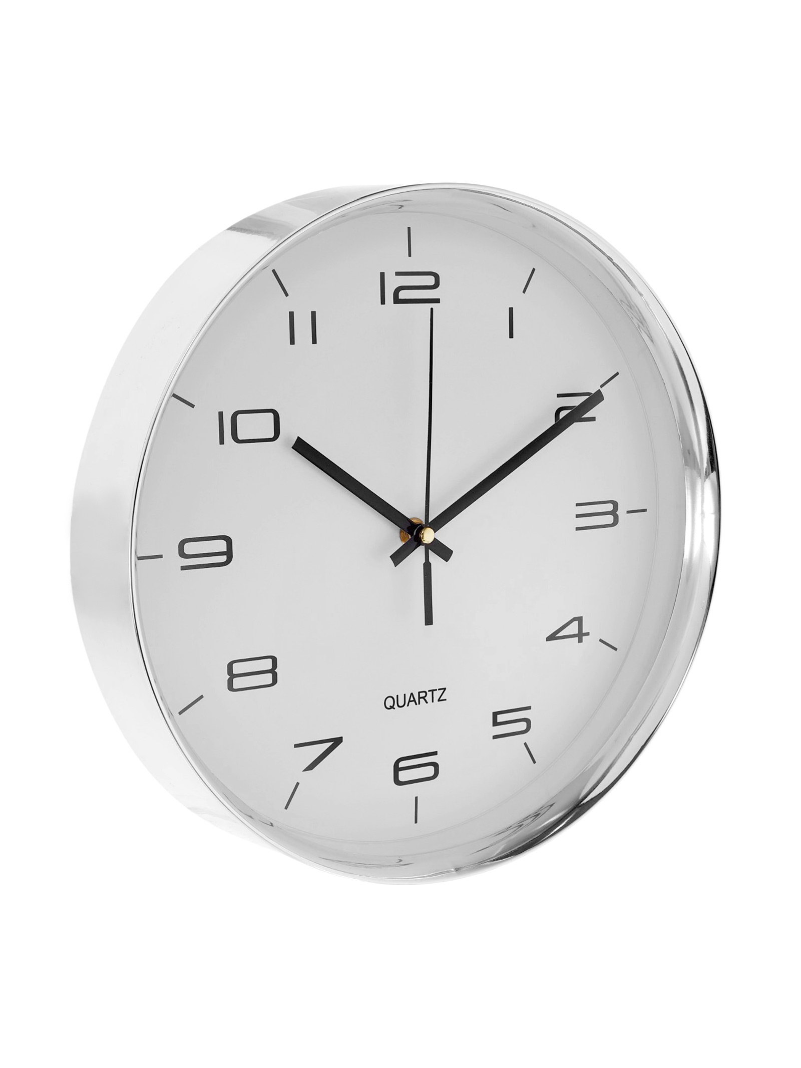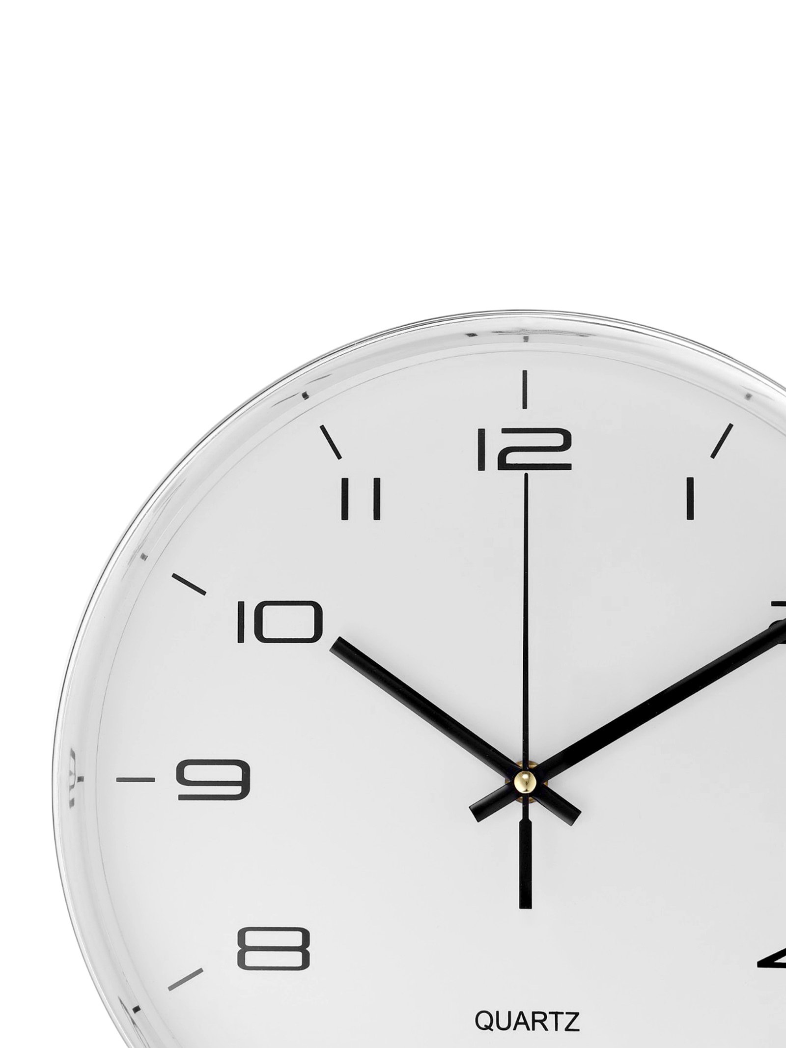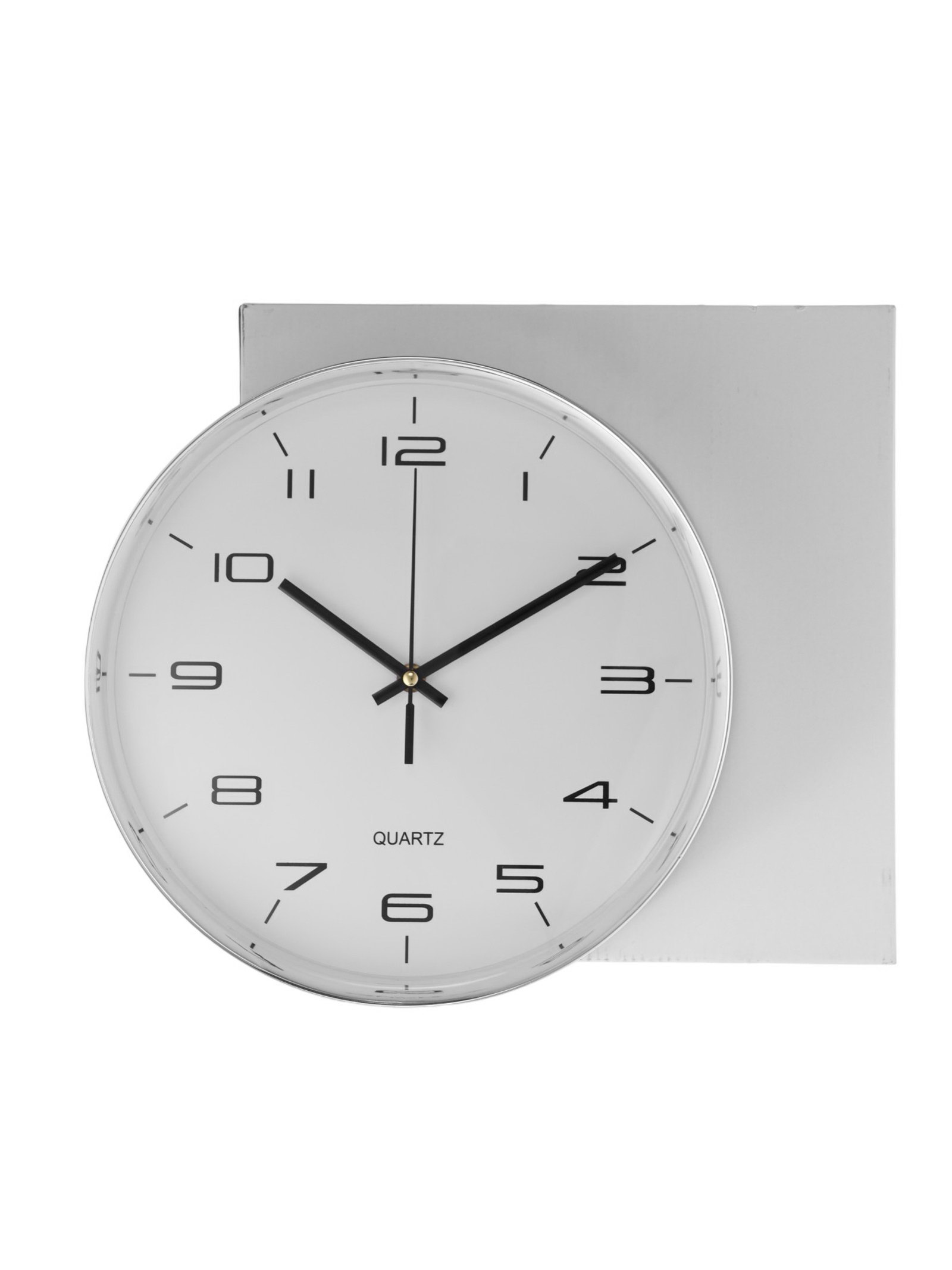 Размер упаковки: 31 x 6 x 31 см. Бесшумные: Да Работает от сети: Нет Типоразмер батареек: AA (LR6) Форма корпуса: Круглая tnved: 9105210000 Форма: Круглая Высота, см: 30 Ширина, см: 30 Цвет: Серебристый Ход стрелок: Плавный Тип индикации: Арабские цифры Тематика: Классика Диаметр циферблата, см: 27.5 Тип механизма: Кварцевый Цвет циферблата: Белый Цвет корпуса: Серебристый Особенности