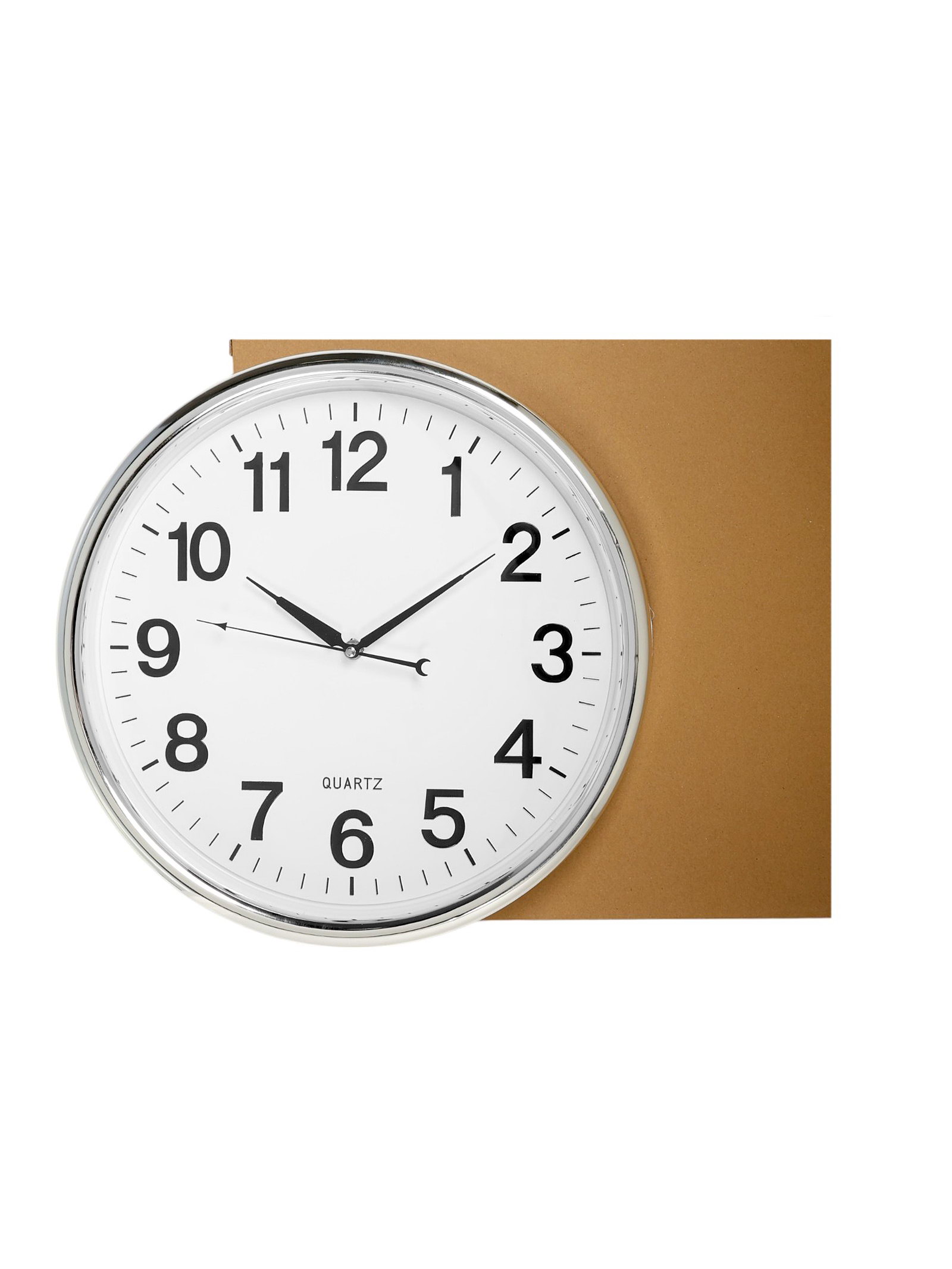 Размер упаковки: 41.5 x 5 x 41.5 см. Тип индикации: Арабские цифры Тематика: Классика Работает от сети: Нет Типоразмер батареек: AA (LR6) Форма корпуса: Круглая tnved: 9105210000 Цвет: Белый Форма: Круглая Высота, см: 41 Ширина, см: 41 Тип механизма: Кварцевый Цвет корпуса: Серебристый Цвет циферблата: Белый Особенности