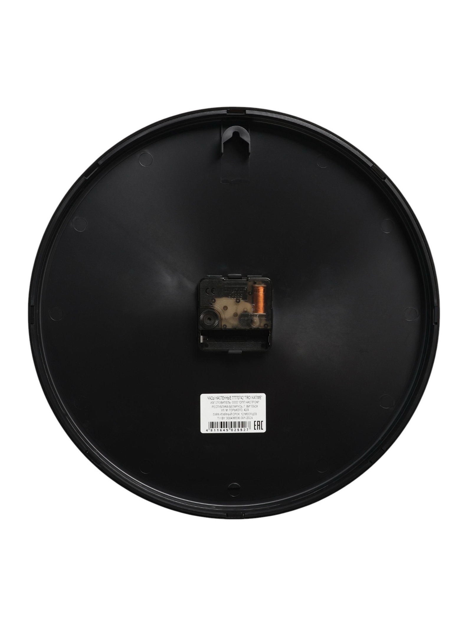 Размер упаковки: 31 x 5.5 x 31 см. Бесшумные: Да tnved: 9105210000 Температурное ограничение: Нет Форма: Круглая Цвет: Белый Ход стрелок: Плавный Тип индикации: Римские цифры Высота, см: 30.5 Ширина, см: 30.5 Типоразмер батареек: AA (LR6) Тип механизма: Кварцевый Цвет циферблата: Бежевый Цвет корпуса: Чёрный Особенности: