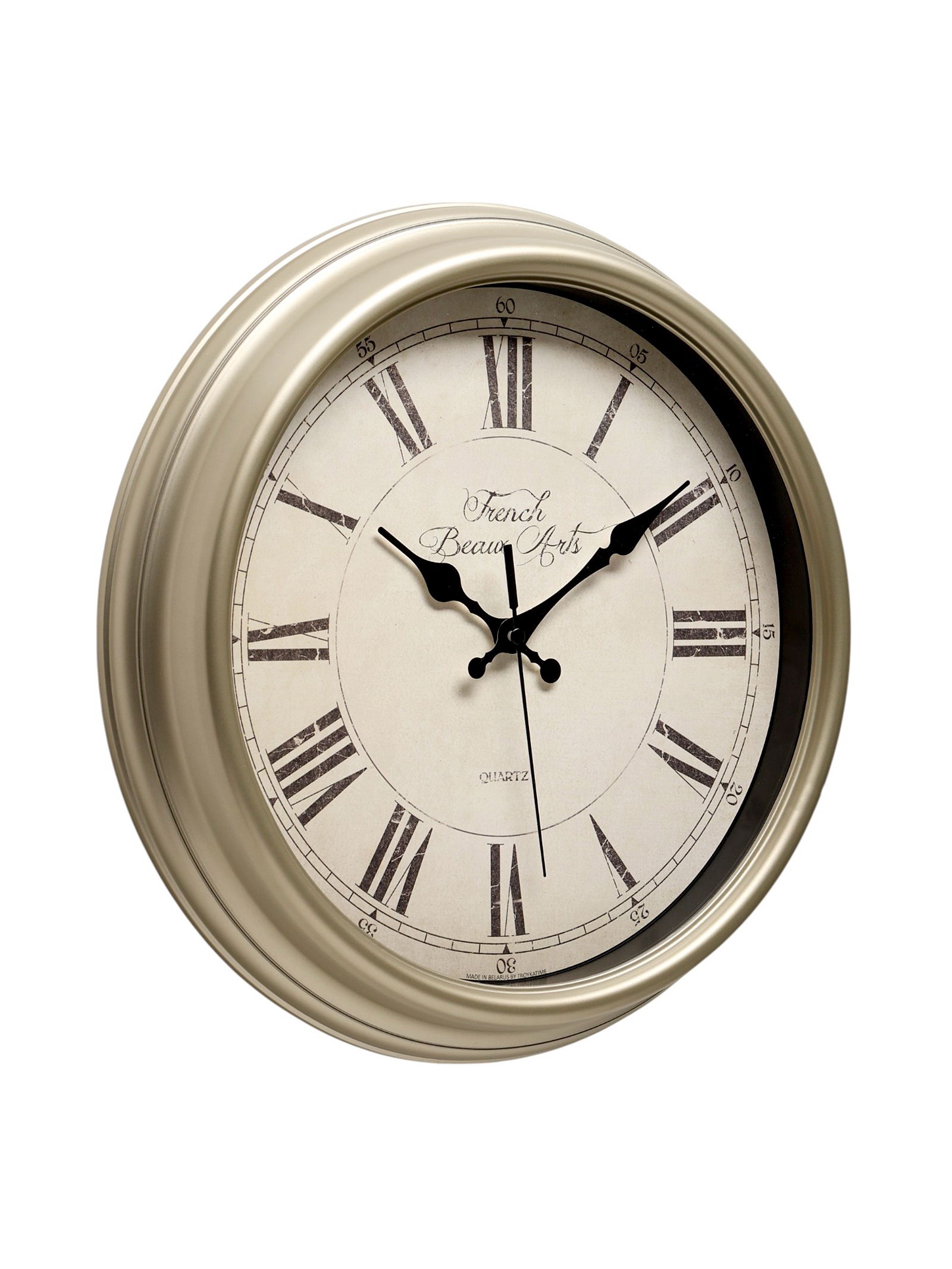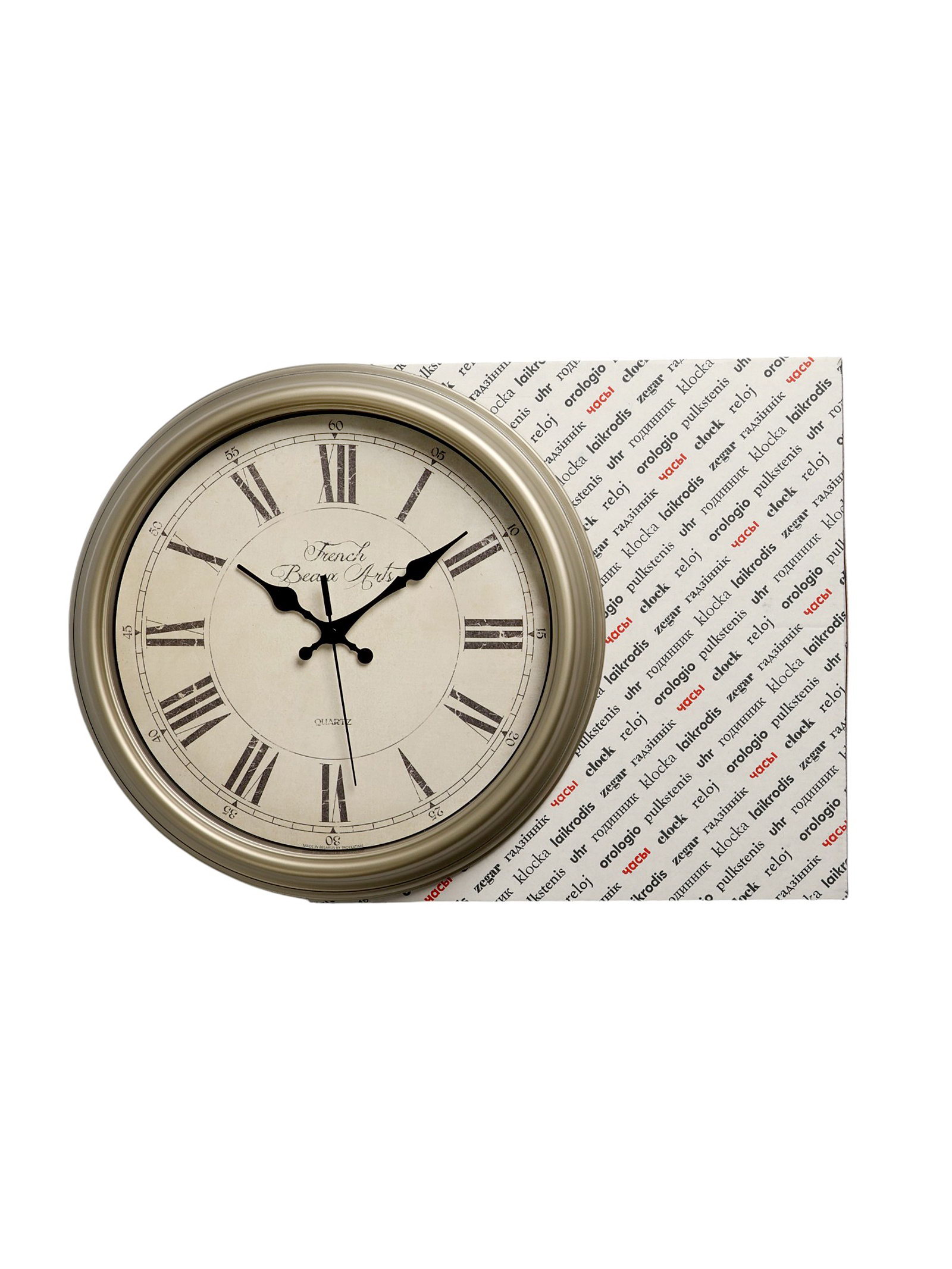 Размер упаковки: 31 x 6 x 31 см. Бесшумные: Да tnved: 9105210000 Температурное ограничение: Нет Цвет: Золотистый Форма: Круглая Высота, см: 31 Ширина, см: 31 Типоразмер батареек: AA (LR6) Ход стрелок: Плавный Тип индикации: Римские цифры Тип механизма: Кварцевый Цвет корпуса: Коричневый Цвет циферблата: Бежевый Особенности: