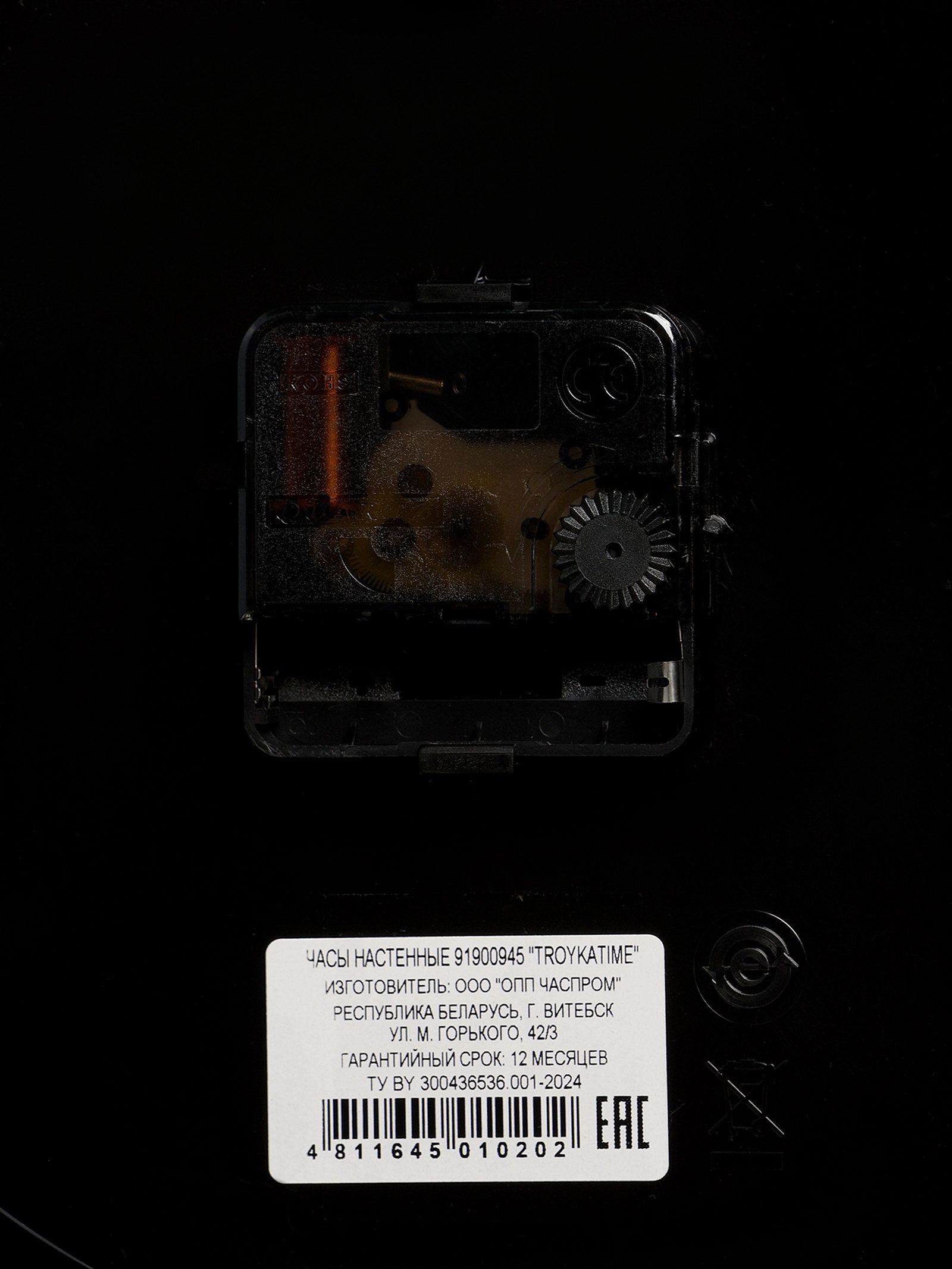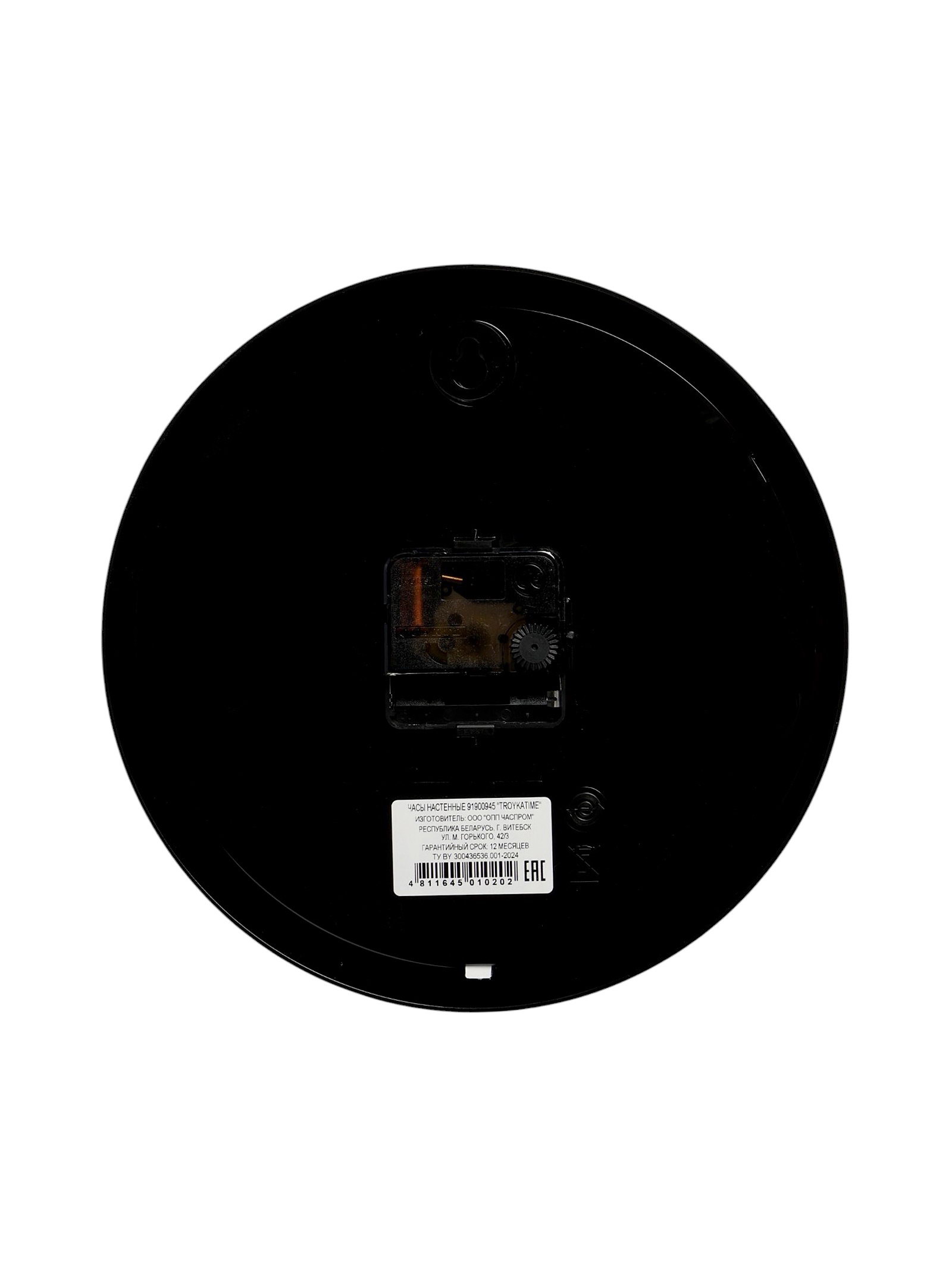 Размер упаковки: 26 x 4 x 26 см. Бесшумные: Да tnved: 9105210000 tnved: 9105210000 Температурное ограничение: Нет Цвет: Чёрный Форма: Круглая Ширина, см: 22.5 Высота, см: 22.5 Типоразмер батареек: AA (LR6) Ход стрелок: Плавный Тип индикации: Арабские цифры Тип механизма: Кварцевый Цвет корпуса: Чёрный Цвет циферблата: Белый Особенности:
