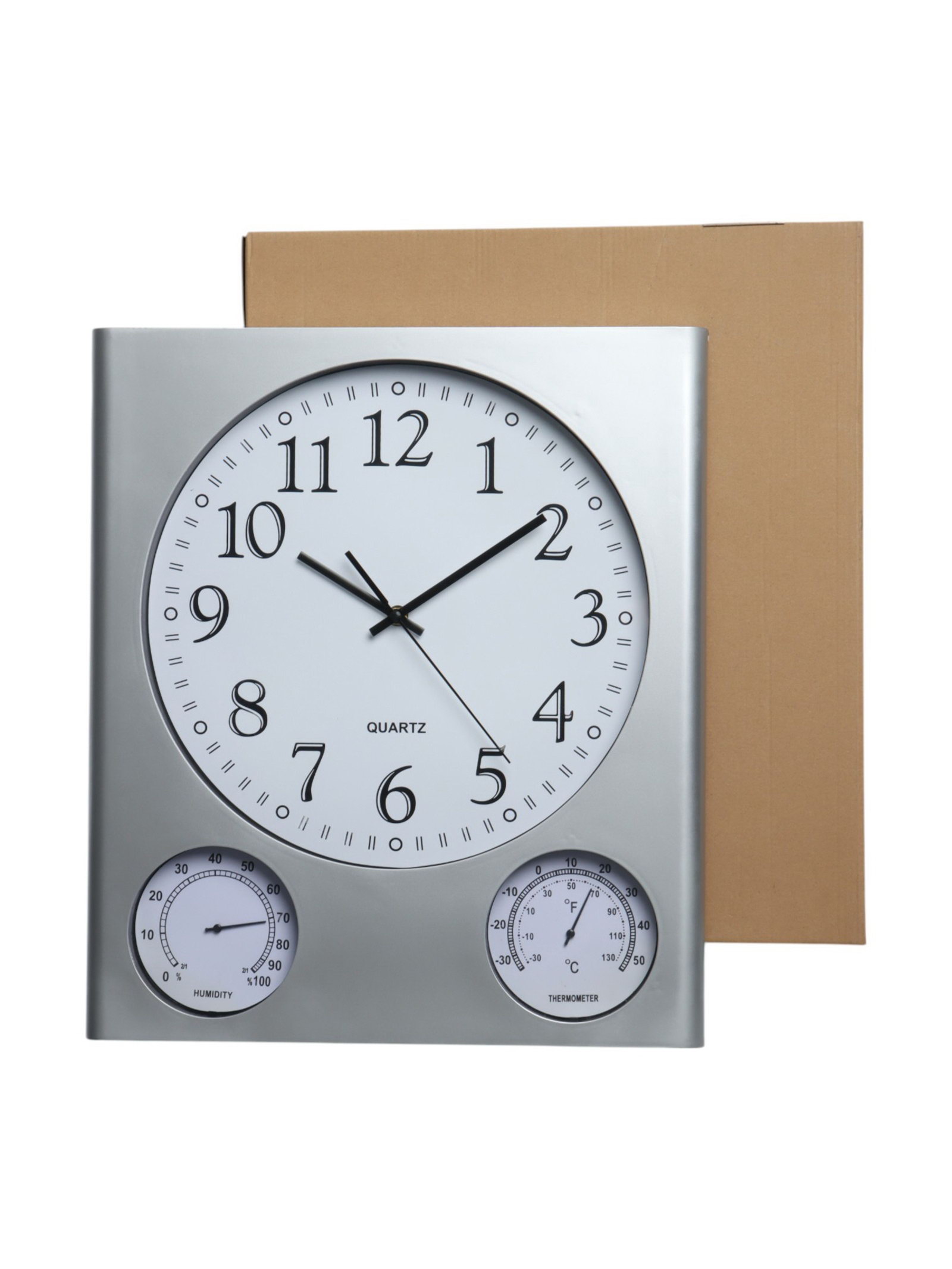Размер упаковки: 40.5 x 4.5 x 47 см. Бесшумные: Нет Тип индикации: Арабские цифры Тематика: Классика Работает от сети: Нет Форма корпуса: Прямоугольная Форма корпуса: Прямоугольная tnved: 9105210000 Цвет: Серебристый Форма: Прямоугольная Высота, см: 46 Ширина, см: 40 Тип механизма: Кварцевый Цвет корпуса: Серый Цвет циферблата: Белый Типоразмер батареек: AA (LR6) Особенности