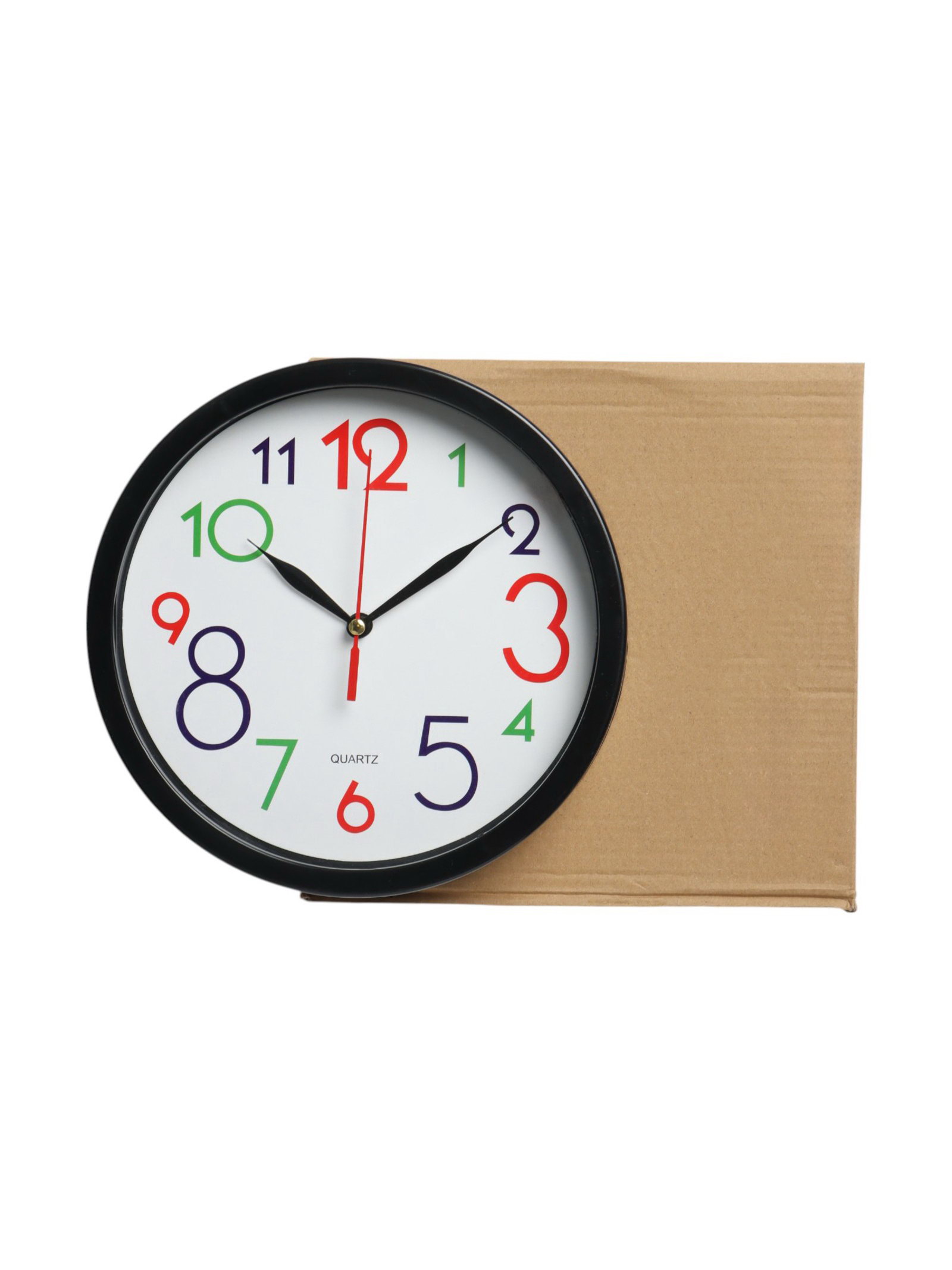 Размер упаковки: 20.5 x 4.5 x 20.5 см. Бесшумные: Нет Тематика: Классика Работает от сети: Нет Форма корпуса: Круглая Типоразмер батареек: AA (LR6) Типоразмер батареек: AA (LR6) tnved: 9105210000 Форма: Круглая Тип индикации: Арабские цифры Высота, см: 20 Ширина, см: 20 Ход стрелок: Дискретный Цвет: Чёрный Цвет корпуса: Чёрный Тип механизма: Кварцевый Цвет циферблата: Белый Особенности
