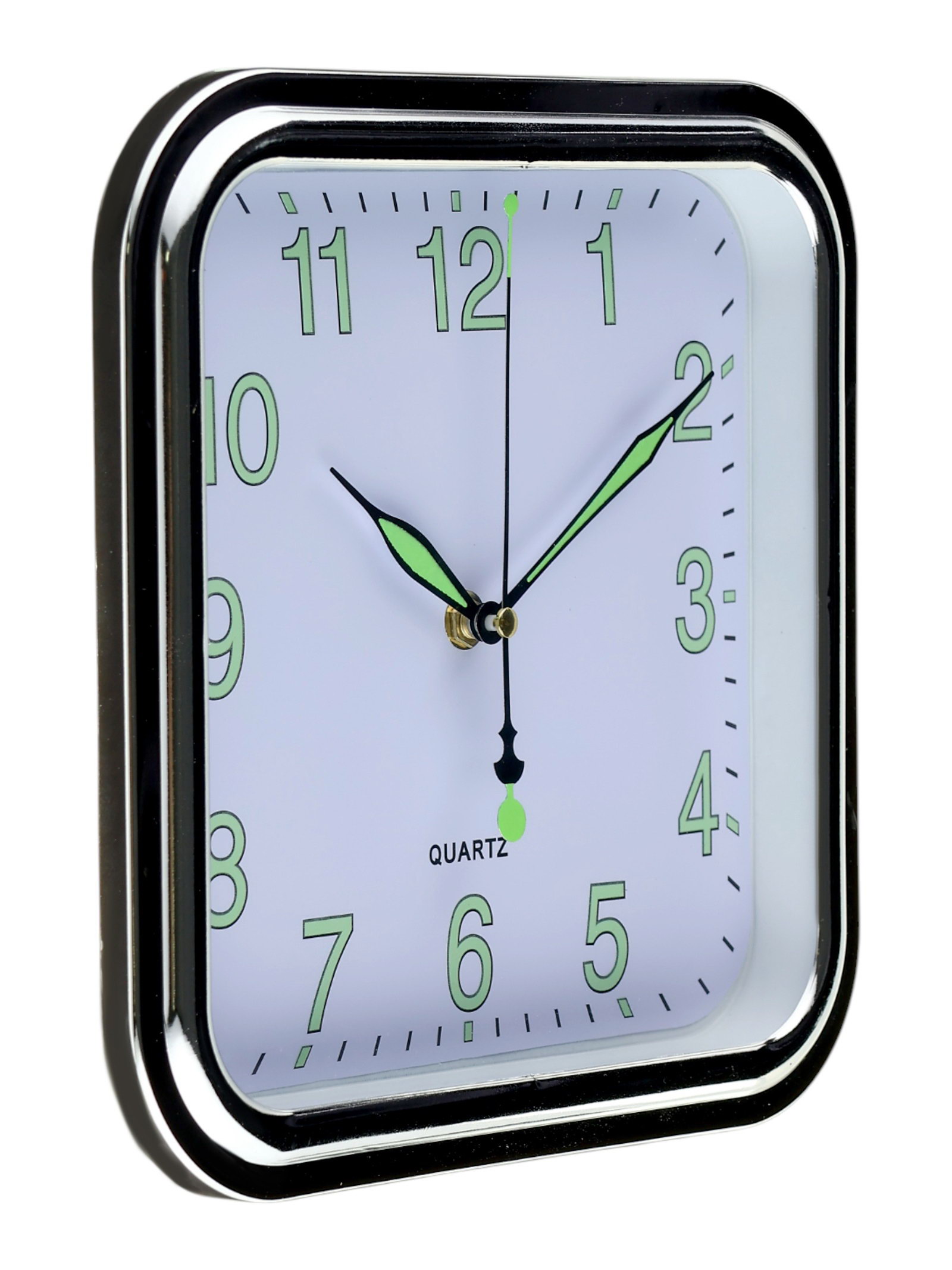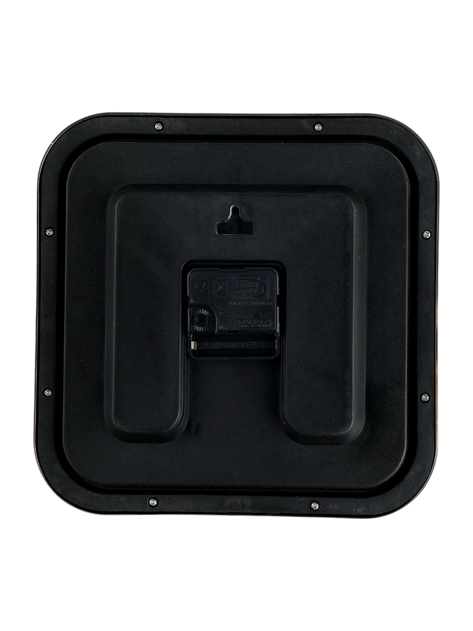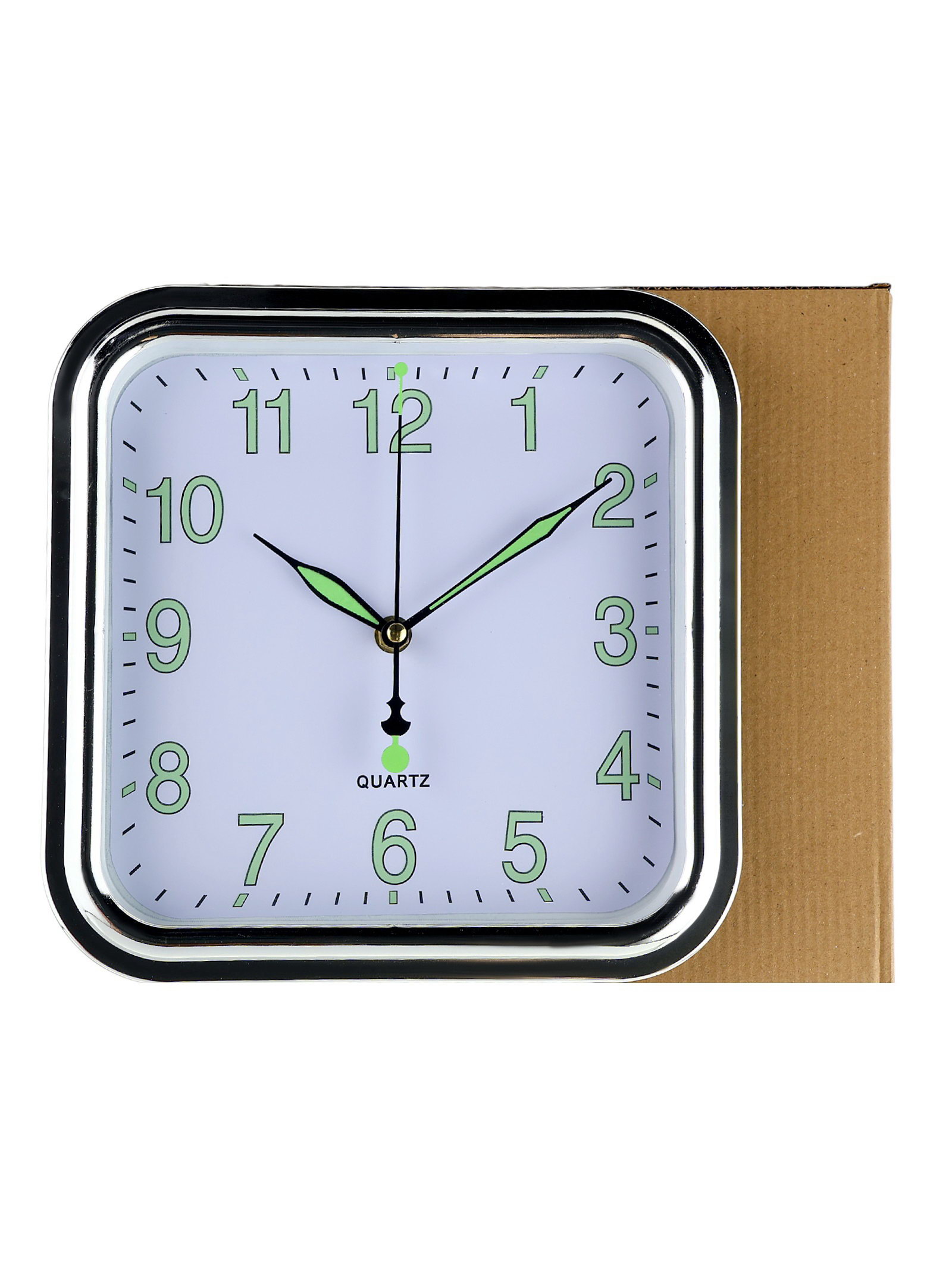 Размер упаковки: 26 x 4 x 26 см. Бесшумные: Нет Тематика: Классика Тип индикации: Арабские цифры Работает от сети: Нет Типоразмер батареек: AA (LR6) Форма корпуса: Квадратная tnved: 9105210000 tnved: 9105210000 Высота, см: 25 Ширина, см: 25 Форма: Квадратная Цвет: Чёрный Цвет корпуса: Серебристый Тип механизма: Кварцевый Цвет циферблата: Белый Особенности