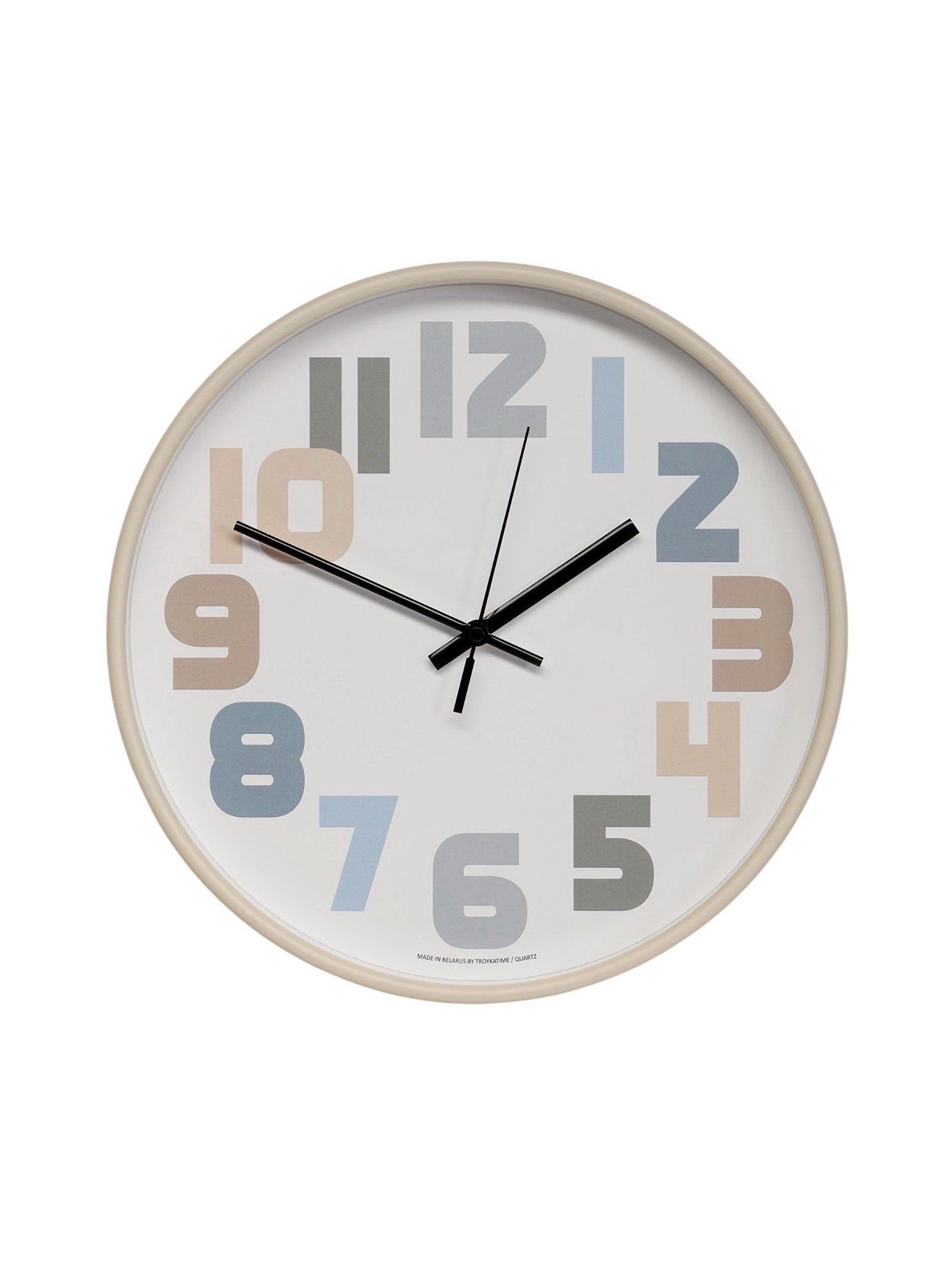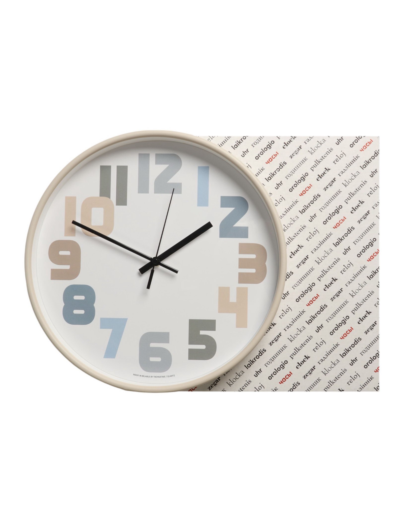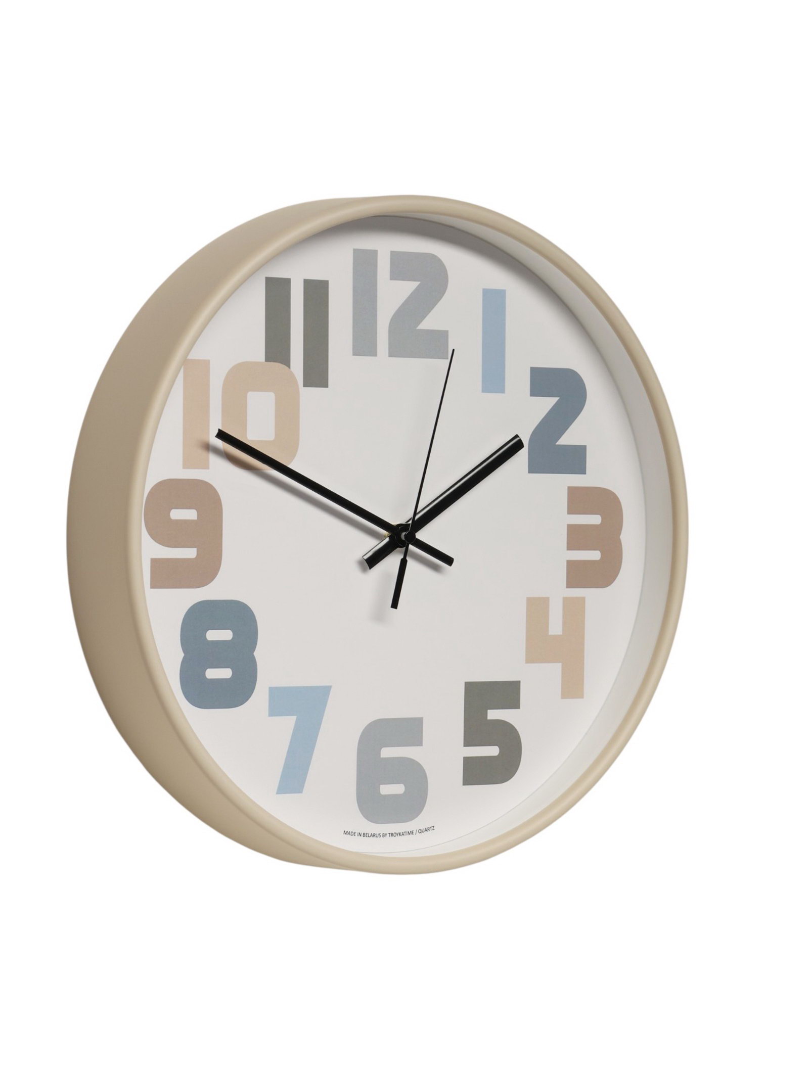 Размер упаковки: 31 x 6 x 31 см. Ход стрелок: Плавный Бесшумные: Да Бесшумные: Да tnved: 9105210000 Температурное ограничение: Нет Форма: Круглая Цвет: Бежевый Высота, см: 30.5 Ширина, см: 30.5 Тип индикации: Арабские цифры Типоразмер батареек: AA (LR6) Тип механизма: Кварцевый Цвет циферблата: Белый Цвет корпуса: Бежевый Особенности: