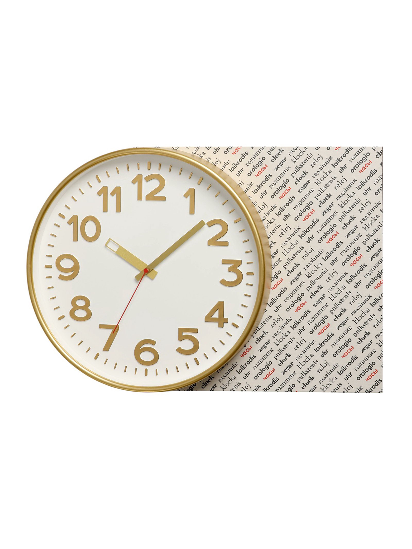 Размер упаковки: 31 x 6 x 31 см. Тип индикации: Арабские цифры tnved: 9105210000 tnved: 9105210000 Температурное ограничение: Нет Цвет: Золотистый Форма: Круглая Ширина, см: 30.5 Высота, см: 30.5 Тип механизма: Кварцевый Цвет циферблата: Белый Цвет корпуса: Золотистый | ||