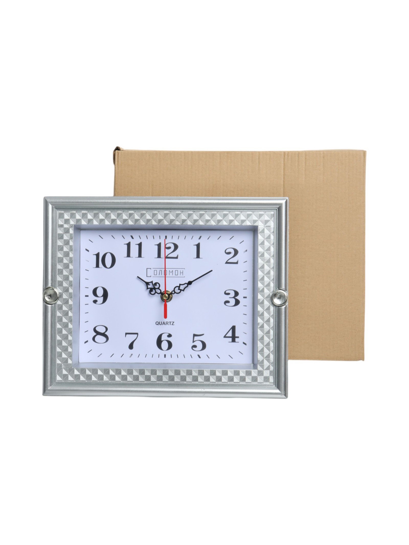 Размер упаковки: 24 x 4 x 28.5 см. Форма: Прямоугольная Высота, см: 22.5 Ширина, см: 27.5 Цвет корпуса: Серебристый Цвет циферблата: Белый Тип механизма: Кварцевый Бесшумные: Да Тип индикации: Арабские цифры Цвет: Серебристый Работает от сети: Нет Форма корпуса: Прямоугольная Типоразмер батареек: AA (LR6) tnved: 9105210000 | ||
