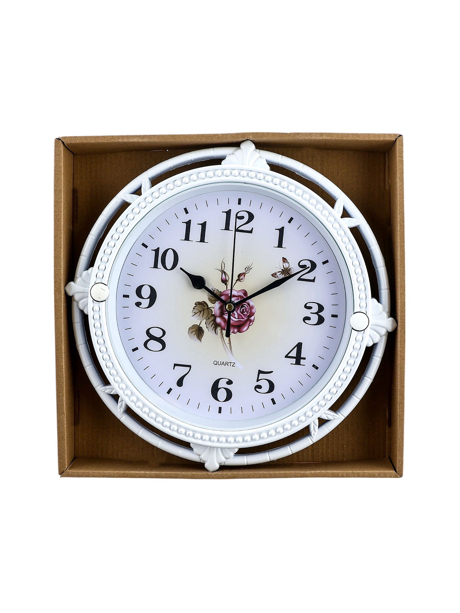 Размер упаковки: 4 x 27 x 27 см. Цвет: Белый Форма: Круглая Тип индикации: Арабские цифры Тематика: Цветочно-растительная Бесшумные: Нет Цвет циферблата: Белый Форма корпуса: Круглая Работает от сети: Нет tnved: 9105210000 Тематика праздника: 8 Марта Высота, см: 27 Ход стрелок: Дискретный Ширина, см: 27 Диаметр циферблата, см: 20 Типоразмер батареек: AA (LR6) Тип механизма: Кварцевый Цвет корпуса: Белый Особенности