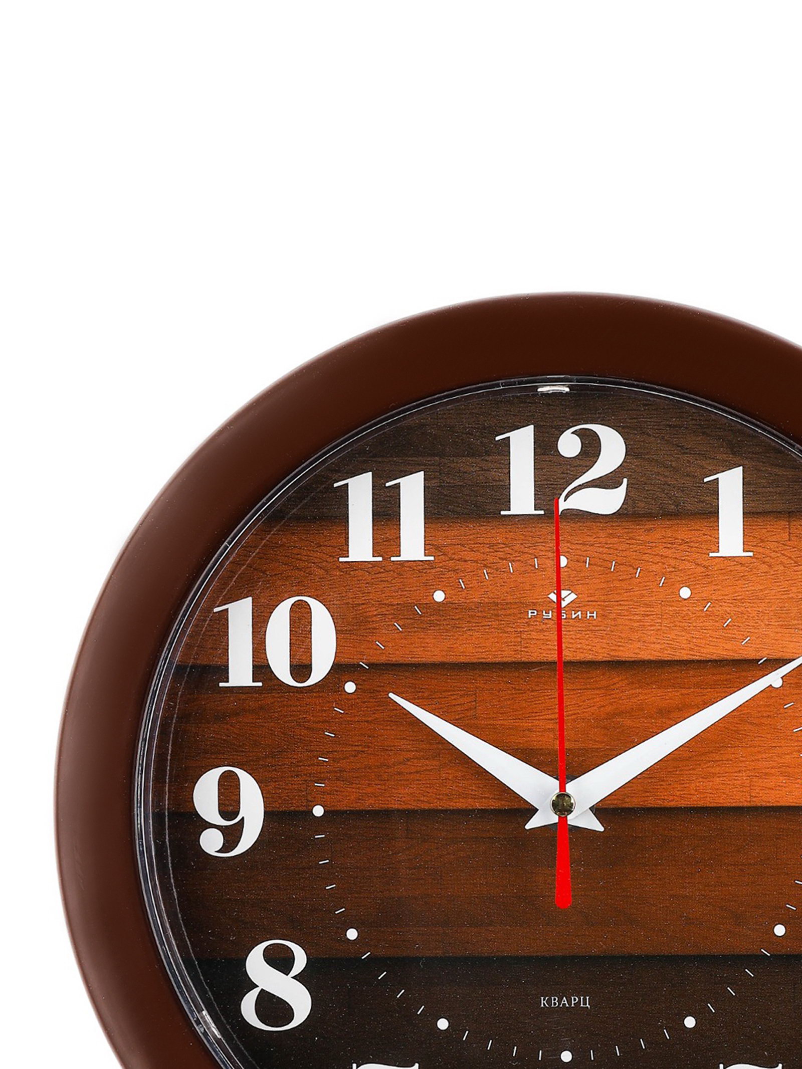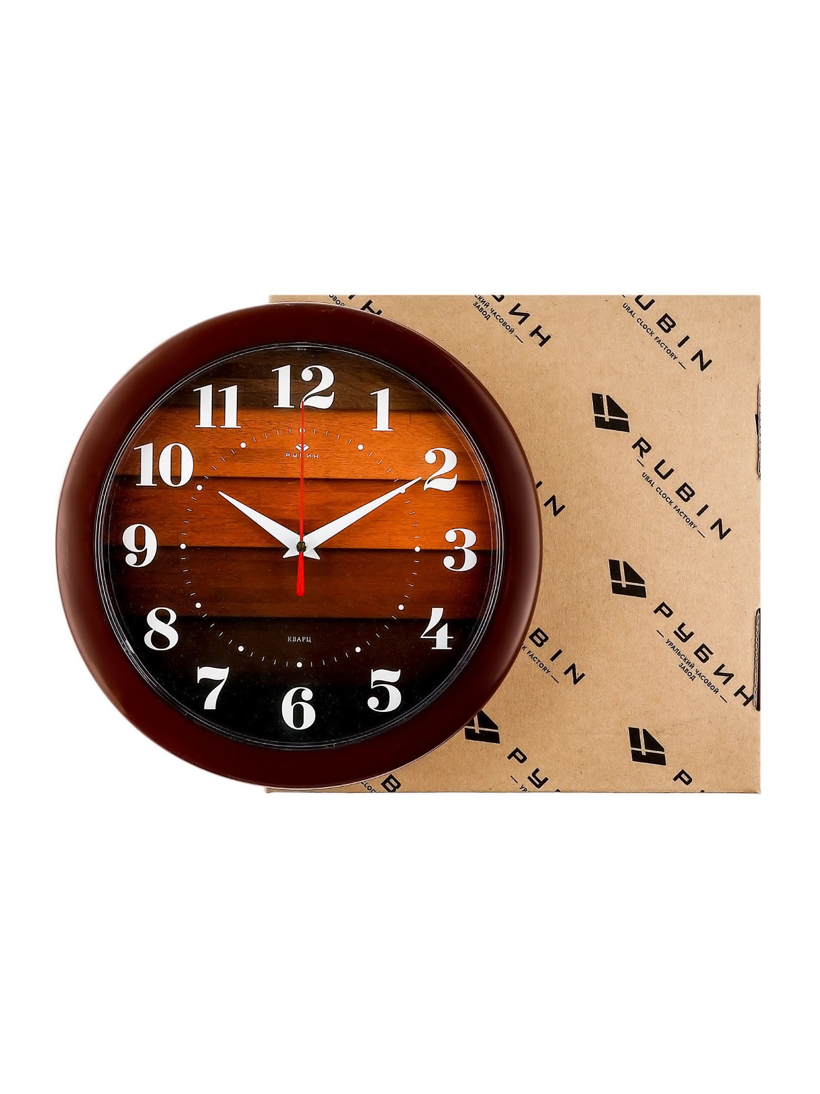 Часы настенные, интерьерные "Паркет", бесшумные, d=23 см, коричневый корпус, 23x4.3x23 см., Рубин, Россия