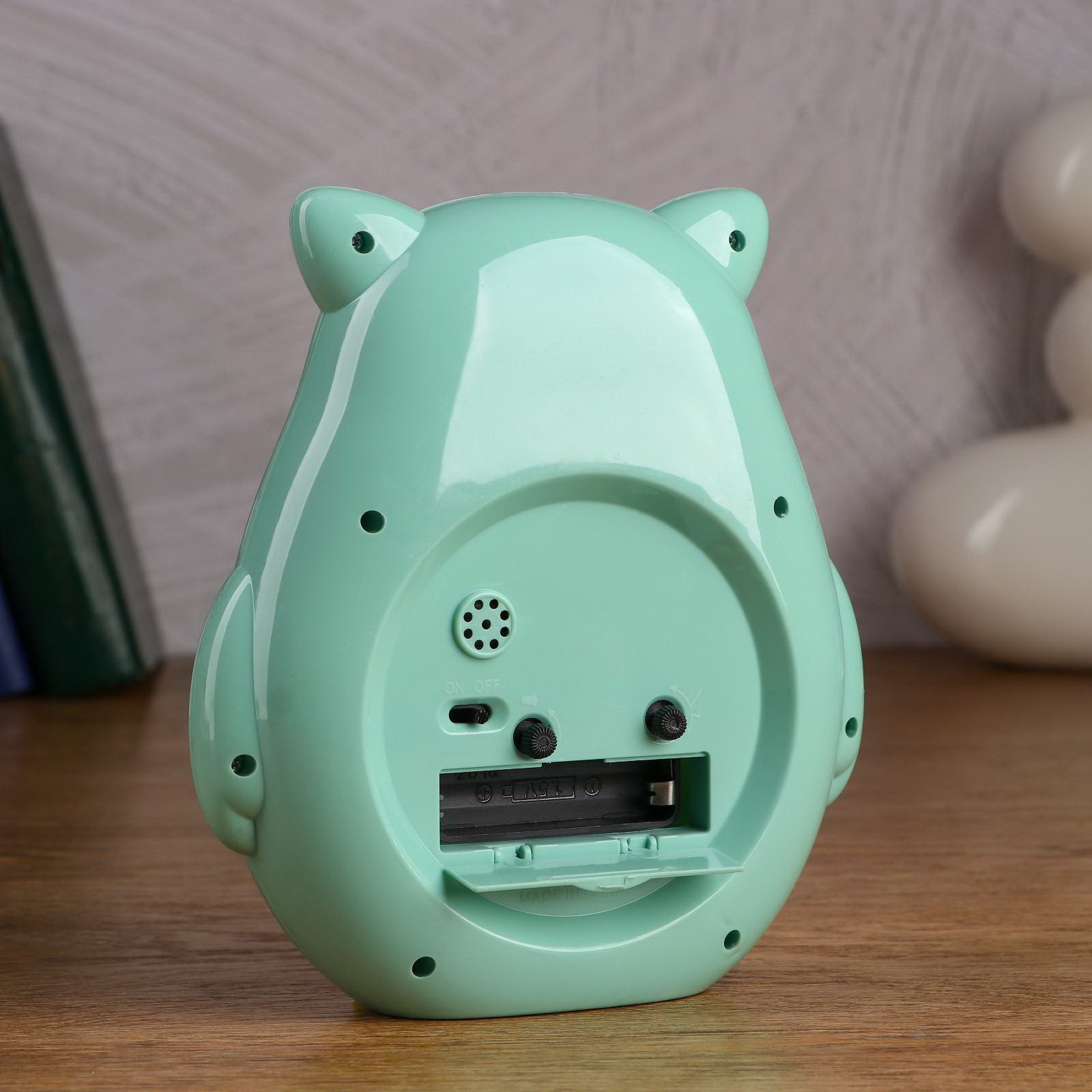 Тематика: Детская, Животный мир Размер упаковки: 5.3 x 17.5 x 15.5 см. Размер упаковки: 5.3 x 17.5 x 15.5 см. tnved: 9105110000 Форма: Фигурная Типоразмер батареек: AA (LR6) Размер циферблата, см: 11 x 11 Цвет: Зелёный Высота, см: 16 Ширина, см: 14.5 Ход стрелок: Дискретный Тип индикации: Арабские цифры Тип питания: От батареек Тип механизма: Кварцевый Цвет циферблата: Зелёный Цвет корпуса: Зелёный Часы с будильником представлены в ярком дизайне в форме милого совенка, они отлично впишутся в ваш интерьер. Интерьерные часы станут прекрасным декором для дома и дачи, их можно поставить как на прикроватную тумбочку в спальне, детской комнате, гостиной так и на стол или на комод в зале, холле или на кухне. Будильник настольный имеет кварцевый механизм, который гарантирует высокую точность хода. Часы настольные обладают громким будильником, ребенку и вам будет комфортно просыпаться, на работу и в школу. Будильник на батарейках не требует частой замены батареек благодаря экономичному механизму. Часы настольные на батарейках будут приятным сюрпризом любимому мужу, папе, дедушке, брату, парню на 23 февраля, новый год, новоселье, день рождения или жене, маме, бабушке, сестре, девушке, женщине на любой праздник. Особенности