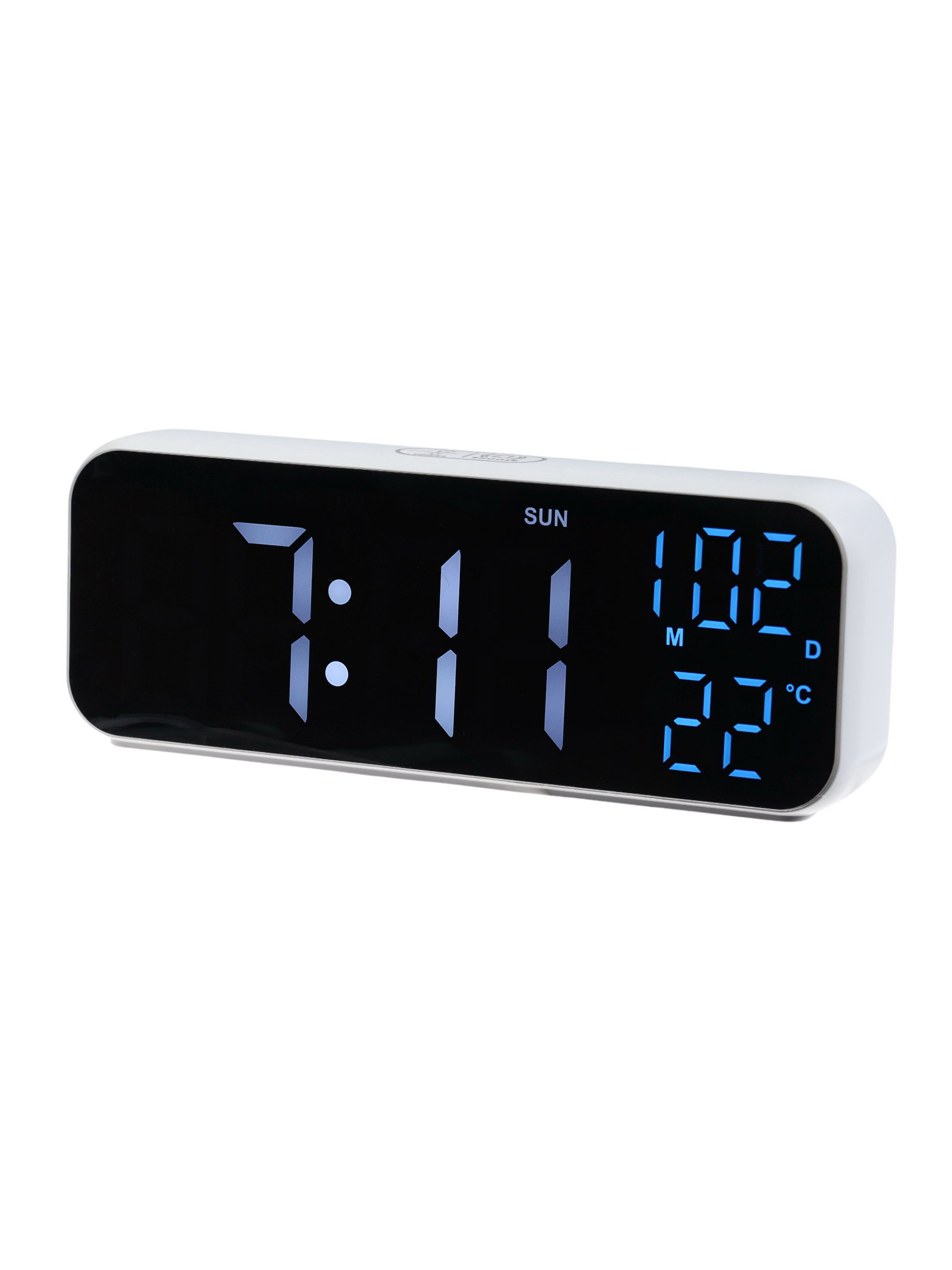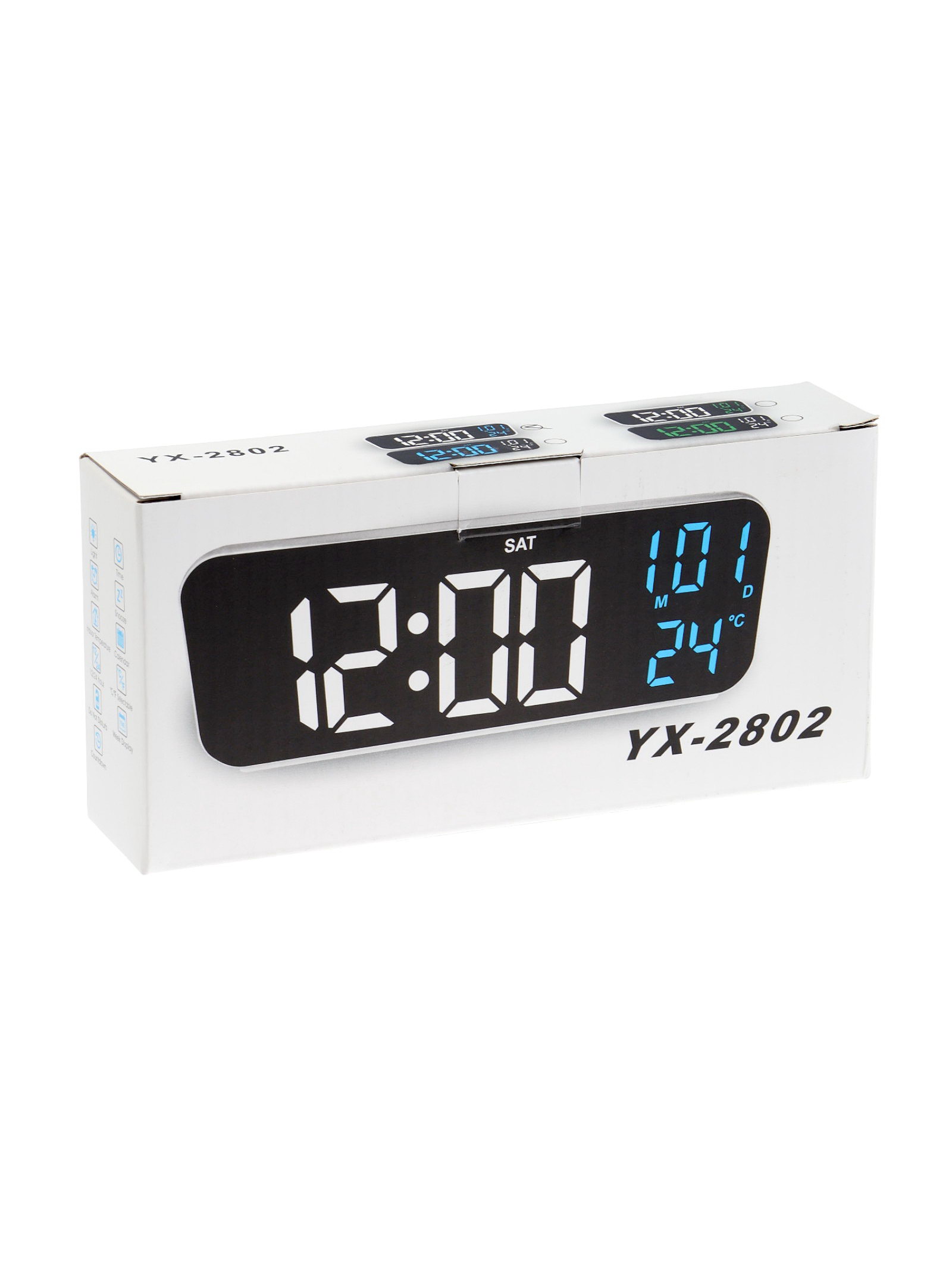 Цвет корпуса: Белый, Чёрный Особенности: С календарём, С термометром, Таймер сна Размер упаковки: 8.5 x 9 x 4.5 см. tnved: 9105910000 Форма: Прямоугольная Тип питания: От USB Цвет индикации: Синий Электронные настольные часы-будильник с прямоугольной формой в белом и чёрном корпусе, питающиеся от USB, оснащены синей индикацией и встроенными функциями календаря, термометра, а также таймером, превращая устройство в компактный центр для отслеживания времени, погоды и отдыха. Компактный дизайн с белым и чёрным сочетанием гармонично вписывается в современные интерьеры, где синяя подсветка дополняет календарь для планирования дней, термометр для контроля климата и таймер сна для комфортного засыпания идеально для рабочего стола или спальни.