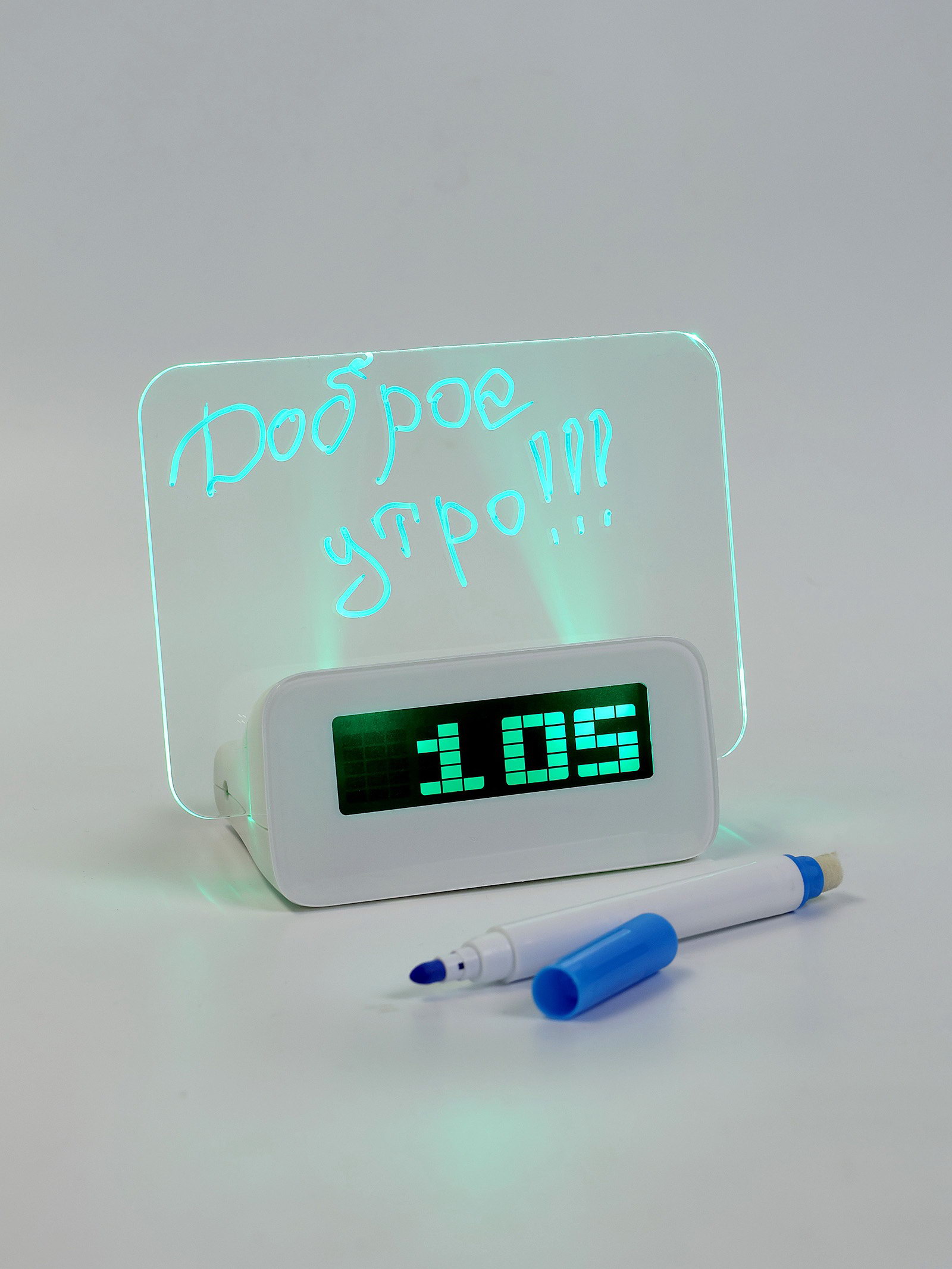 Часы - будильник электронные "Послание", с маркером, подсветка зелёного цвета, белый, 14x6.5x12 см., Китай