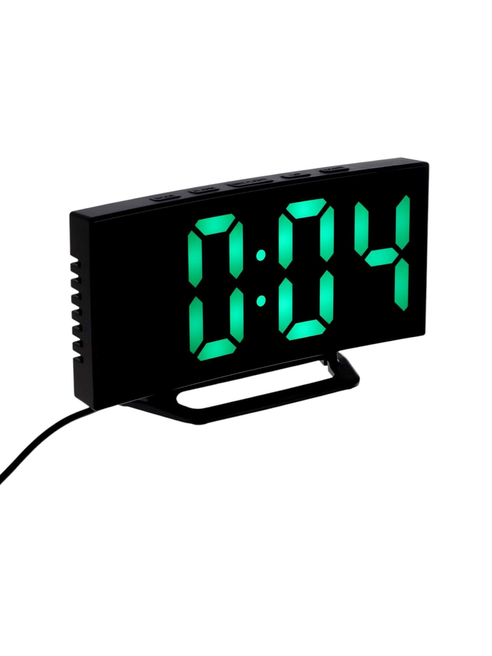 Часы - будильник электронные настольные, термометр, календарь, USB, 15x8 см, зелёная индикация, 8x15x4 см., Китай