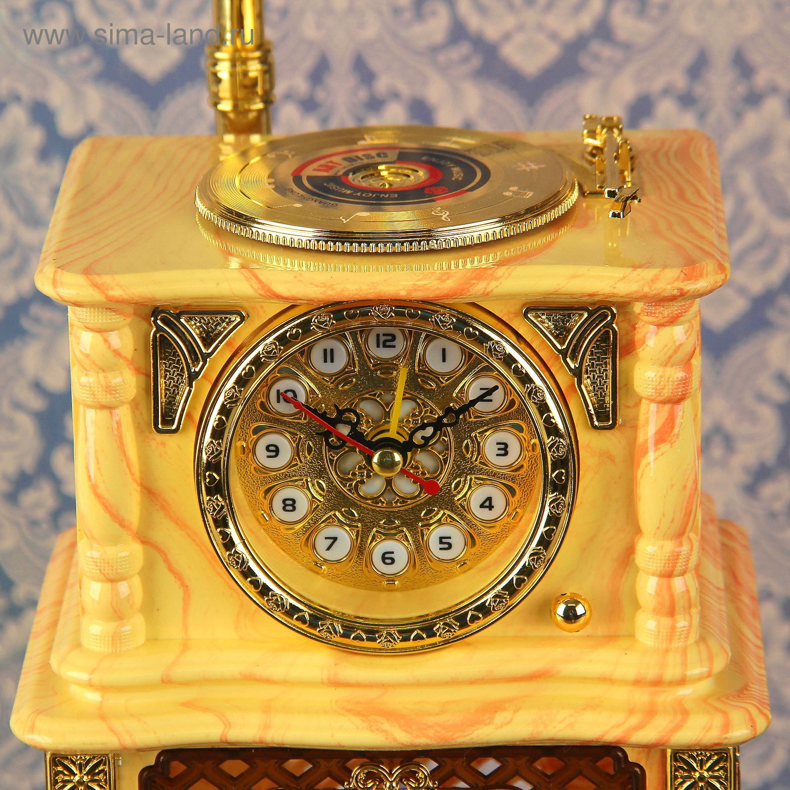 Тематика: Винтаж, Музыкальные инструменты Размер упаковки: 15.5 x 29.5 x 16.5 см. tnved: 9105910000 Тип механизма: Кварцевый Цвет циферблата: Золотистый Цвет корпуса: Золотистый Медиагалерея: Без медиа Тип питания: От сети 220 В Форма: Фигурная Типоразмер батареек: AA (LR6) Размер циферблата, см: 5.5 x 5.5 Цвет: Бронзовый Тип индикации: Арабские цифры Высота, см: 43 Ширина, см: 16 Особенности