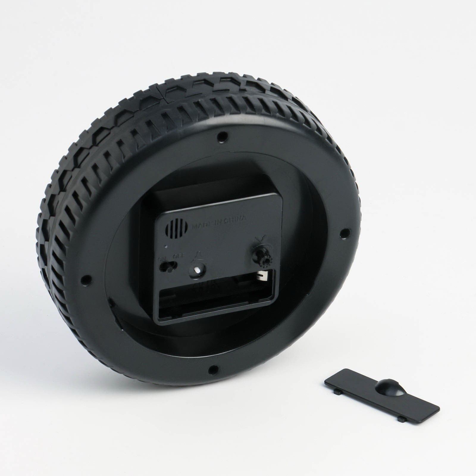 Размер упаковки: 15 x 5 x 14.5 см. Тематика: Транспорт tnved: 9105110000 tnved: 9105110000 Типоразмер батареек: AA (LR6) Размер циферблата, см: 10 x 10 Форма: Фигурная Цвет: Чёрный Ход стрелок: Дискретный Ширина, см: 14 Высота, см: 14 Тип индикации: Арабские цифры Тип питания: От батареек Цвет корпуса: Чёрный Тип механизма: Кварцевый Цвет циферблата: Чёрный Часы с будильником представлены в ярком дизайне в форме автомобильного колеса, они отлично впишутся в ваш интерьер. Интерьерные часы станут прекрасным декором для дома и дачи, их можно поставить как на прикроватную тумбочку в спальне, детской комнате, гостиной так и на стол или на комод в зале, холле или на кухне. Будильник настольный имеет кварцевый механизм, который гарантирует высокую точность хода. Часы настольные обладают громким будильником, ребенку и вам будет комфортно просыпаться, на работу и в школу. Будильник на батарейках не требует частой замены батареек благодаря экономичному механизму. Часы настольные на батарейках будут приятным сюрпризом любимому мужу, папе, дедушке, брату, парню на 23 февраля, новый год, новоселье, день рождения или жене, маме, бабушке, сестре, девушке, женщине на любой праздник. Особенности