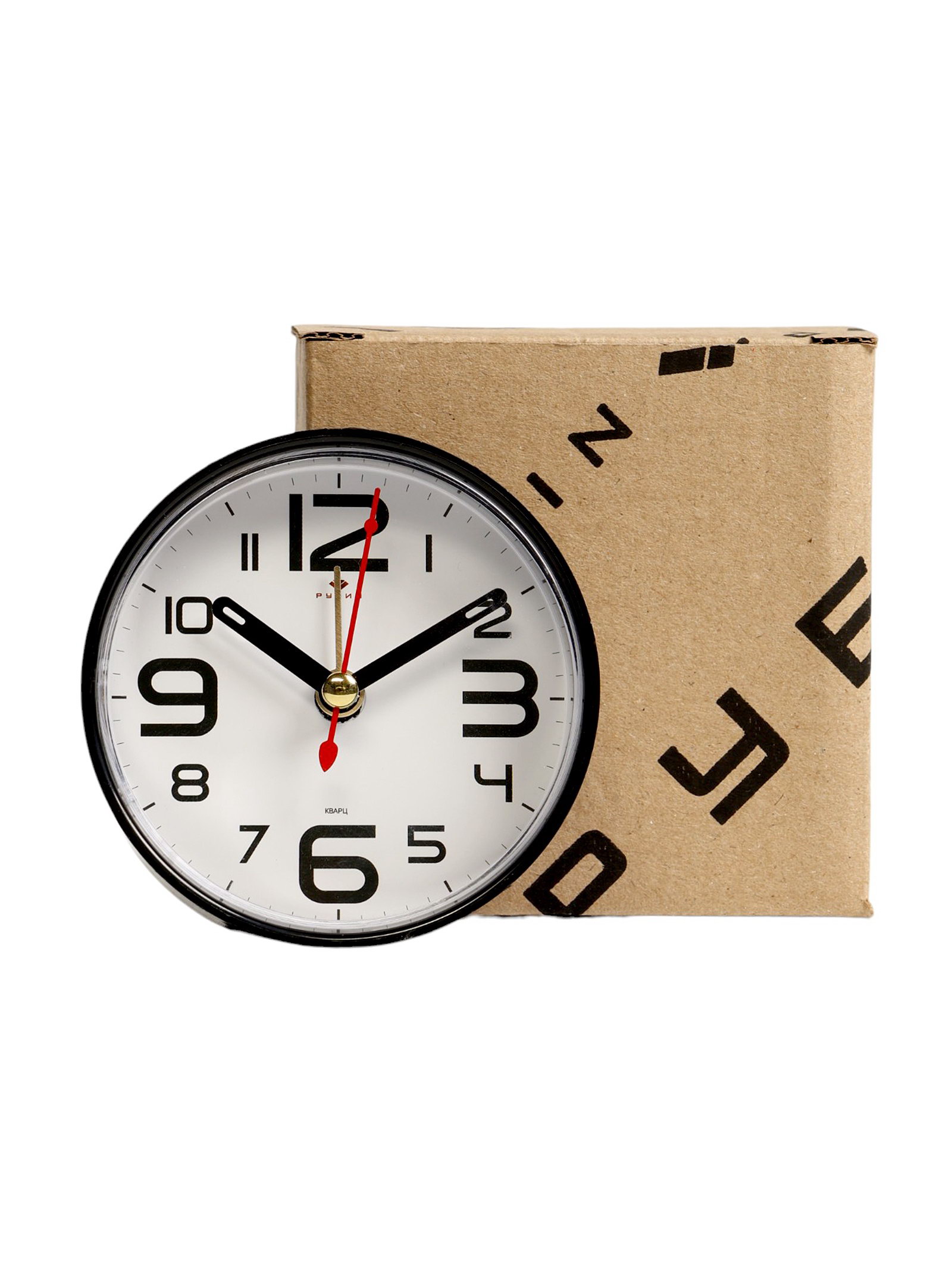 Будильник-часы настольные "Классика", 8x8 см, от батарейки АА, чёрный, 8x8x3.7 см., Рубин, Россия