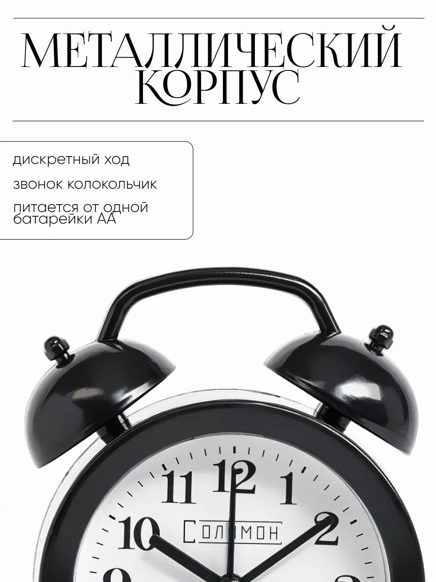Часы - будильник настольные дискретный ход, 9.8 x 12 см, АА, 8.5x4x12.5 см., Соломон, Китай