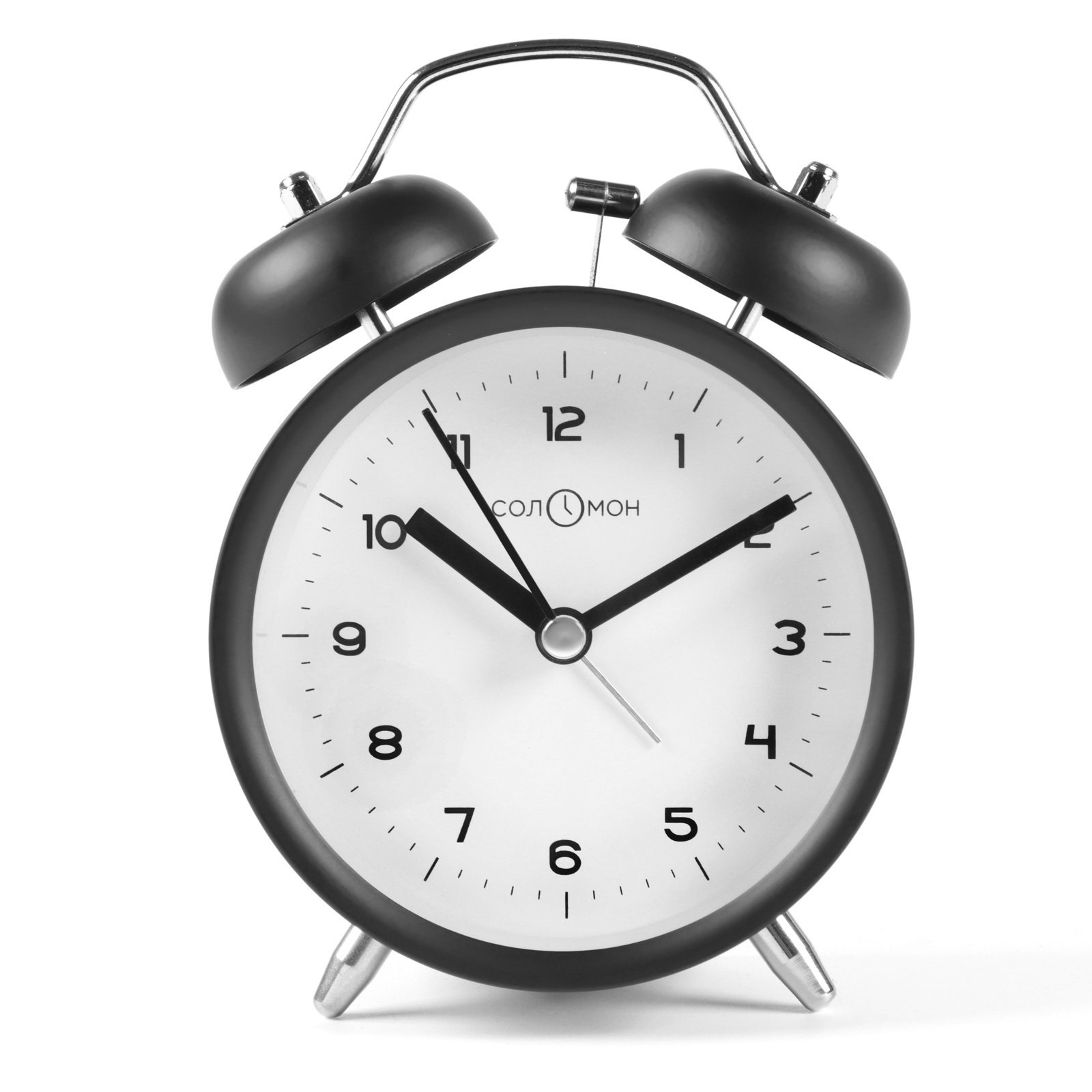 Будильник "Классика", дискретный ход, d=9.8 см, от батарейки АА, чёрный, 5.2x98x14 см., Соломон, Китай