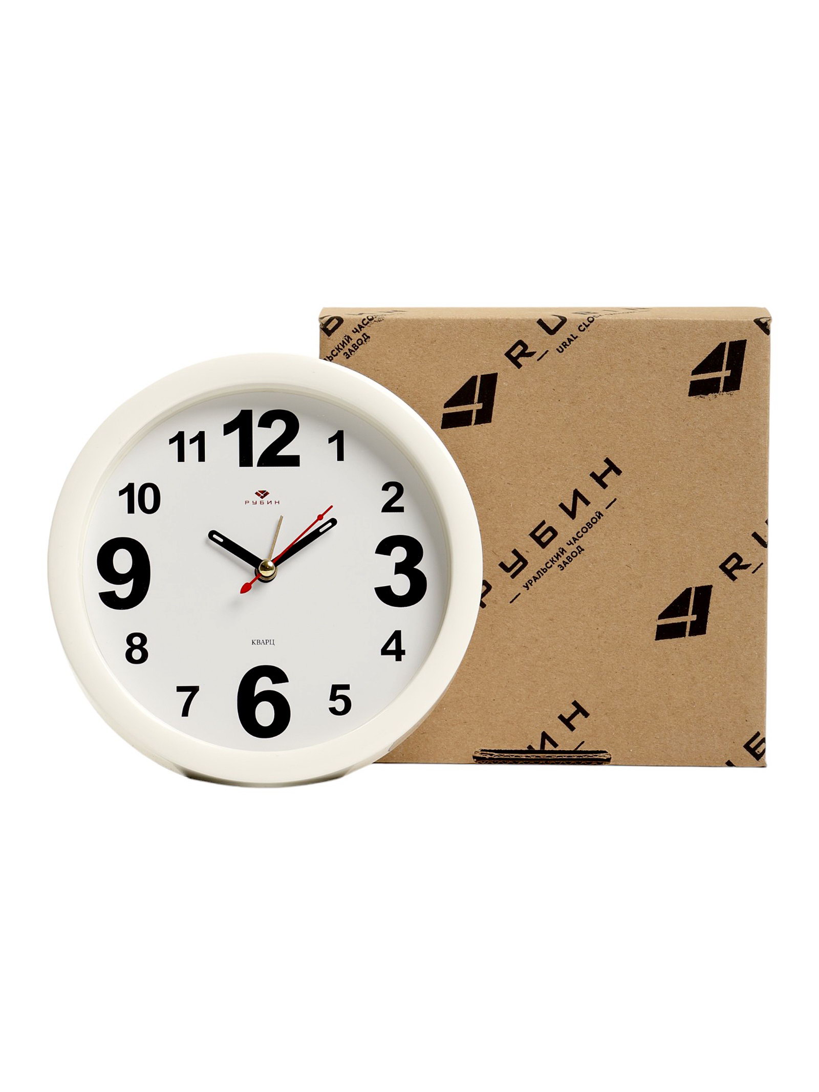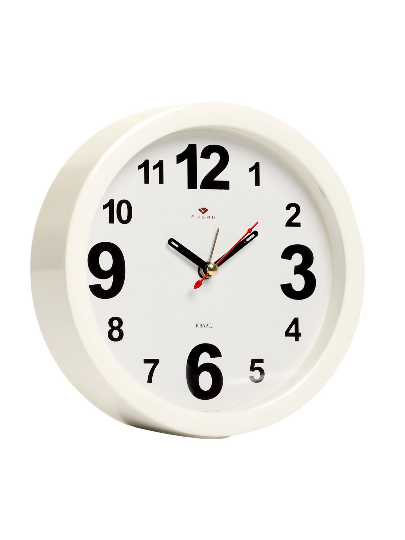 Будильник-часы настольные "Классика", дискретный ход, d=15 см, 16.5x16.5 см, от батарейки АА, Рубин, Россия