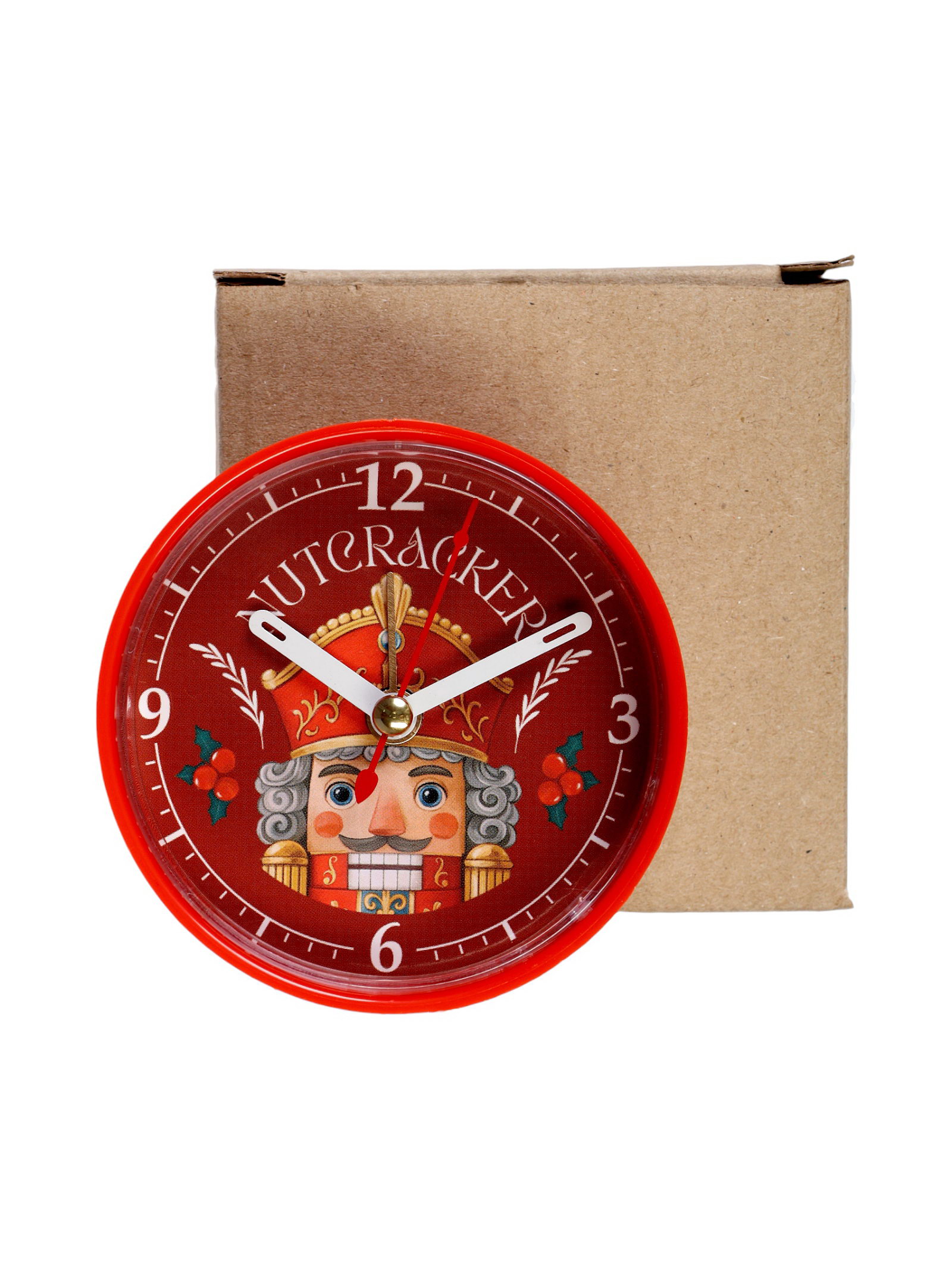 Будильник "Щелкунчик", плавный ход, 8x8 см, красный, Рубин, Россия