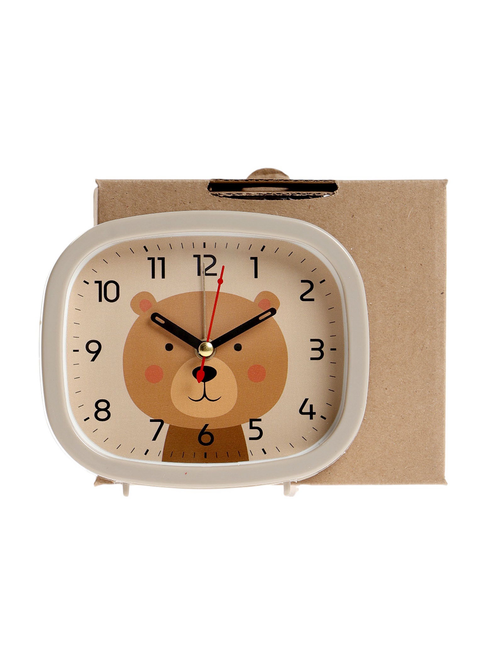 Размер упаковки: 11.5 x 4.8 x 13.5 см. tnved: 9105110000 Гарантийный срок, мес.: 12 Температурное ограничение: Нет Цвет циферблата: Бежевый Цвет корпуса: Бежевый Тип механизма: Кварцевый Форма: Прямоугольная Ход стрелок: Плавный Бежевый будильник с плавным ходом стрелок это уютный элемент декора, который добавит тепла и гармонии в вашу спальню или детскую. Прямоугольный корпус размером 12.5x10.5 см в нежном бежевом тоне создаёт ощущение спокойствия и комфорта, идеально вписываясь в интерьеры с натуральными оттенками. Кварцевый механизм обеспечивает высокую точность, а плавное движение стрелок минимизирует шум, способствуя мягкому и приятному пробуждению. Бежевый циферблат с изображением милого медвежонка привносит нотку нежности и детской радости, превращая будильник в источник позитивных эмоций. Этот прибор сочетает функциональность с эстетикой, где бежевый цвет корпуса и циферблата способствует расслабляющей атмосфере, а изображение медвежонка символизирует защиту и заботу, помогая начинать день с улыбки и снижая стресс от раннего подъёма.