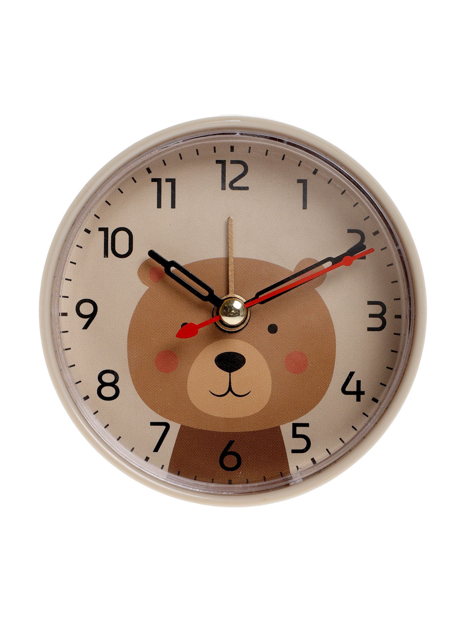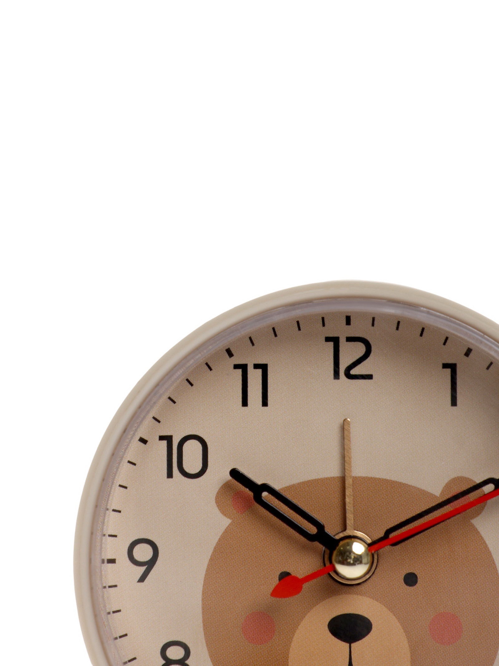 Будильник "Медвежонок", плавный ход, d=8 см, бежевый, Рубин, Россия