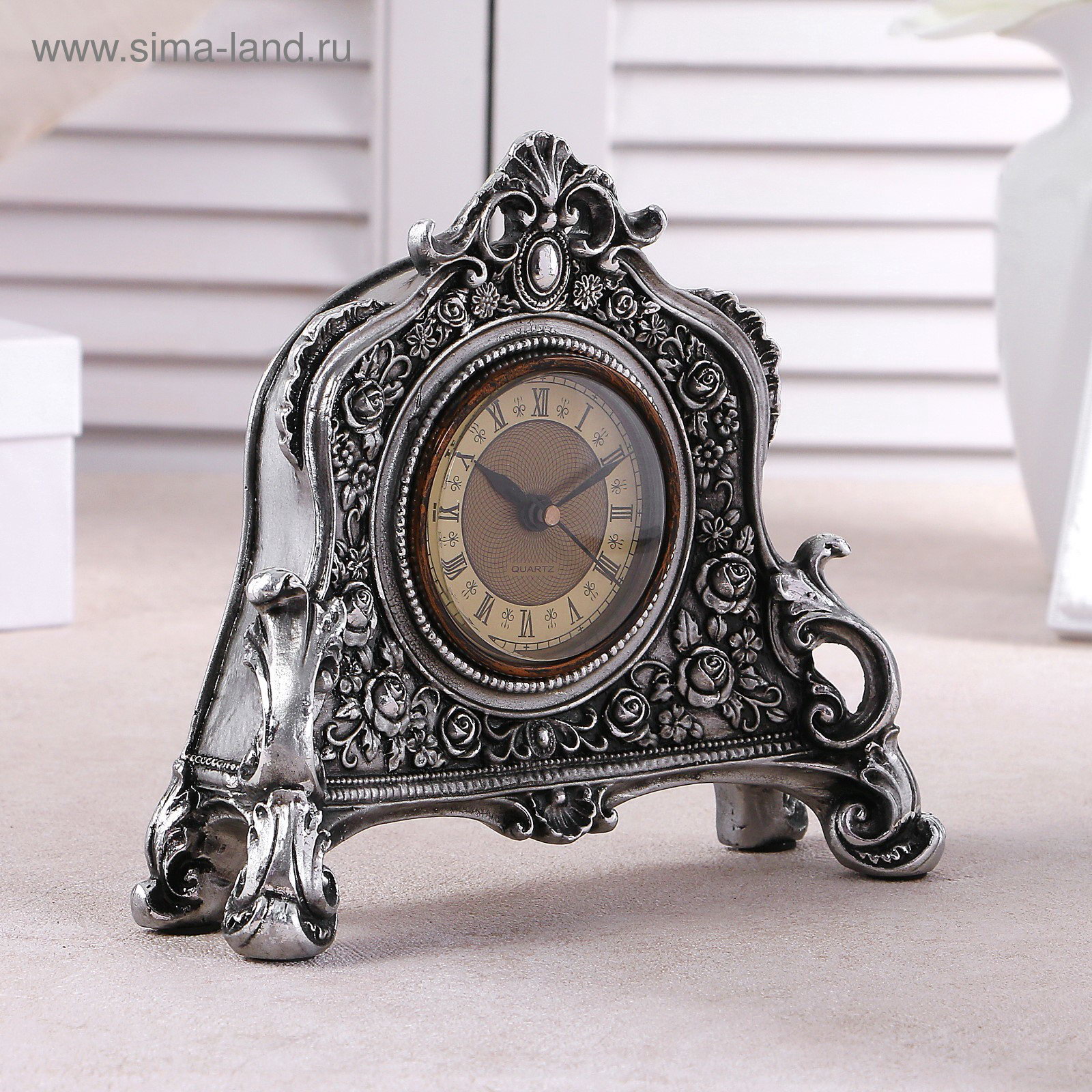 Размер упаковки: 20 x 7 x 22 см. tnved: 9103900000 Температурное ограничение: Нет Форма: Фигурная Ход стрелок: Плавный Тип механизма: Кварцевый Цвет циферблата: Коричневый Цвет корпуса: Серебристый Для тех, кто ценит уют и любит посидеть у камина, с достоинством оценят настольные каминные часы. Часы уже давно перестали быть предметом исключительно практического назначения. Сегодня они являются еще и отличным элементом декора, который вполне может стать настоящей изюминкой вашего интерьера, придавая ему уют и красоту. Часы настольные представлены в оригинальном дизайне, они отлично впишутся в интерьер в стиле рококо, барокко, классический. Интерьерные часы станут прекрасным декором для дома и дачи, их можно поставить как на прикроватную тумбочку в спальне, детской комнате, гостиной так и на стол или на комод в зале, холле или на кухне. Часы настольные имеют кварцевый механизм, который гарантирует высокую точность хода. Часы не требуют частой замены батареек (тип АА, 1 шт, в комплект не входит), благодаря экономичному механизму. Чтобы вставить батарейку, необходимо достать циферблат, внутри есть отделение для батареек. Стильные часы на батарейках будут приятным сюрпризом любимому мужу, папе, дедушке, брату, парню на 23 февраля, Новый год, новоселье, день рождения или жене, маме, бабушке, сестре, девушке, женщине на любой праздник. | ||