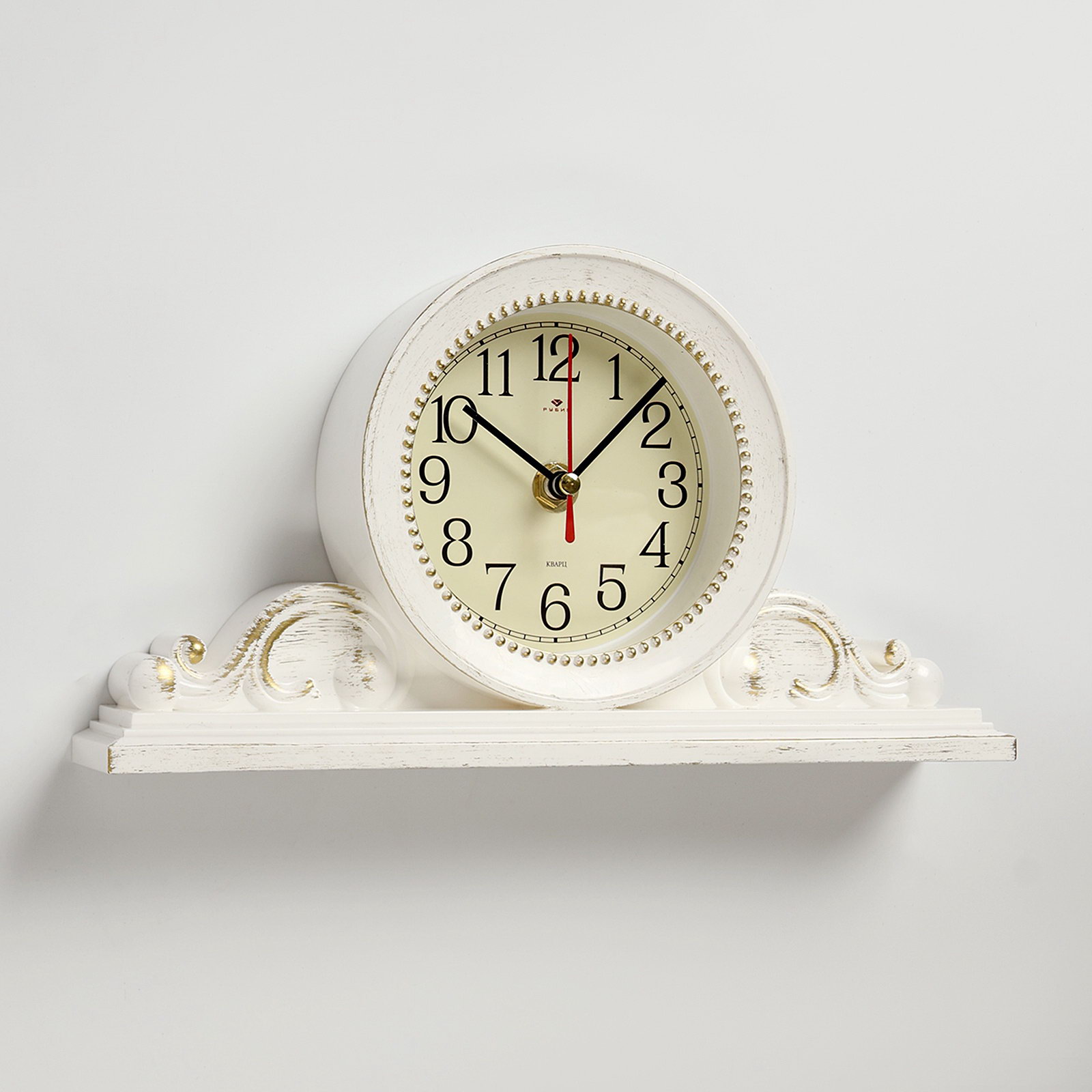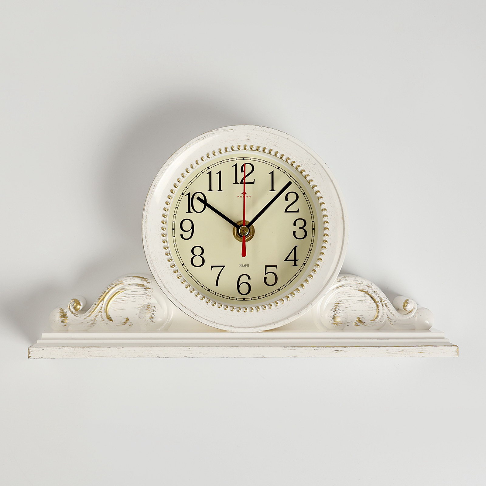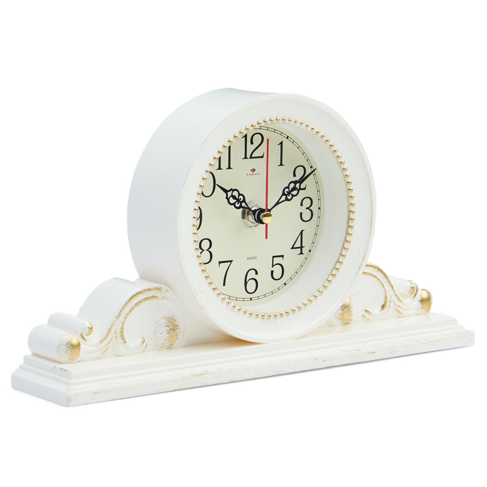 Часы настольные, интерьерные "Милица", бесшумные, d-9.5 см, корпус белый с золотом, 14x26 см., Рубин, Россия