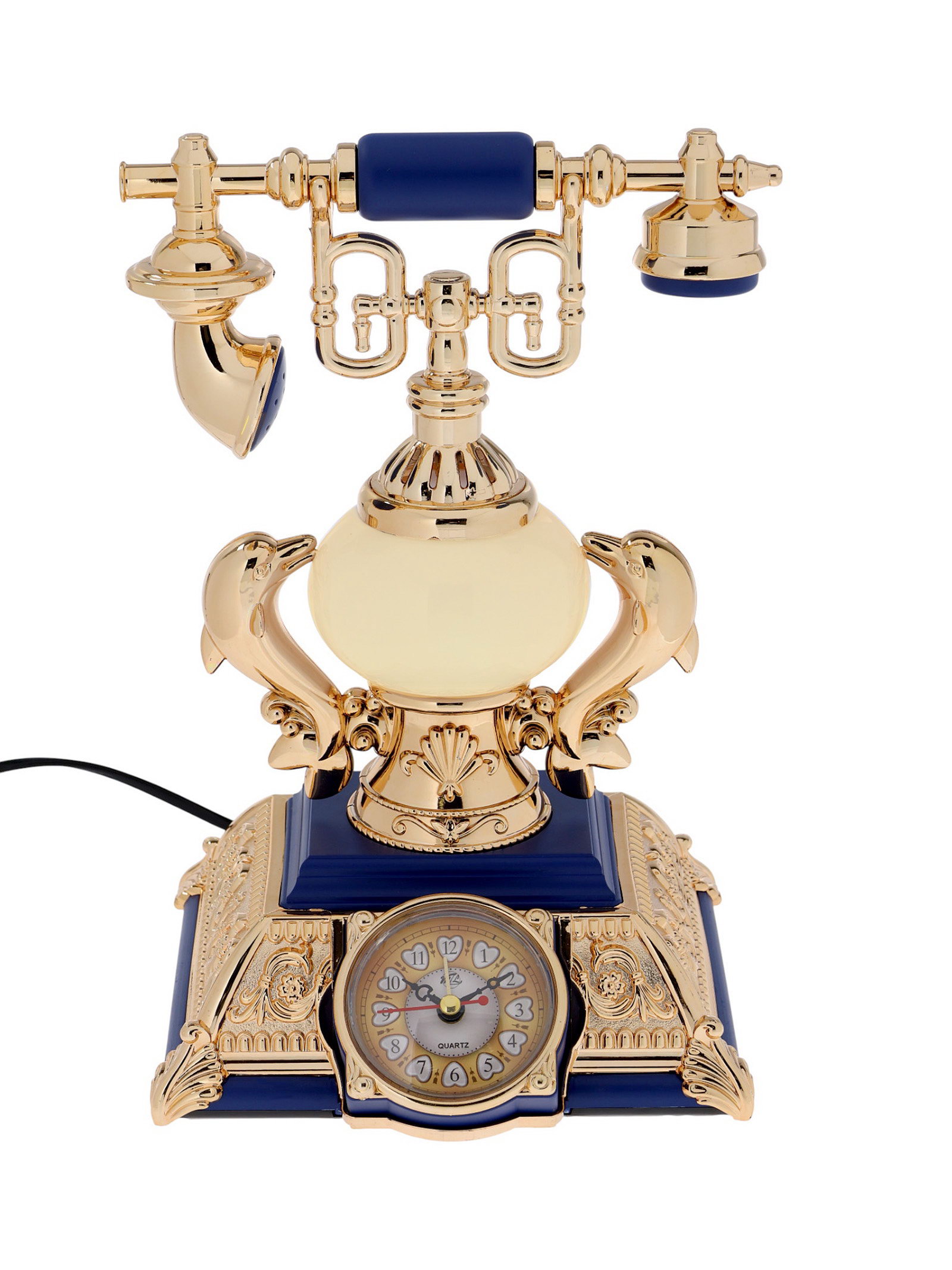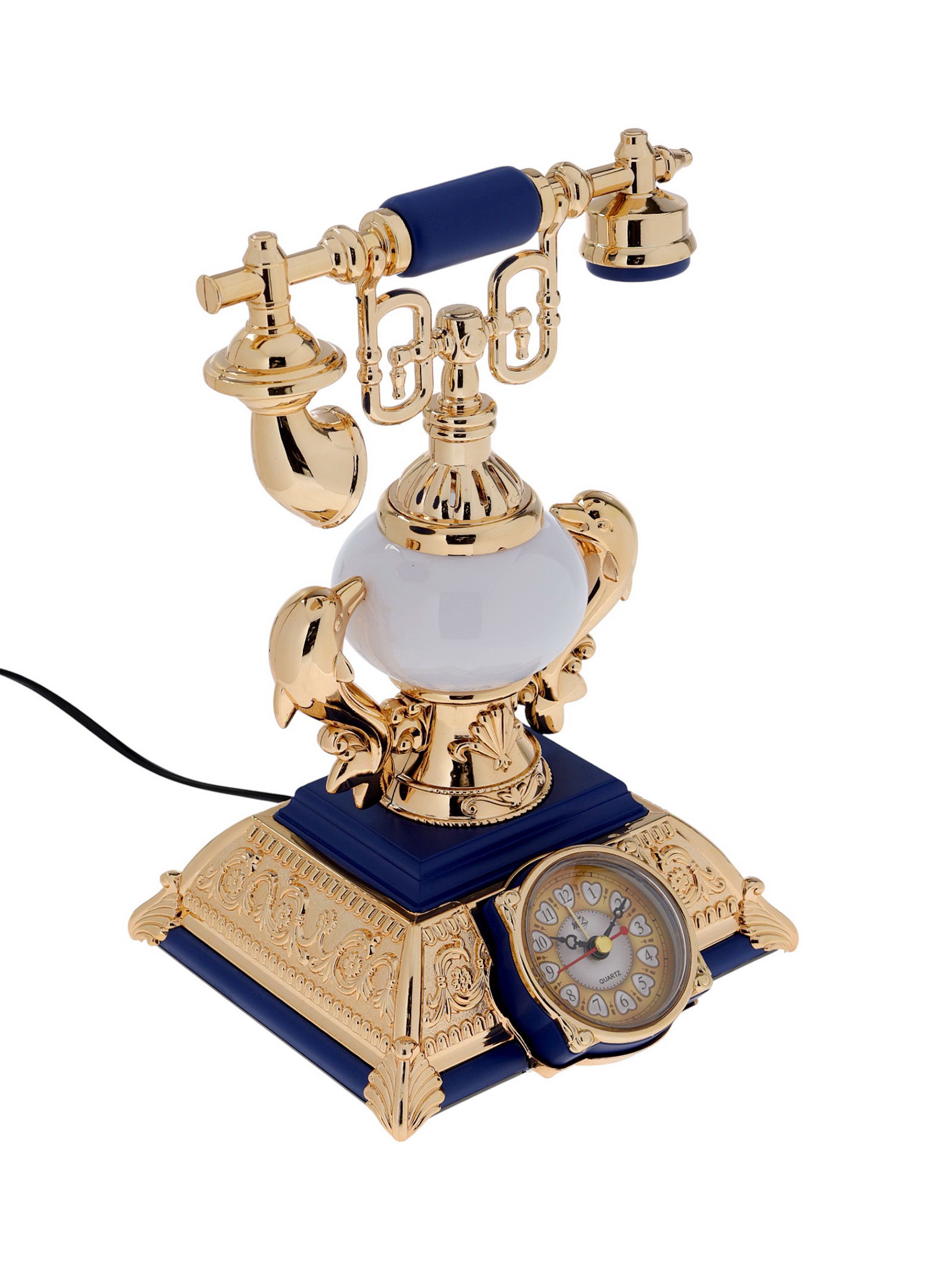 Часы-светильник "Ретро телефон", синий, с будильником, 28.5x18x18 см, 18x18x28.5 см., Китай
