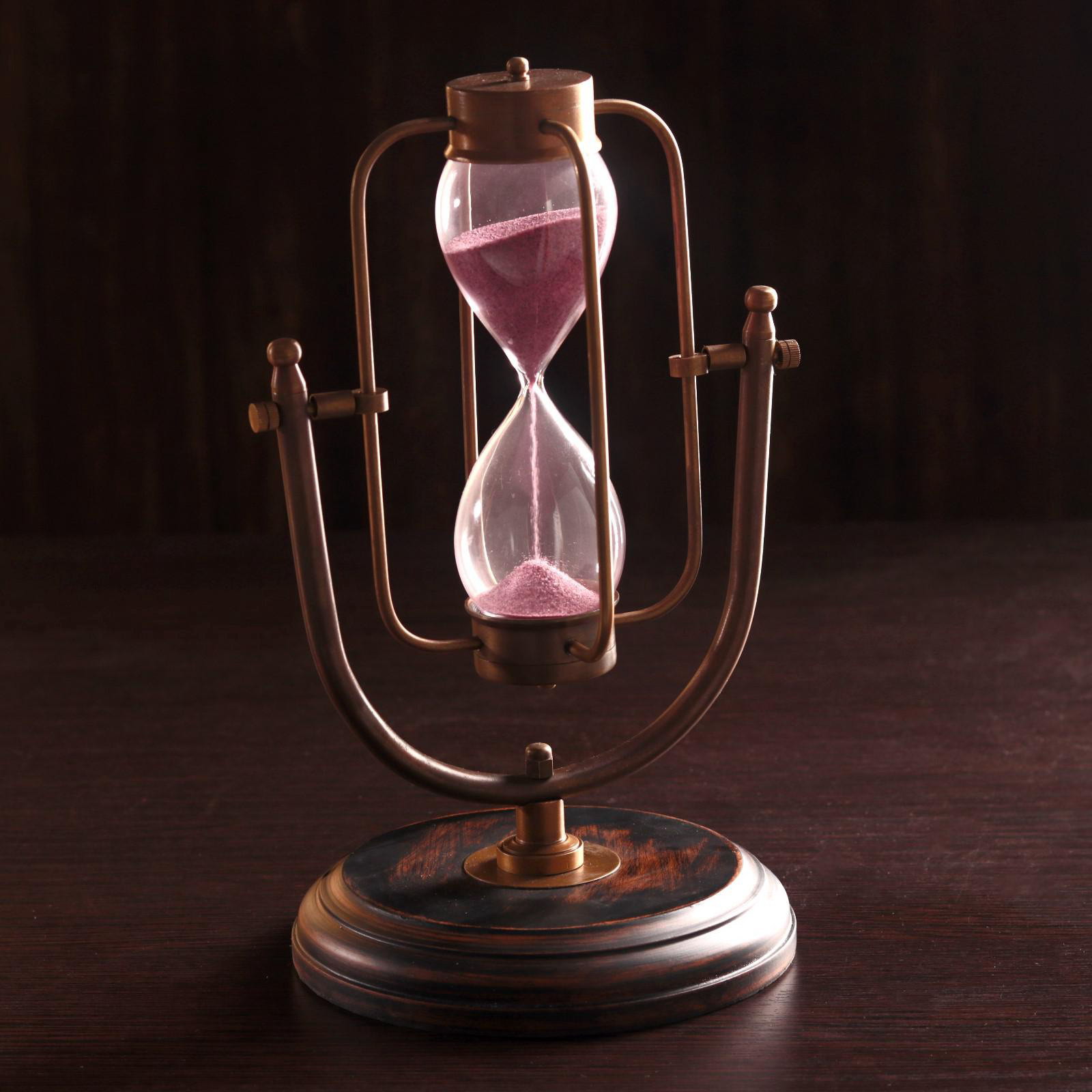 Песочные часы "Антик" латунь, дерево, 15x16x25 см., Индия