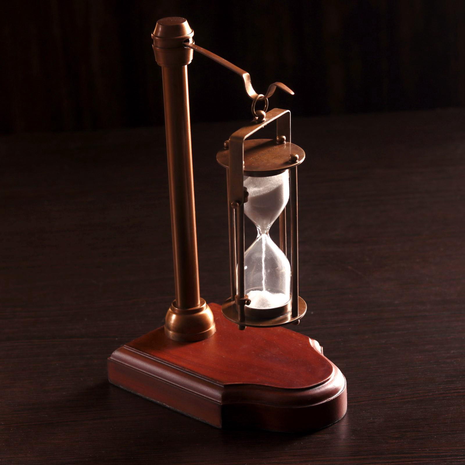 Песочные часы "Подвесные" латунь, алюминий, дерево, 9x14x23 см., Индия