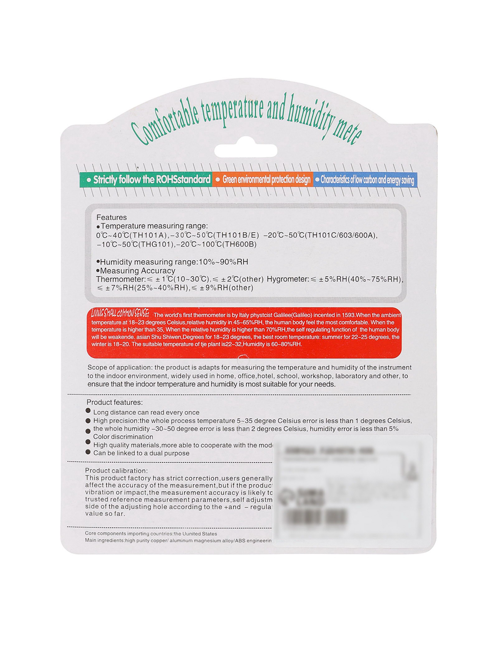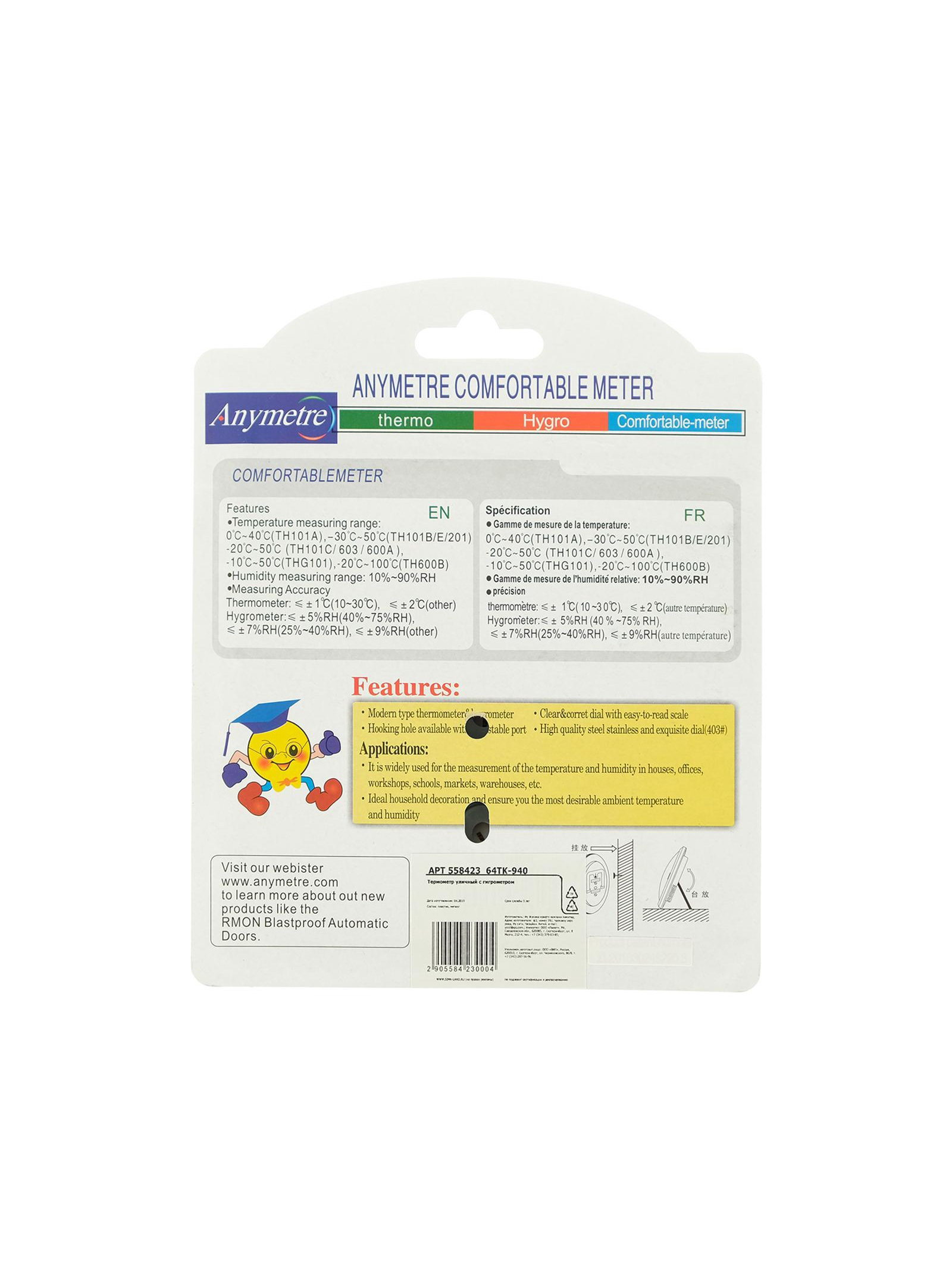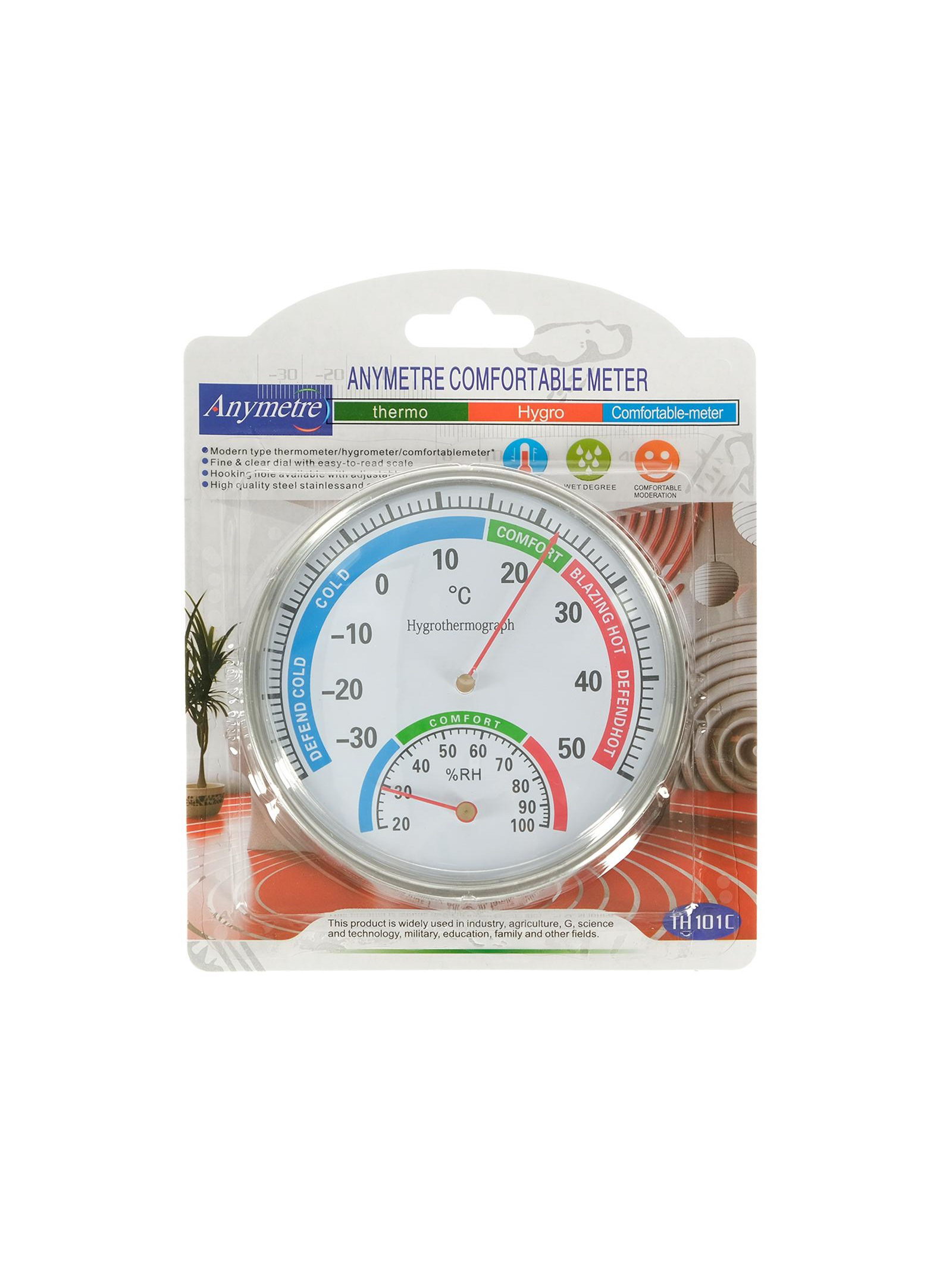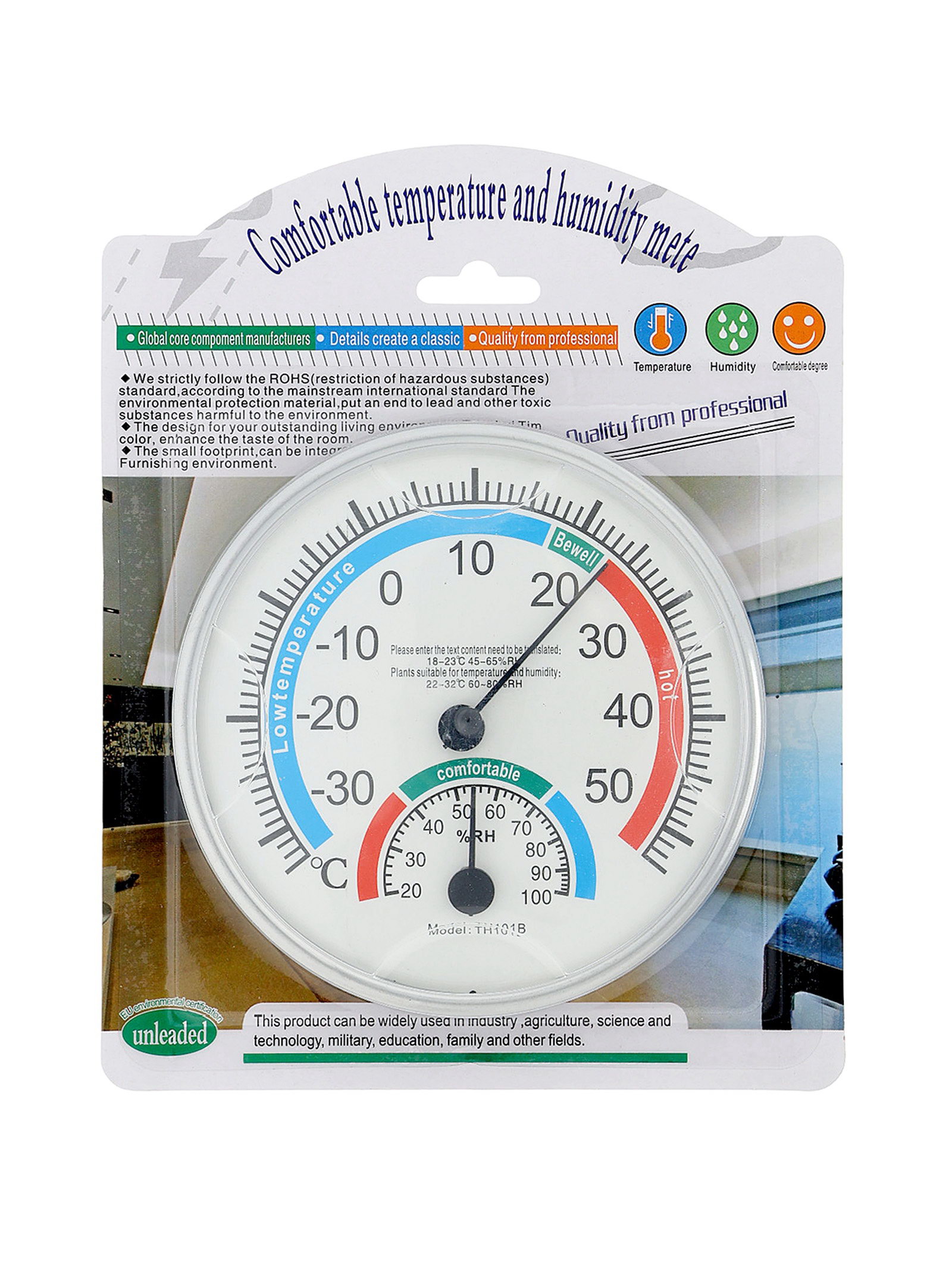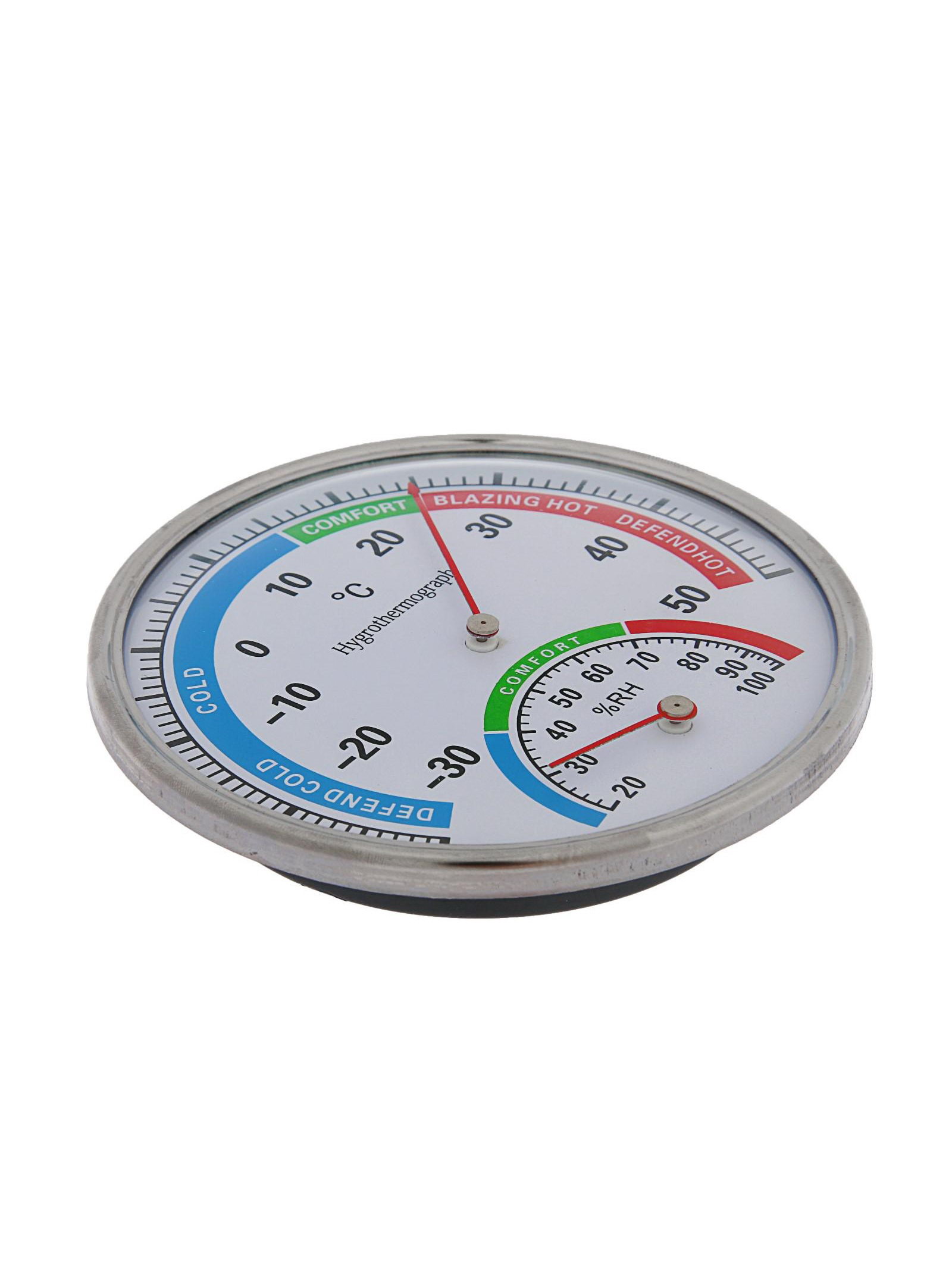 Размер упаковки: 16.3 x 3 x 21 см. Цвет: Серебристый Вид: Термометр Жидкостный: Нет tnved: 9025808000 Назначение: Уличный Гарантийный срок, мес.: 6 Материал корпуса: Пластик Не секрет, что показатели температуры и влажности влияют на общее состояние человека. Например, повышенная сухость вызывает дискомфорт, сонливость, шелушение кожи, а в некоторых случаях и обострение хронических заболеваний. Современный термометр с встроенным гигрометром поможет контролировать ваше самочувствие, определяя температуру и влажность воздуха. Основной циферблат отображает температуру воздуха по Цельсию, а гигрометр, расположенный в нижней части изделия, уровень относительной влажности в процентах. Цветовая гамма каждой шкалы указывает степень комфорта: