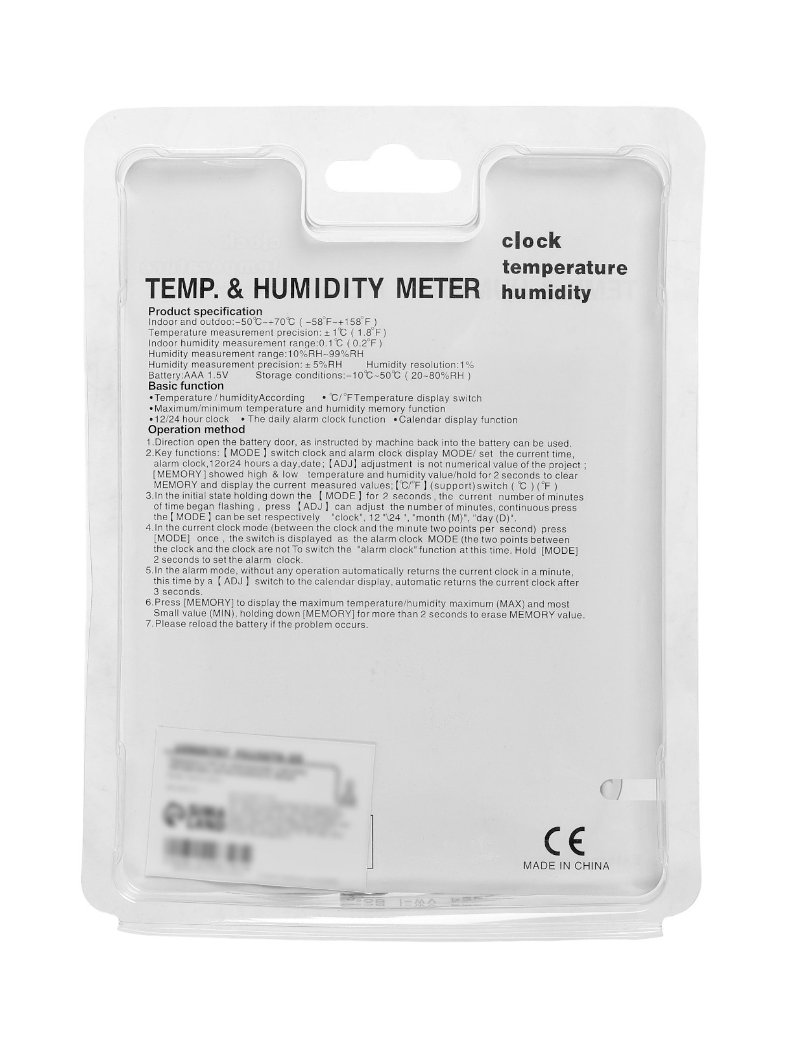 Термометр LTR-16, электронный, 2 датчика температуры, датчик влажности, белый, 10.5x9.5x2 см., Китай