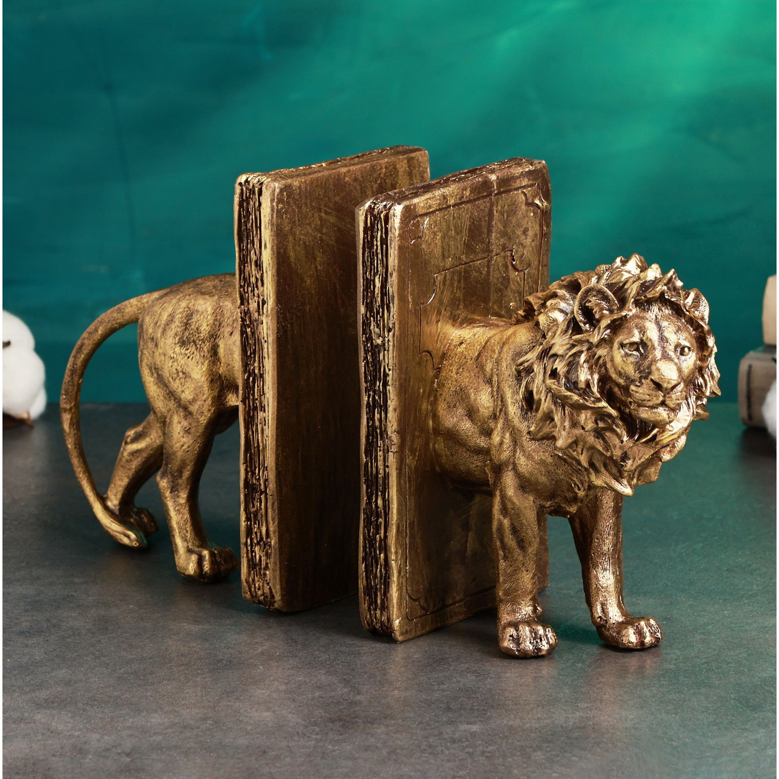 Держатель - подставка для книг "Лев", набор 2 шт., под бронзу, 19.5x33 см, Хорошие сувениры, Россия