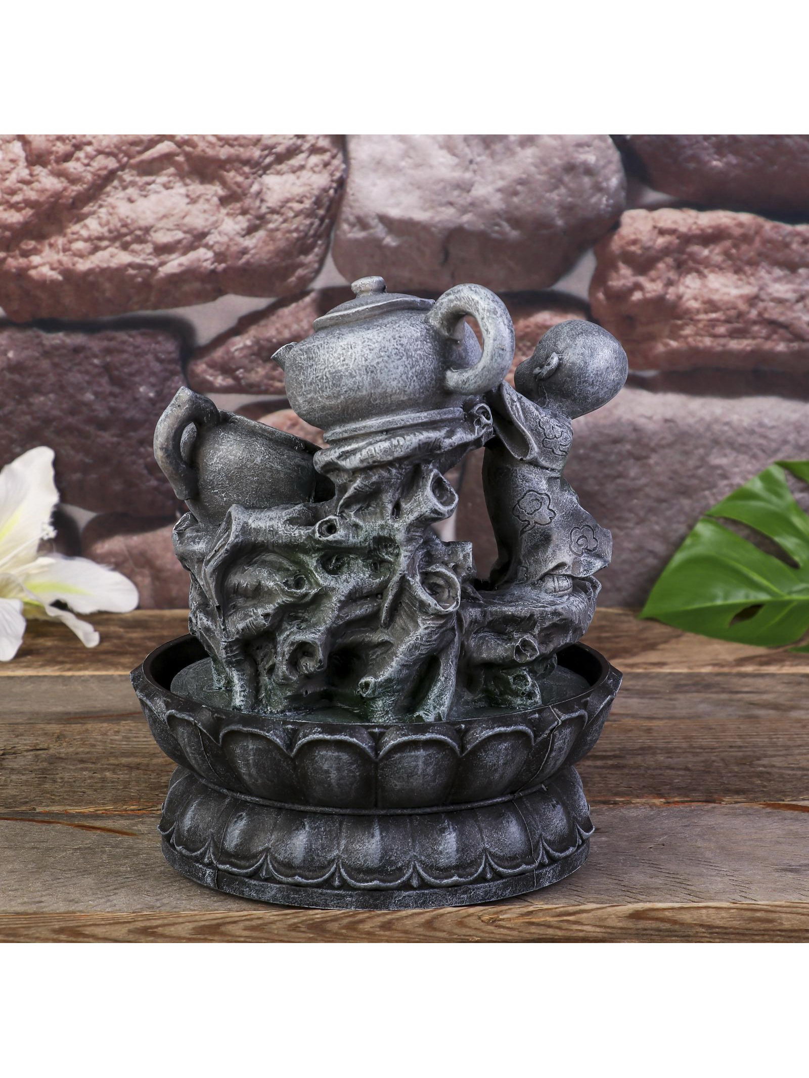 Фонтан настольный с подсветкой "Маленький Будда с чайником", от сети, 25x19.5x19.5 см, 19.5x19.5x25 см., Китай
