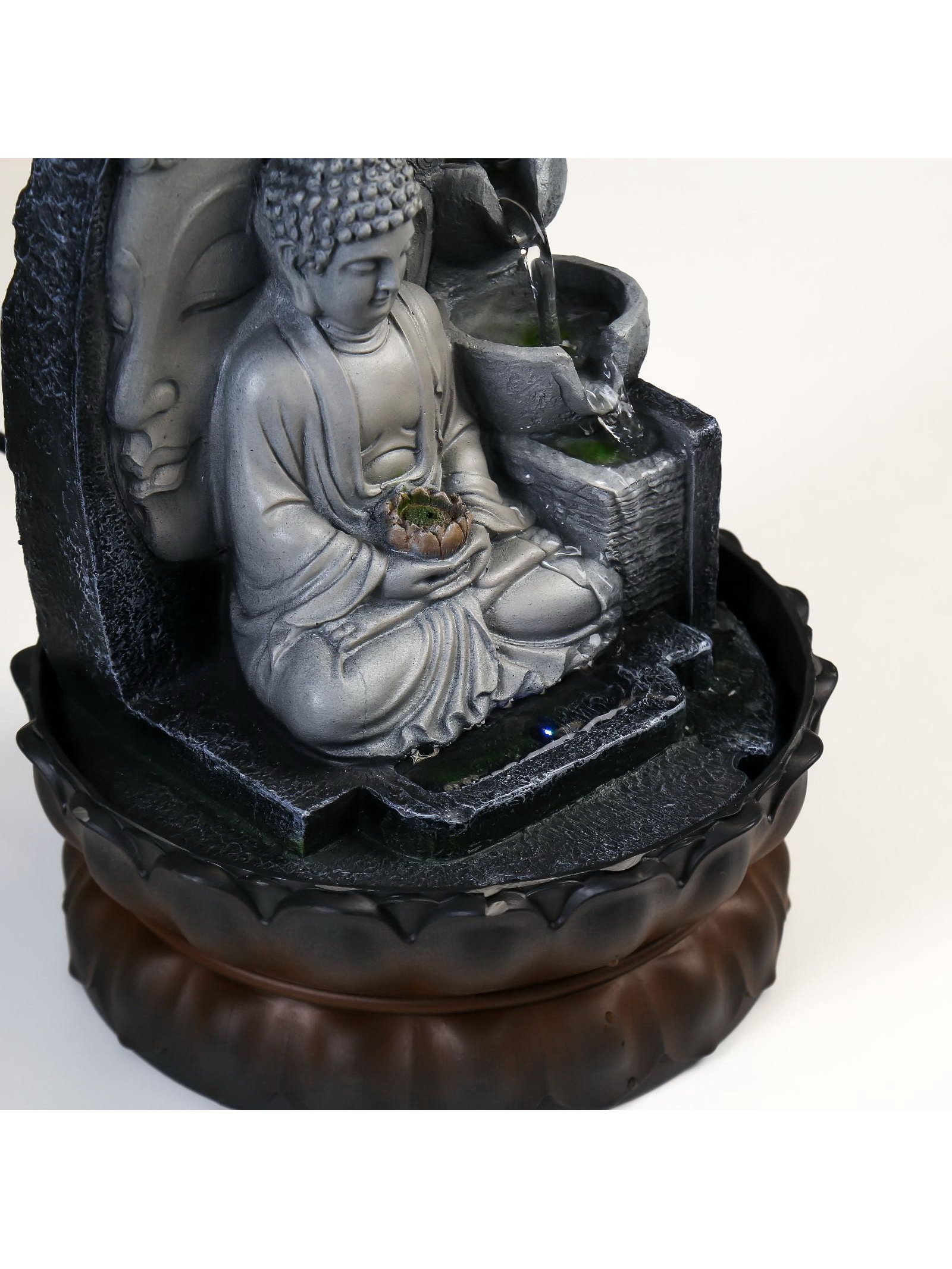 Фонтан настольный с подсветкой "Будда", от сети, серый мрамор, 30x20.5x20.5 см, 20.5x20.5x30 см., Китай