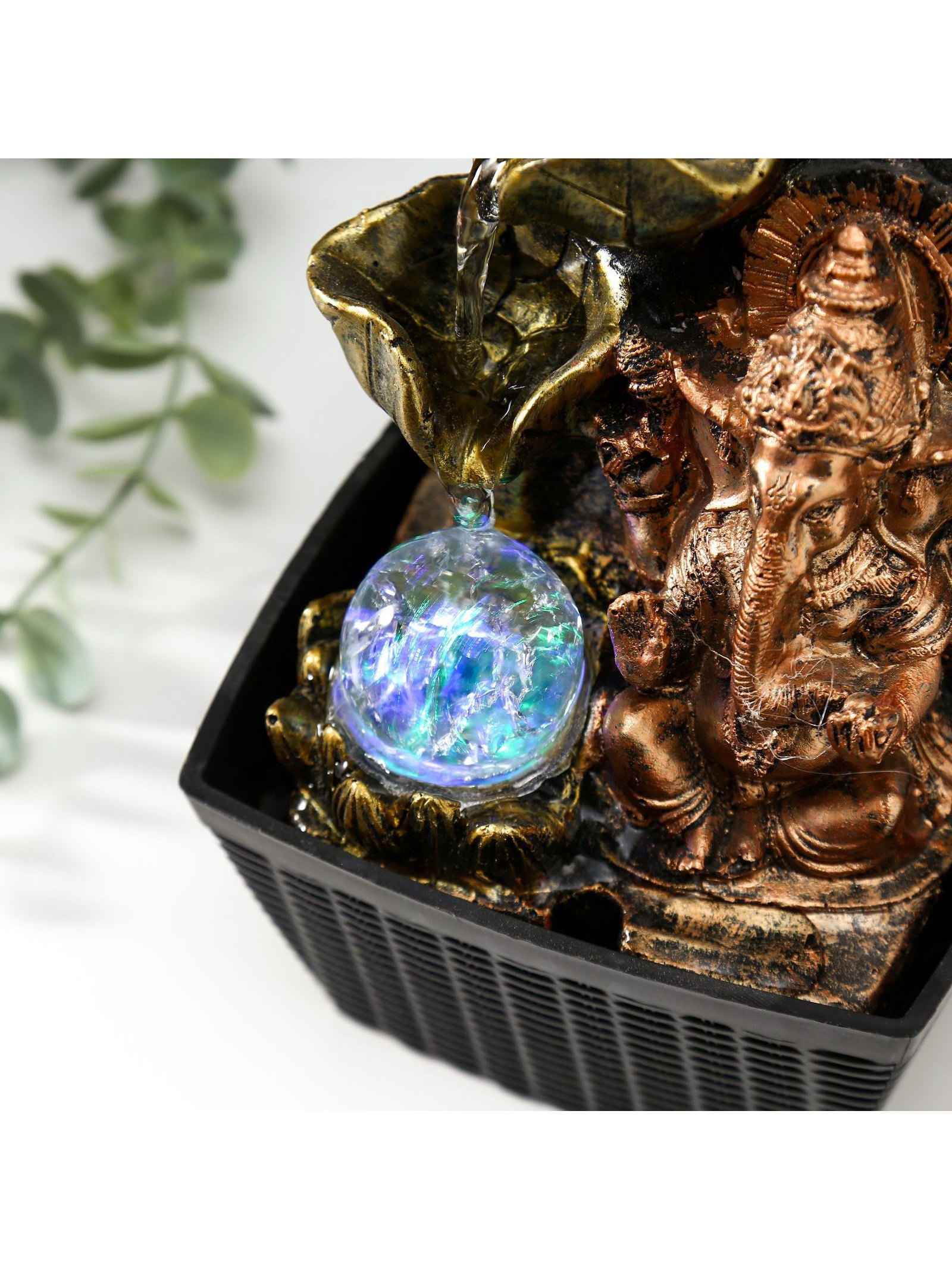 Фонтан настольный с подсветкой "Бронзовый Ганеша и лотосы", от сети, 22x13x13 см, 13x13x22 см., Китай
