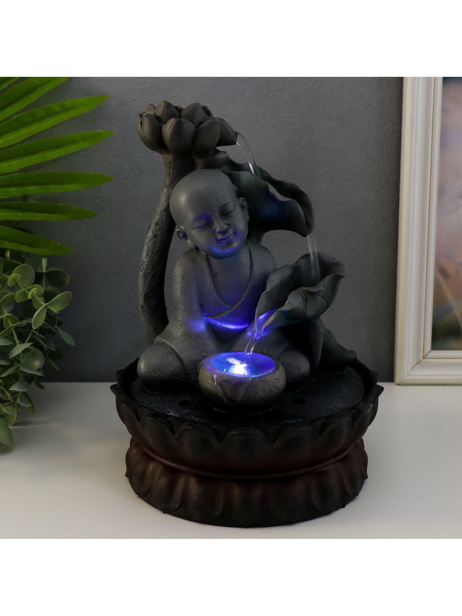 Фонтан настольный с подсветкой "Маленький будда с лотосом", от сети, серый, 29x20x20 см, 20x20x29 см., Китай