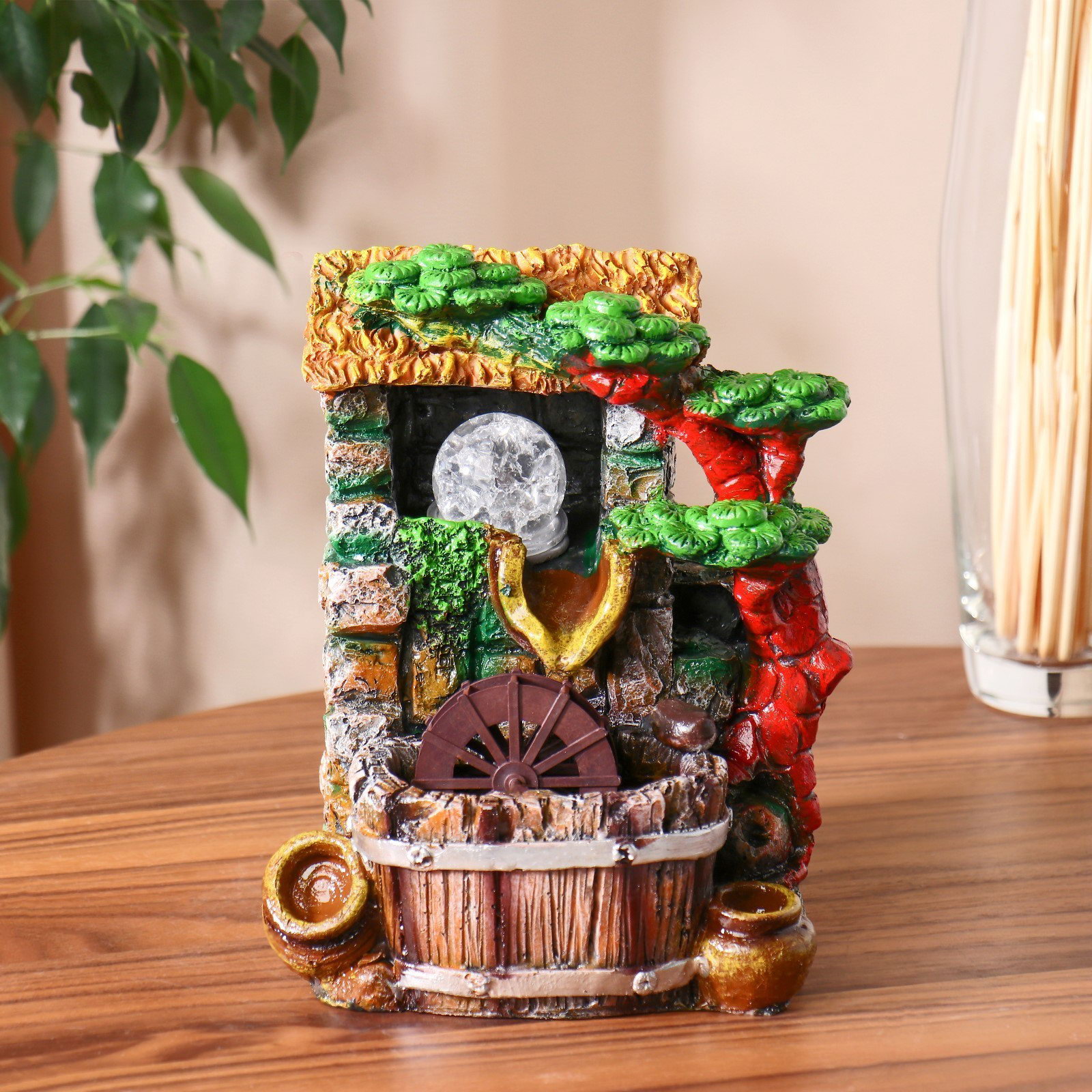 Фонтан настольный "Домик под деревом", 11x15x21 см, с подсветкой, 15x11x21 см., Китай