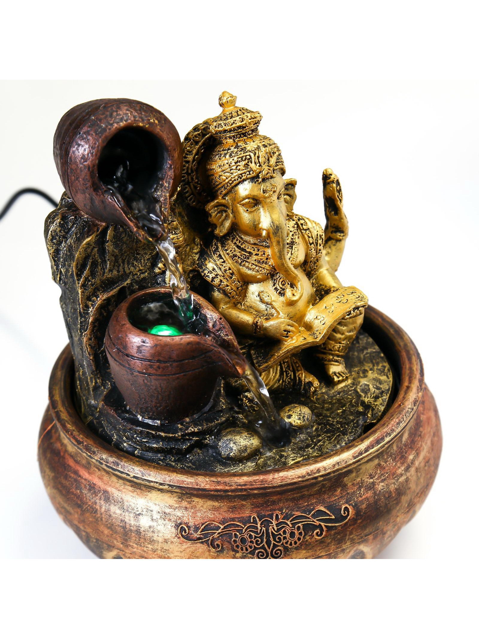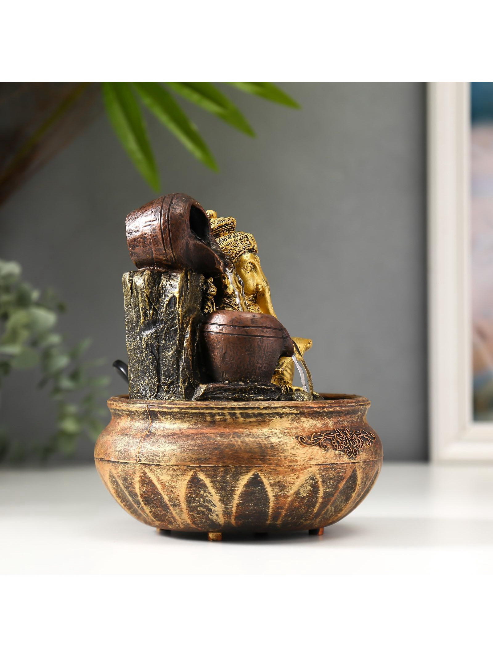 Фонтан настольный с подсветкой "Ганеша с кувшинами", от сети, 20x15x15 см, 15x15x20 см., Китай