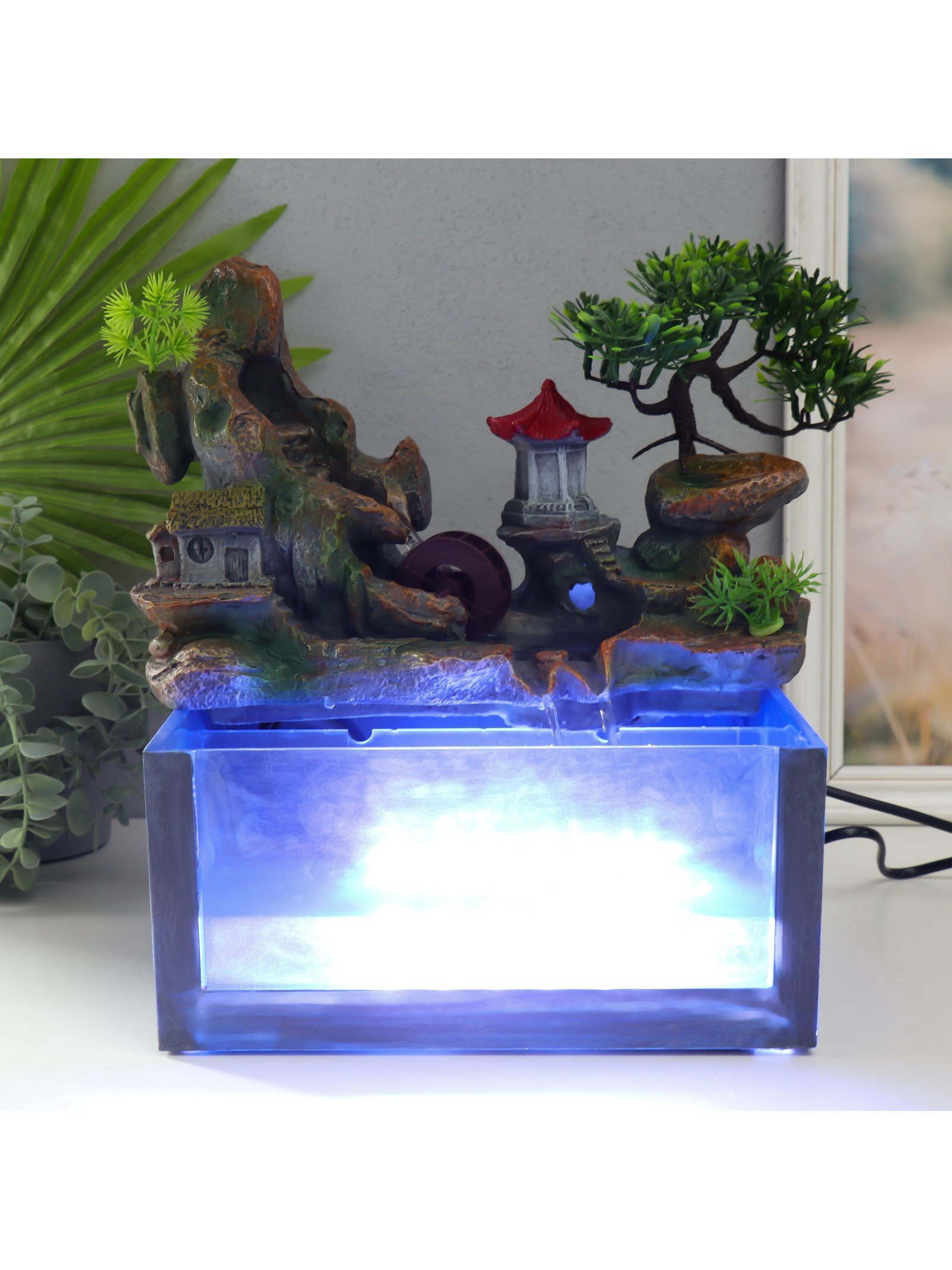 Фонтан настольный с подсветкой и аквариумом "Пагода на вершине", от сети, 32x21x30 см, 21x30x32 см., Китай