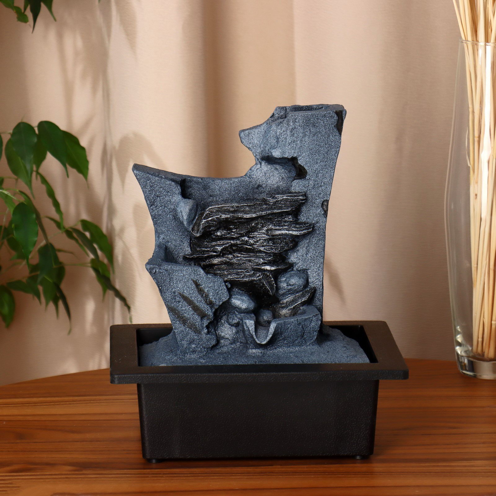 Фонтан настольный "Тэос" каменный ручей, 23x17.5x26 см, с подсветкой, 17.5x23x26 см., Китай